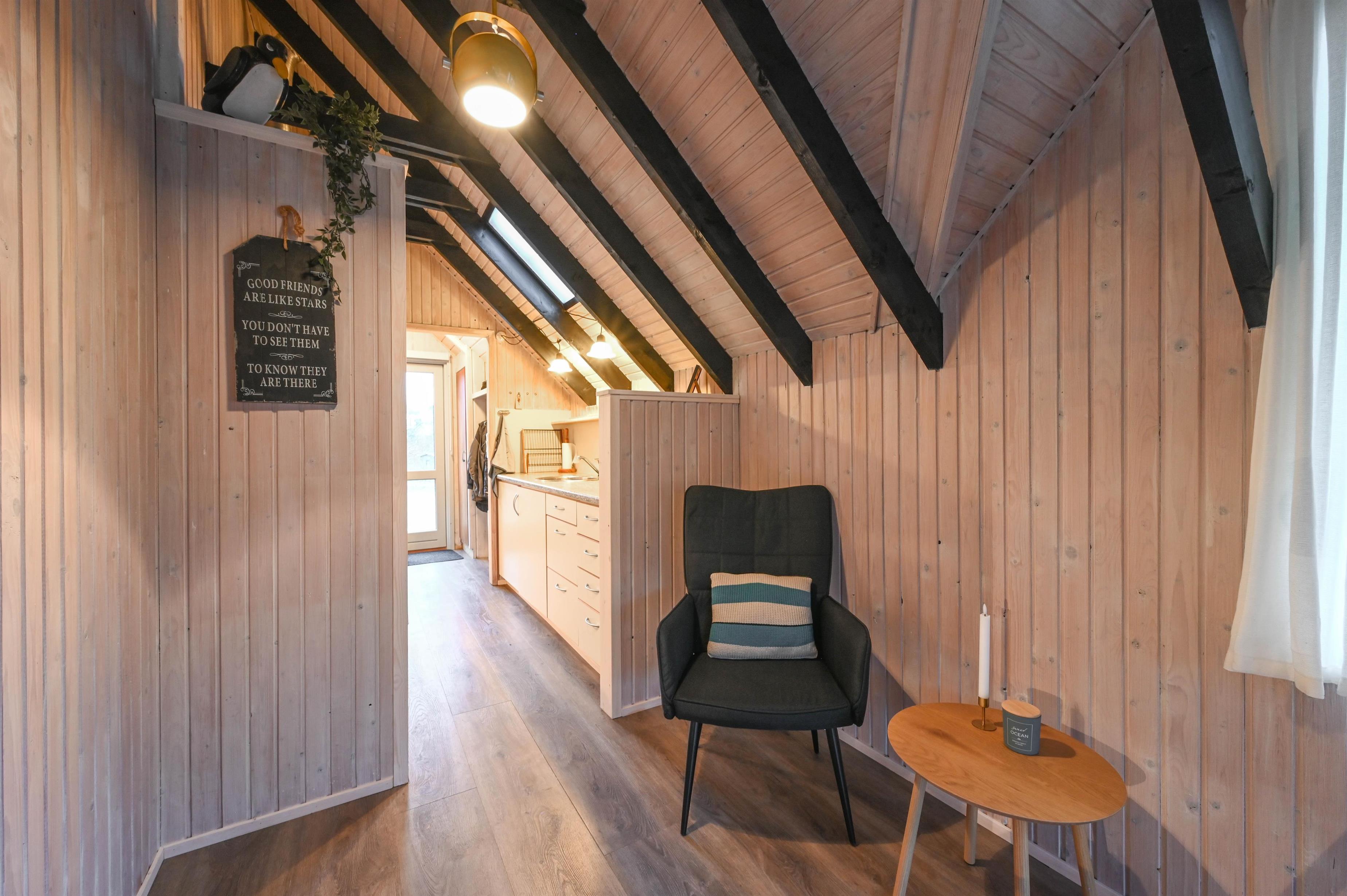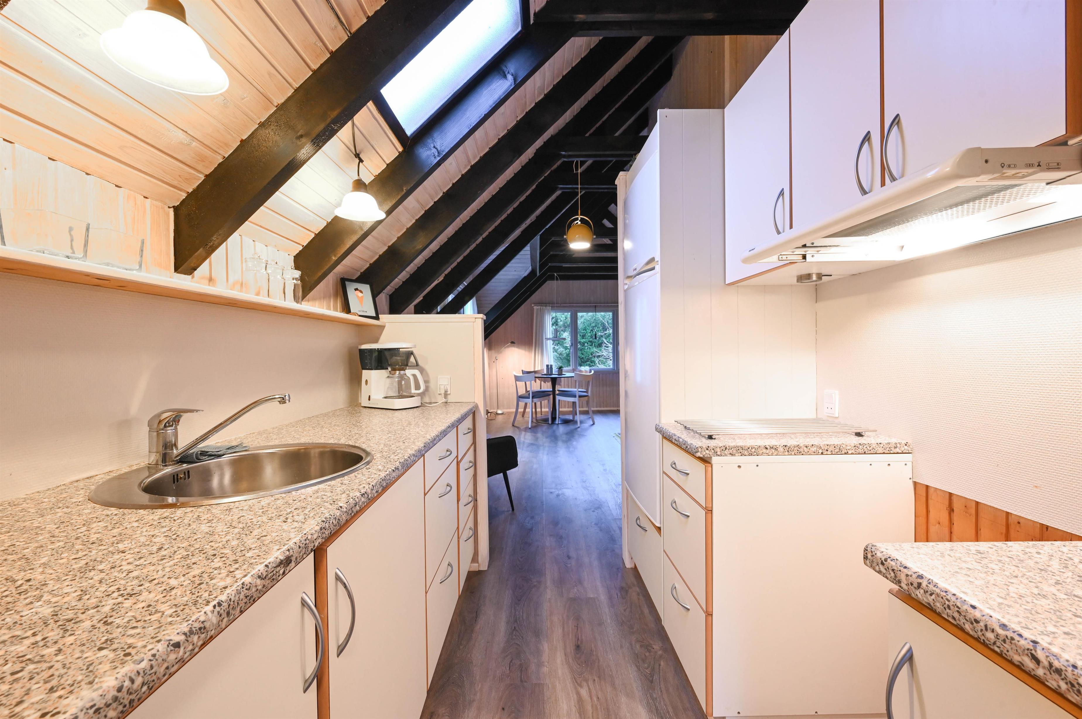 Das Ferienhaus ist schon etwas älter, wird aber im Frühjahr 2026 innen und außen renoviert, so dass der ursprüngliche Charme des Hauses erhalten bleibt und gleichzeitig der Komfort stimmt. Die kleine, funktionale Küche ist zum Wohnzimmer hin offen gestaltet. Hier könnt ihr beim Kochen, Brettspielen oder einer stillen Stunde mit einem guten Buch entspannen.
