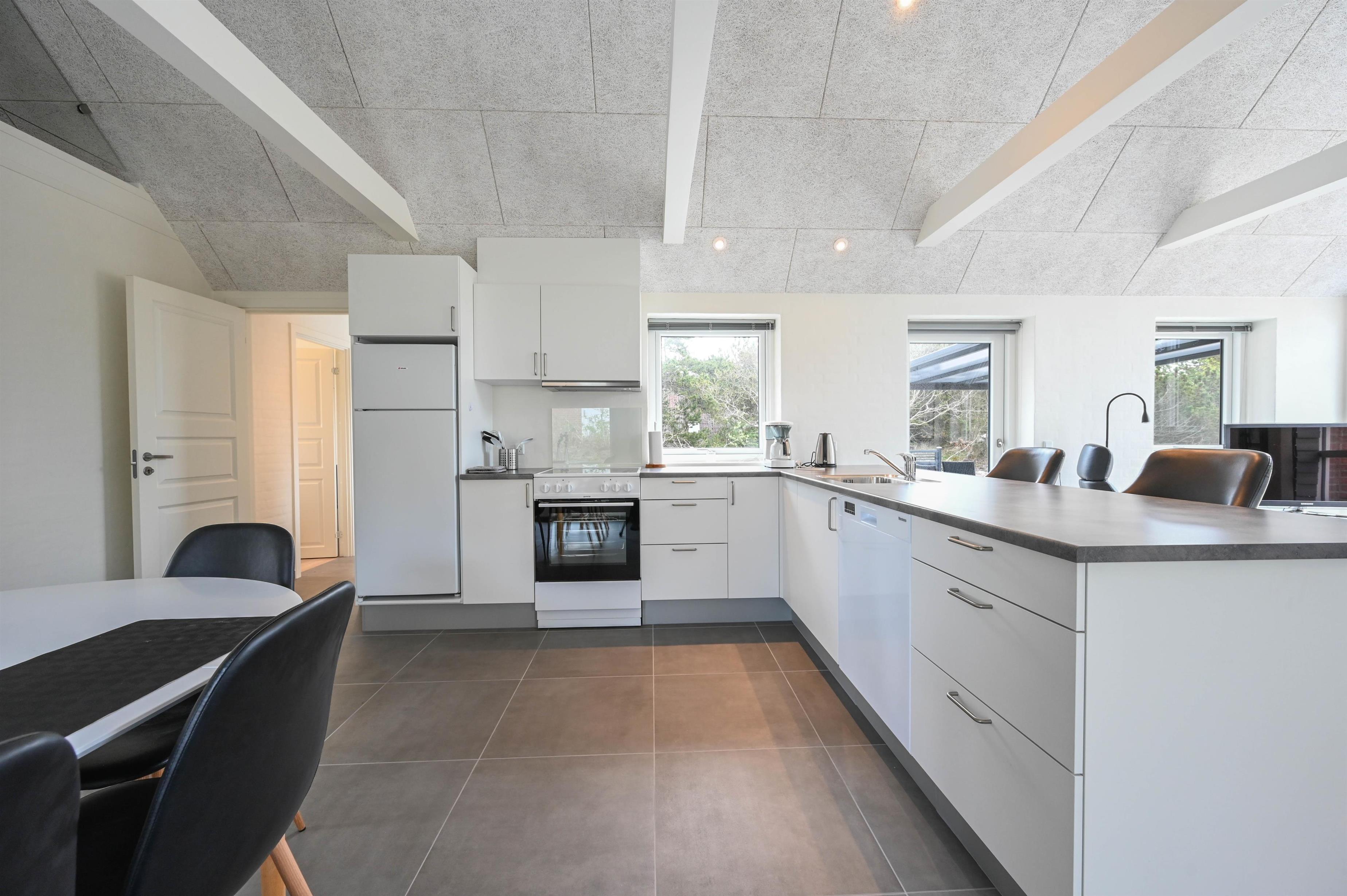 Das moderne Ferienhaus besticht durch eine helle, offene Raumaufteilung, in der Küche, Essbereich und Wohnzimmer harmonisch ineinander übergehen.