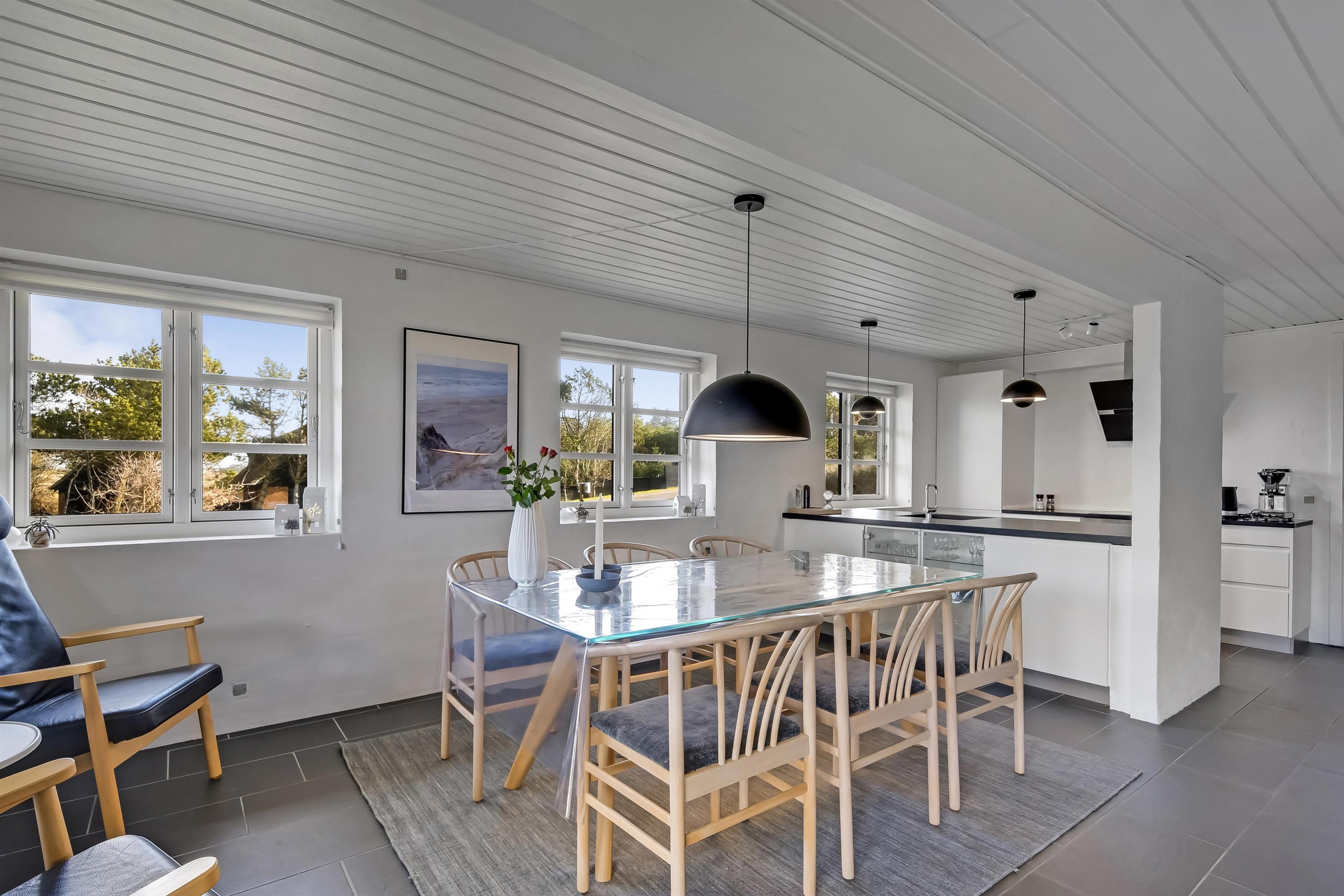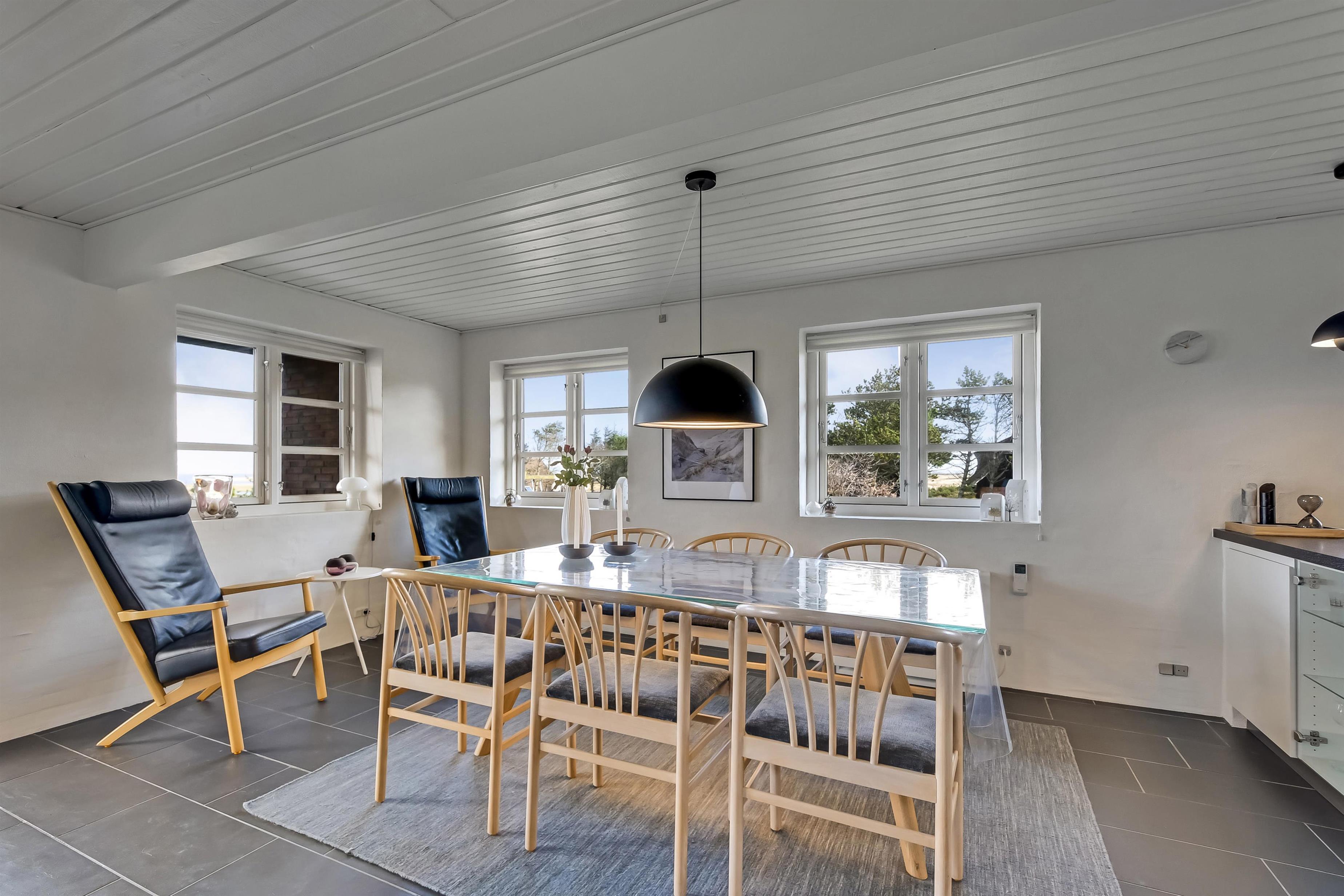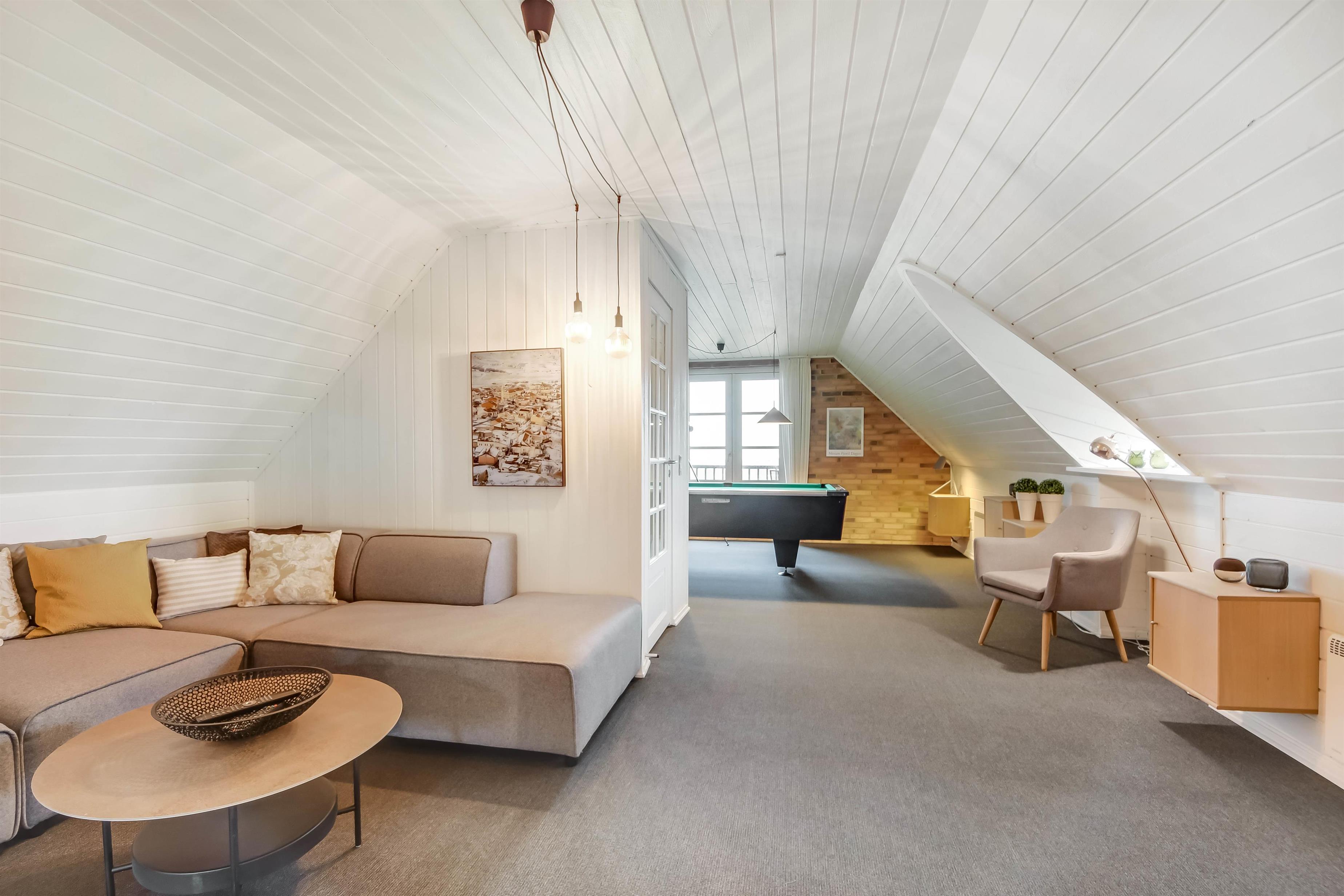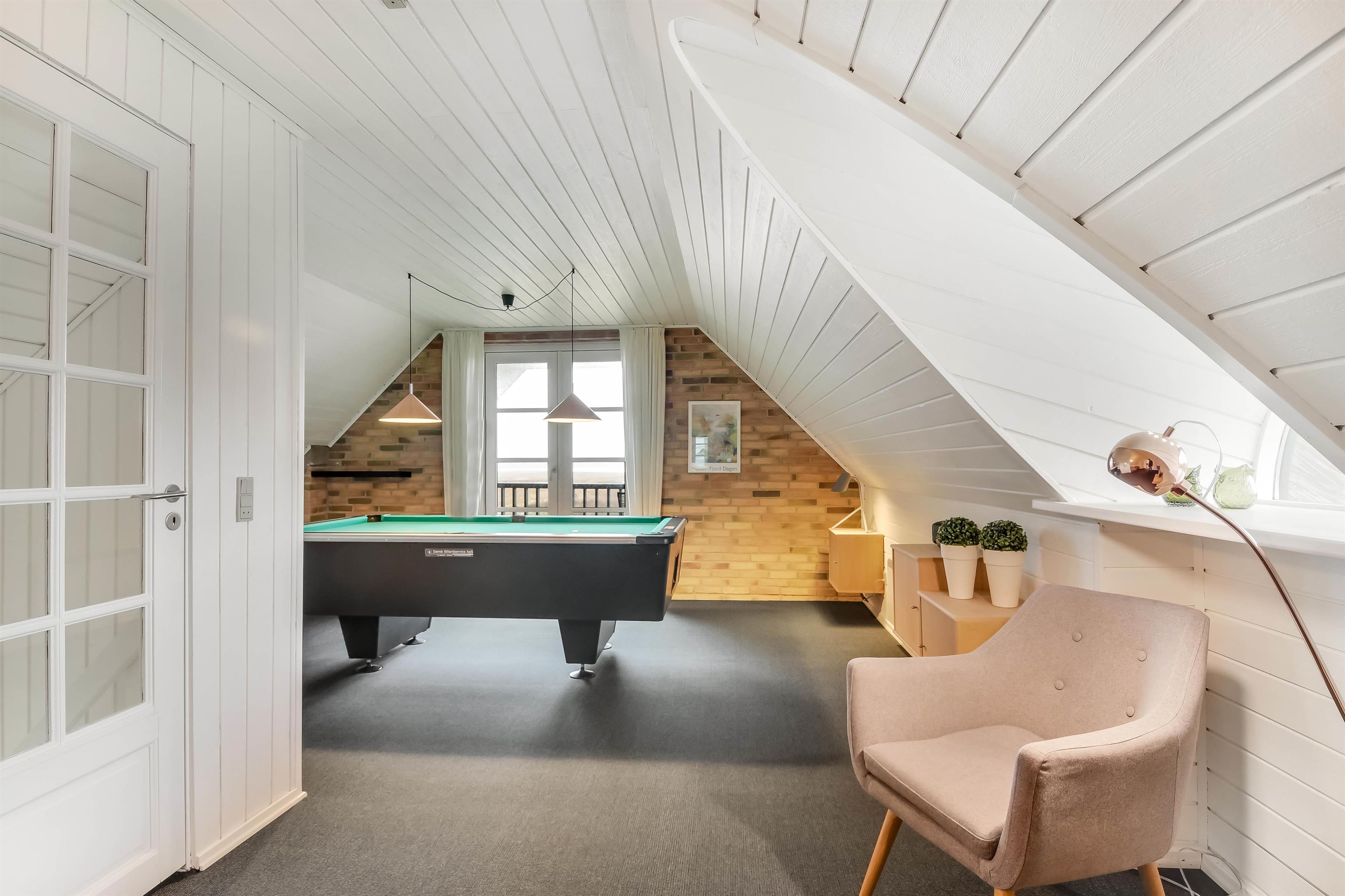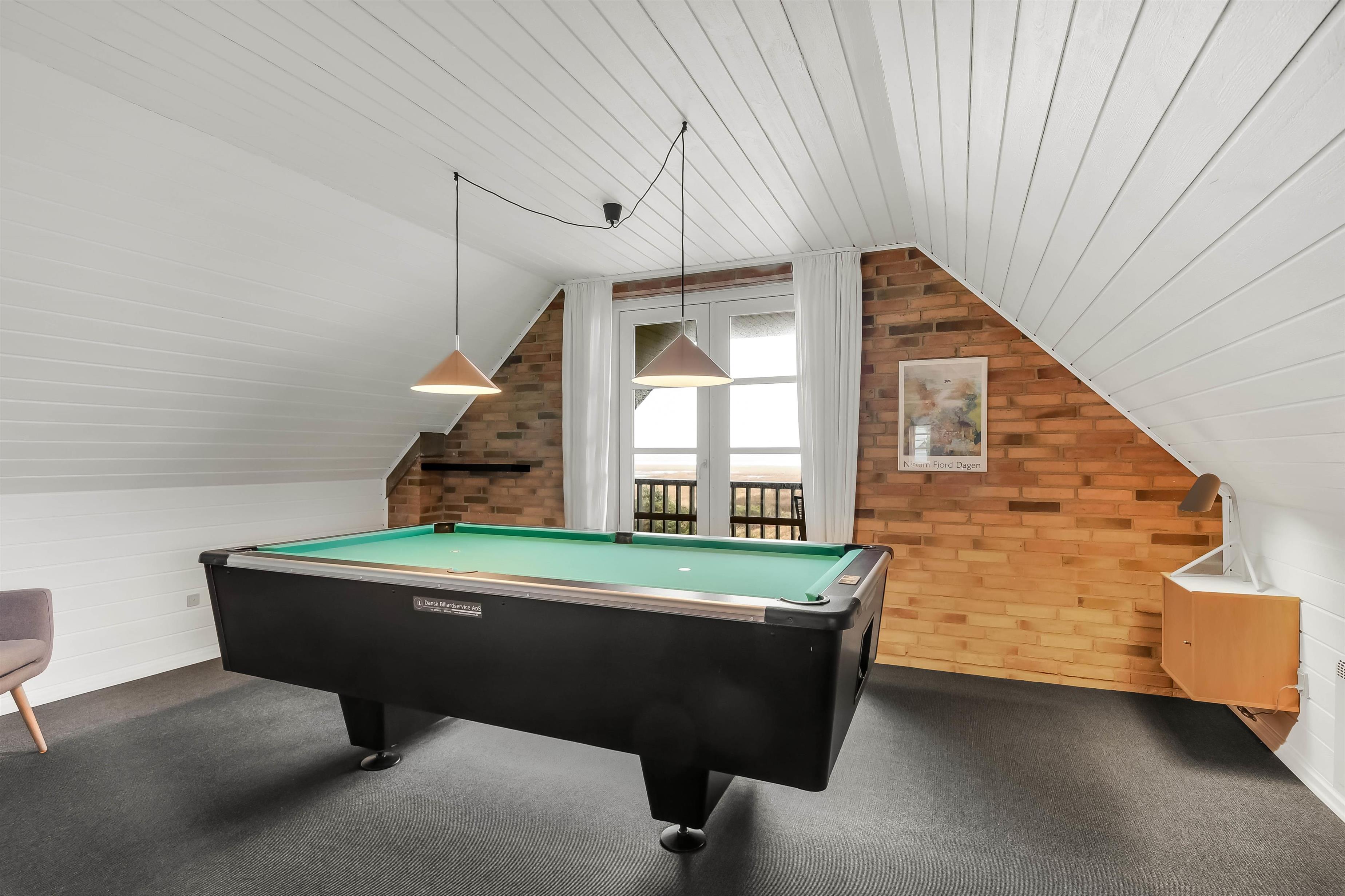 Hier habt ihr eine herrliche Aussicht über den Nissum Fjord, die Wiesen und die Dünenkette im Westen. In der kühleren Jahreszeit genießt ihr Whirlpool, Sauna und ... Poolbilliard! Bei gutem Wetter geht es auf die schönen, teils überdachten Terrassen oder auf die Loggia, von der aus ihr den Sonnenuntergang hinter den Dünen ganz für euch allein habt.