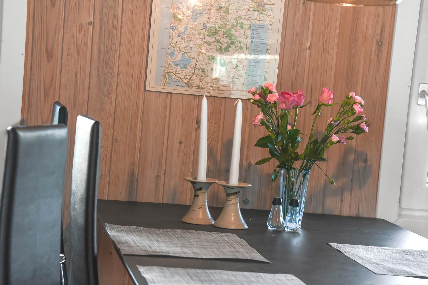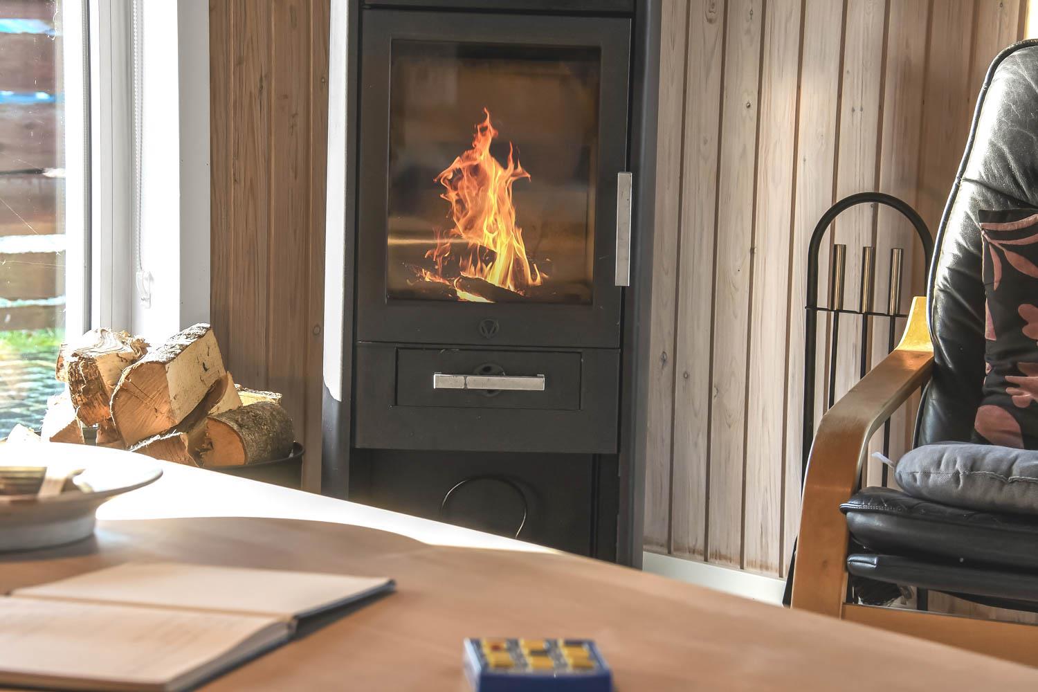 Im anderen Teil des Hauses liegt das gemütliche Wohnzimmer mit Kaminofen, TV und einem gut ausgestatteten Küchenbereich in offener Verbindung. Hier könnt ihr euch abends mit der ganzen Familie versammeln und den Tag bei einem knisternden Feuer ausklingen lassen.