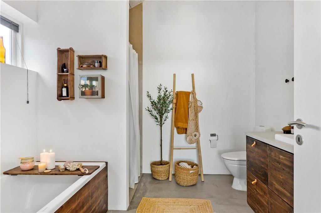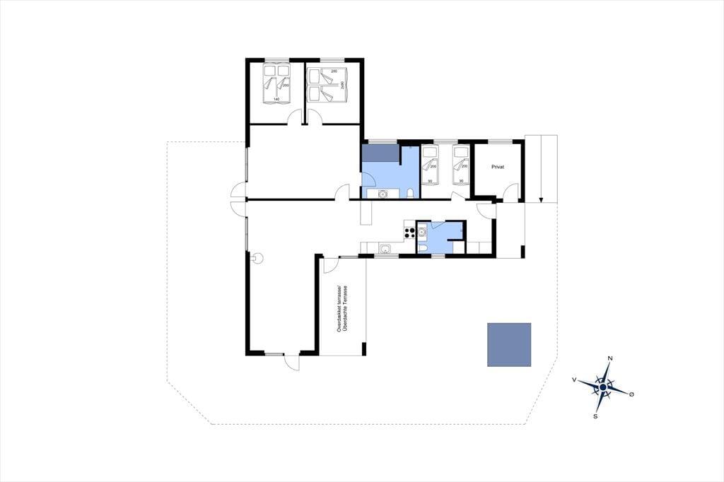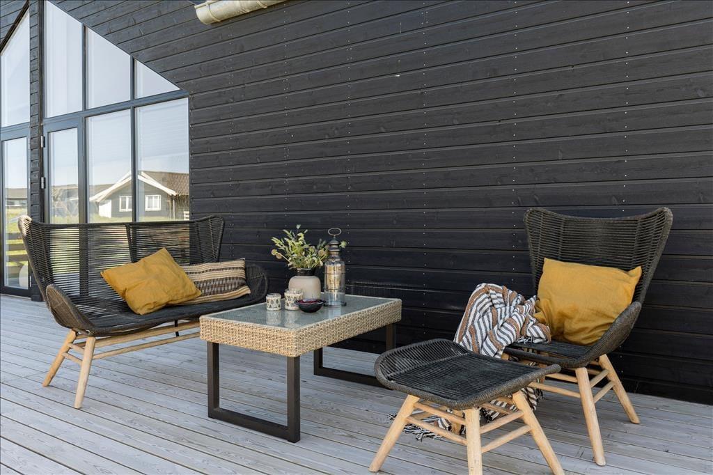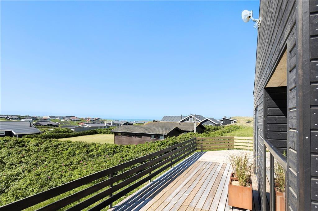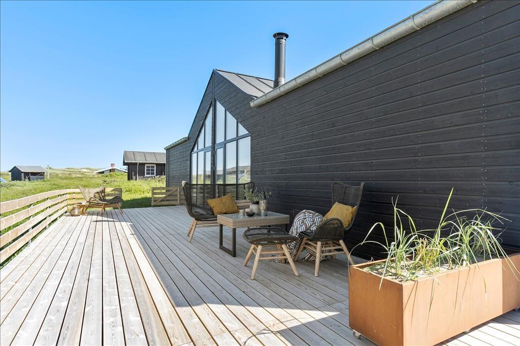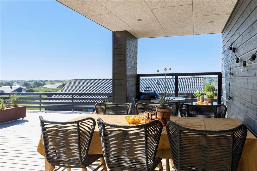 Die Hauptattraktion des Ferienhauses ist zweifellos die große Holzterrasse, die euch einen herrlichen Außenbereich mit fantastischem Meerblick bietet. Da das Haus hoch in der Landschaft liegt, könnt ihr über das gesamte Ferienhausgebiet bis hinunter nach Nr. Lyngby schauen. Die Terrasse verfügt über einen Außen-Whirlpool, und es gibt viel Platz zum Entspannen auf Sonnenliegen, zum gemütlichen Mittagessen oder einfach zum Genießen der schönen Umgebung. Da die Terrasse dem Haus entlang folgt, findet ihr immer einen Platz in der Sonne oder im Windschutz.