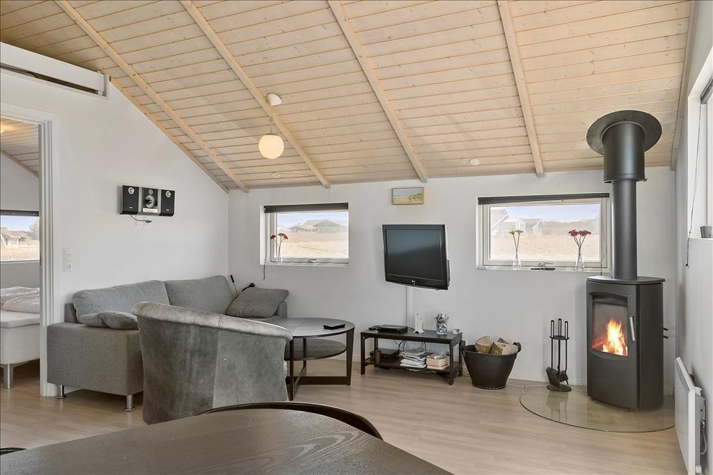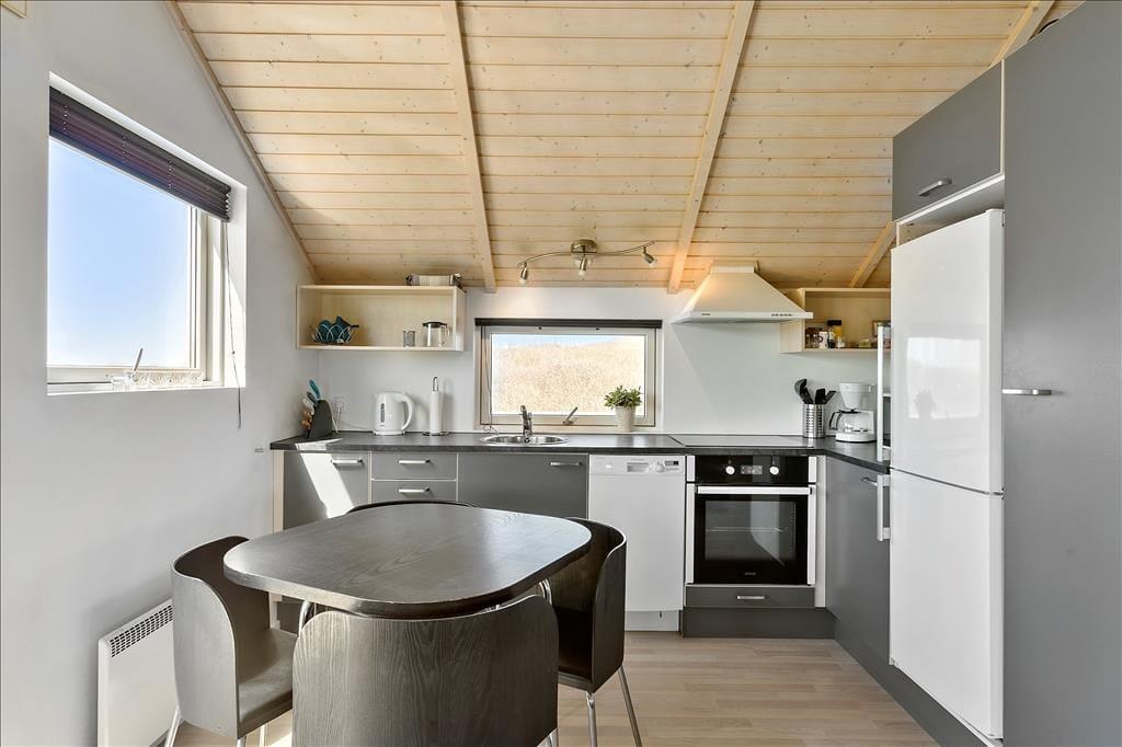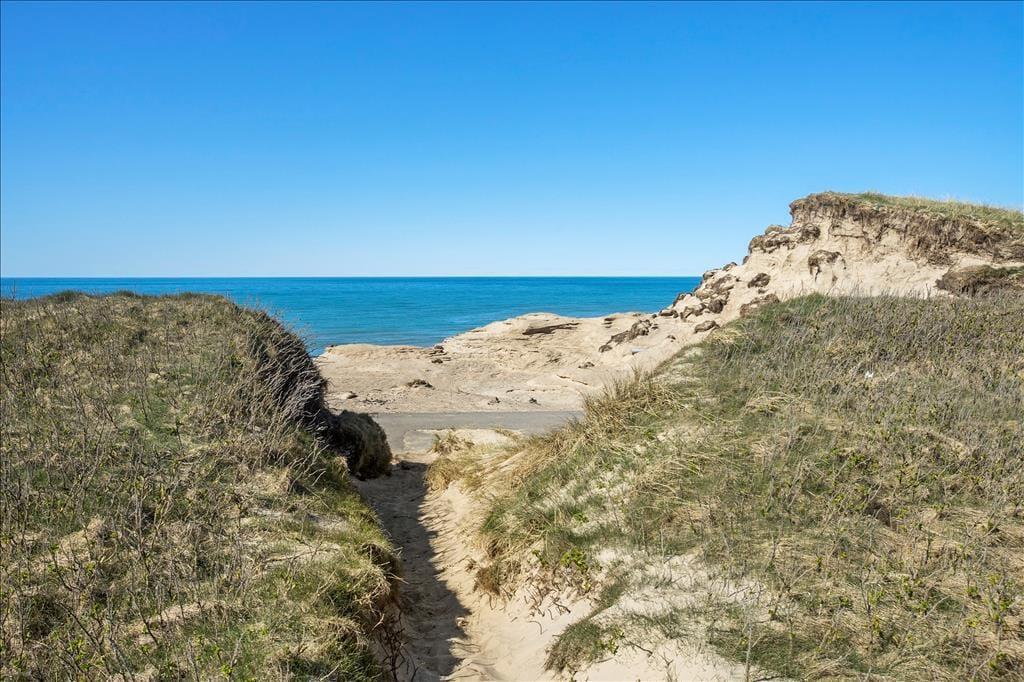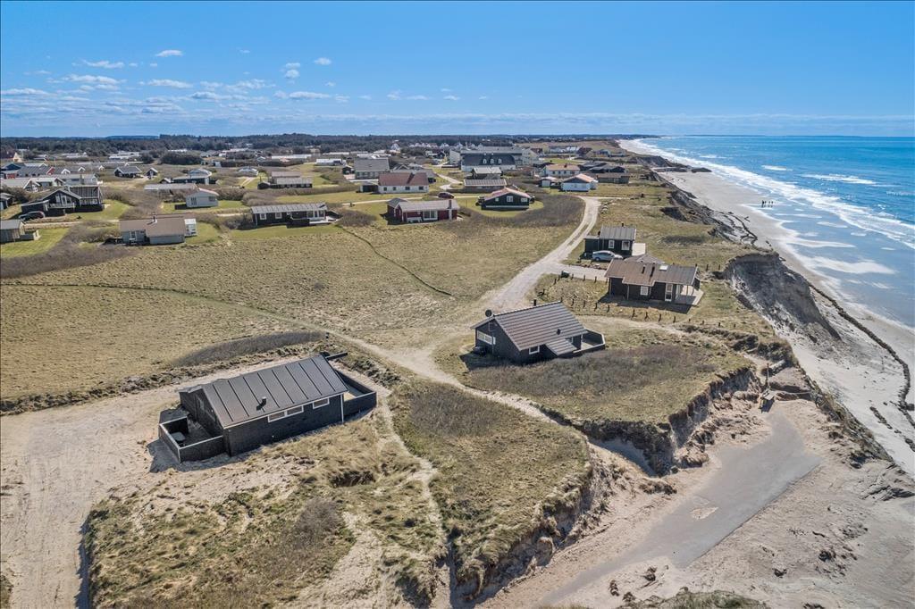 Das Ferienhausgrundstück liegt in der ersten Reihe zur Klippe, und am Ende des Grundstücks führt eine steile Treppe hinunter zum schönen Strand von Nr. Lyngby. Ihr könnt den Weg mehrmals täglich gehen, wenn ihr ein Bad in der Nordsee nehmen oder einen Spaziergang entlang der Küste machen möchtet. Vom Gipfel der Klippe habt ihr einen guten Blick auf die Küste, wo viele Gleitschirmflieger das besondere Gelände für ihre Kunst nutzen. Auch Surfer werden nach Nr. Lyngby gelockt, und es gibt außerdem die Möglichkeit, am Strand zu angeln. Wenn ihr nicht die ganze Zeit in der Stadt verbringen wollt, könnt ihr nach Løkken, Rubjerg Knude, Børglum Kloster oder zu anderen schönen Ausflugszielen in der Umgebung fahren.