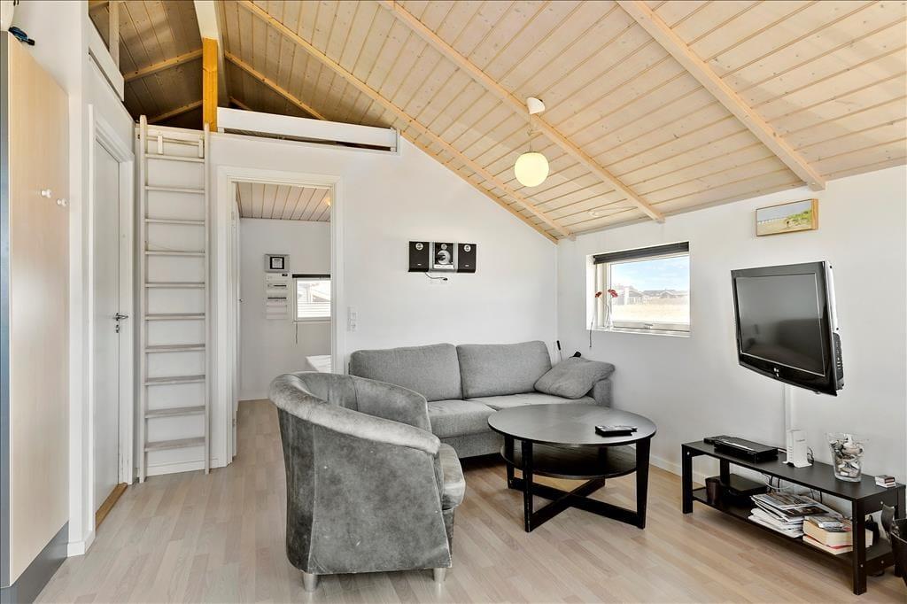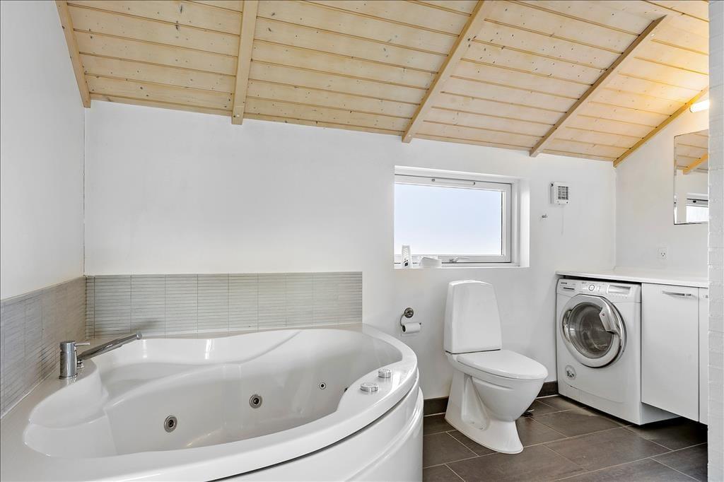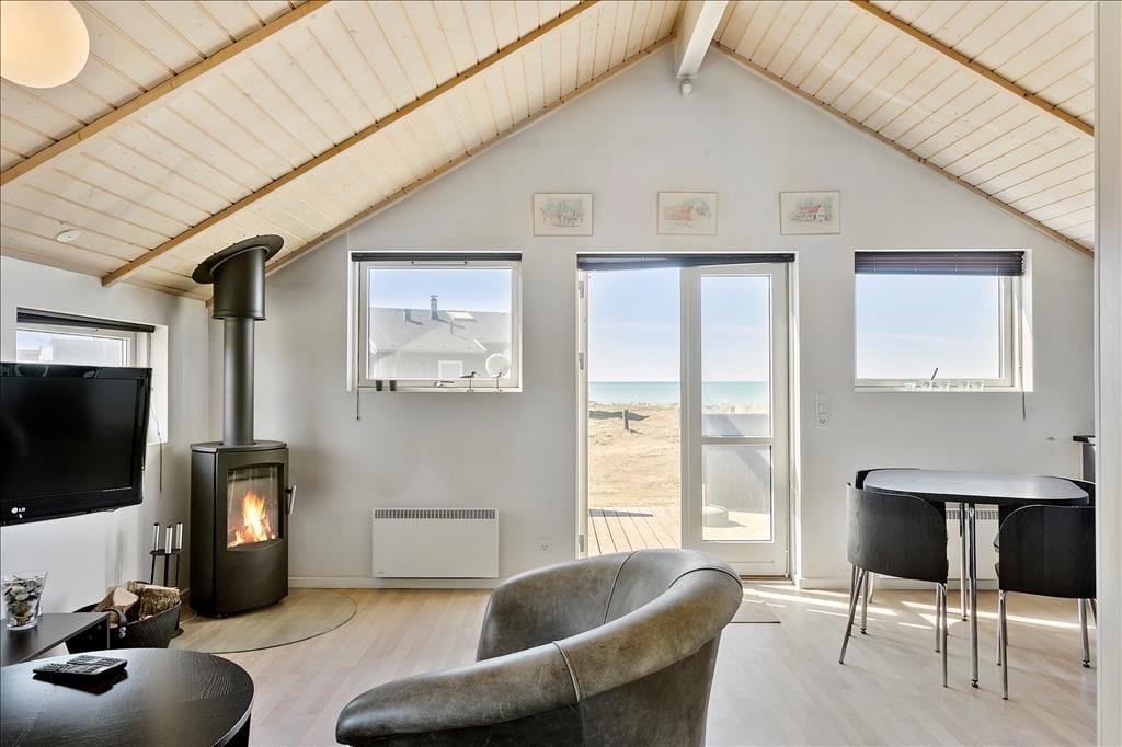 Dieses kleine Ferienhaus ist perfekt für einen Pärchenurlaub! Das liegt nicht nur an der charmanten Atmosphäre des Hauses, dem Whirlpool und der sonnigen Terrasse, sondern auch an der spektakulären Lage: Das Haus liegt direkt an der steilen Klippe, die einen steilen Übergang zwischen dem Ferienhausgebiet und dem Nr. Lyngby Strand bildet.