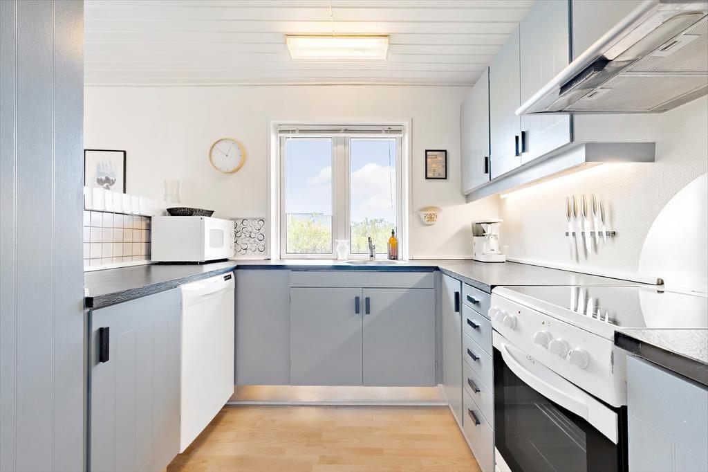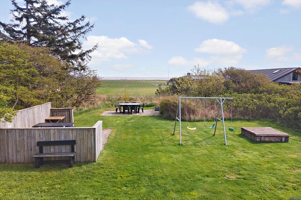 Außerdem gibt es für Angler einen Fischreinigungsplatz auf dem 1200m² großen Grundstück. Vom Garten aus blicken Sie über die flache Landschaft auf den Ringkøbing Fjord, so dass Sie sich auf der Terrasse in einer schönen Umgebung entspannen können. Das Gelände ist teilweise eingezäunt und für die Kinder gibt es Schaukeln und einen Sandkasten.