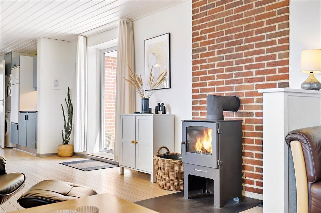 Das Haus bietet mit 121m² Lebensraum reichlich Platz für 6 Personen in 3 Schlafzimmern, zwei Badezimmern und einem großen Wohnzimmer mit integrierter Küche. Das Wohnzimmer ist ausgestattet mit einem Kaminofen, einem Fernseher mit Chromecast und bequemen Sitzmöbeln, so dass Sie sich entspannen und erholen können. Für Ihr Wellnessprogramm ist das größere der Badezimmer ausgestattet mit Sauna und Whirlpool. Insbesondere für Angler ist das Haus interessant, da es eine große Tiefkühlmöglichkeit (100l) bietet.