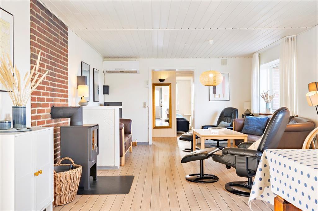 Träumen Sie davon, Ihren Urlaub in einem gemütlichen Ferienhaus in ruhiger und schöner Umgebung zu verbringen? Dann schauen Sie sich dieses schöne Haus mit Whirlpool auf 1200 m2 großen Grundstück in der Nähe des Ringkøbing Fjords genauer an.