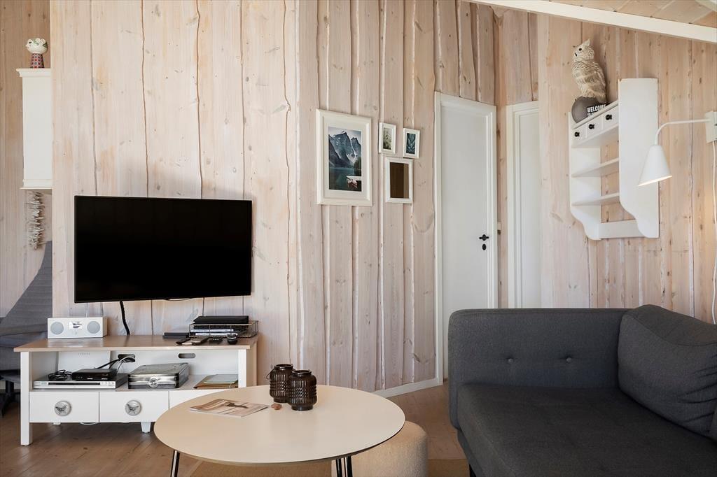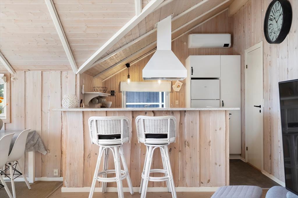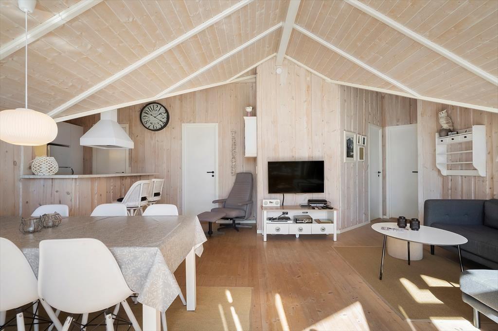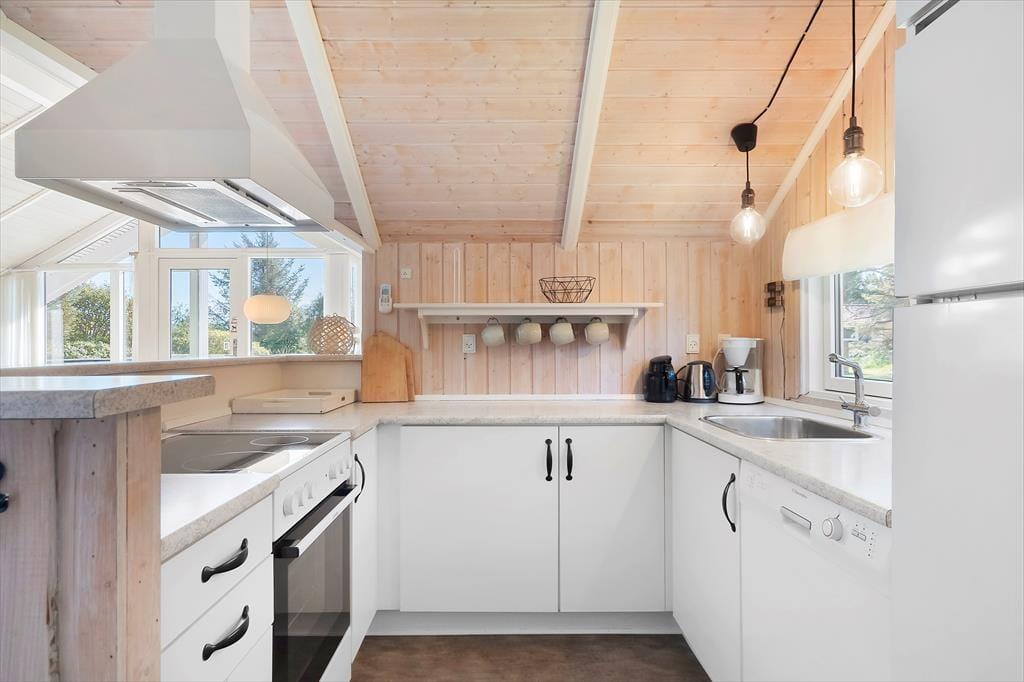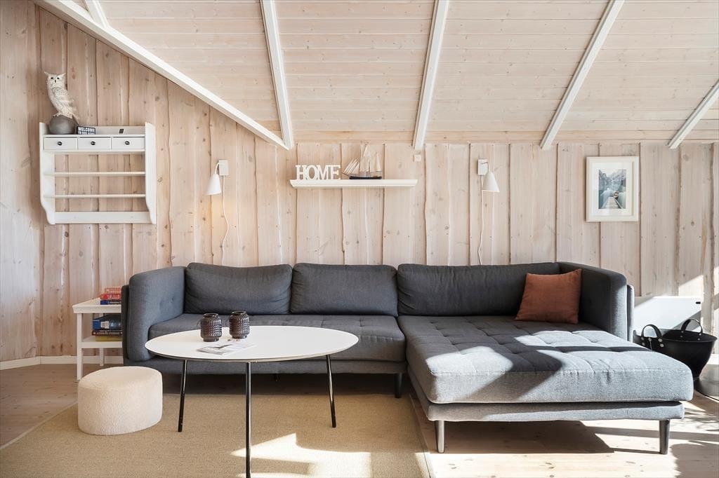Die helle Holzvertäfelung, die hohen Decken und der Kaminofen prägen den Wohnraum in bester Ferienhausmanier. Der Raum ist gut eingerichtet und lädt zu schönen Momenten des Beisammenseins ein. In der Polstersitzgarnitur genießen Sie lange Filmabende und gemütliche Nachmittage bei einem guten Buch. Zum Kartenspielen versammeln Sie sich rund um den Esstisch. Ihre Mahlzeiten bereiten Sie in der offen mit dem Wohnraum kombinierten Küche zu. Dank des Tresens genießen Sie dabei sicherlich häufig angenehme Gesellschaft. Drei gemütliche Schlafzimmer, ein Gäste-WC und ein Badezimmer stehen zu Ihrer Verfügung. Letzteres verdient besondere Erwähnung, da es mit einem Whirlpool und einer guten Sauna zu verwöhnen weiß.