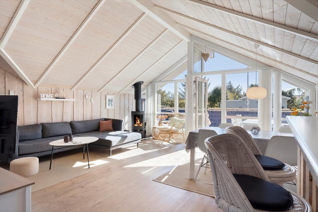 Dieses gemütliche, gut eingerichtete Ferienhaus ruht schön platziert in Nr. Lyngvig auf Holmsland Klit. Mit einem Whirlpool, einer Sauna, einem Kaminofen und guten Sonnenterrassen lädt es zu erholsamen Stunden voller Entspannung ein. Die kurze Entfernung zu Nordsee und Ringkøbing Fjord eröffnet beste Möglichkeiten für Aktivitäten auf, am und im Wasser.