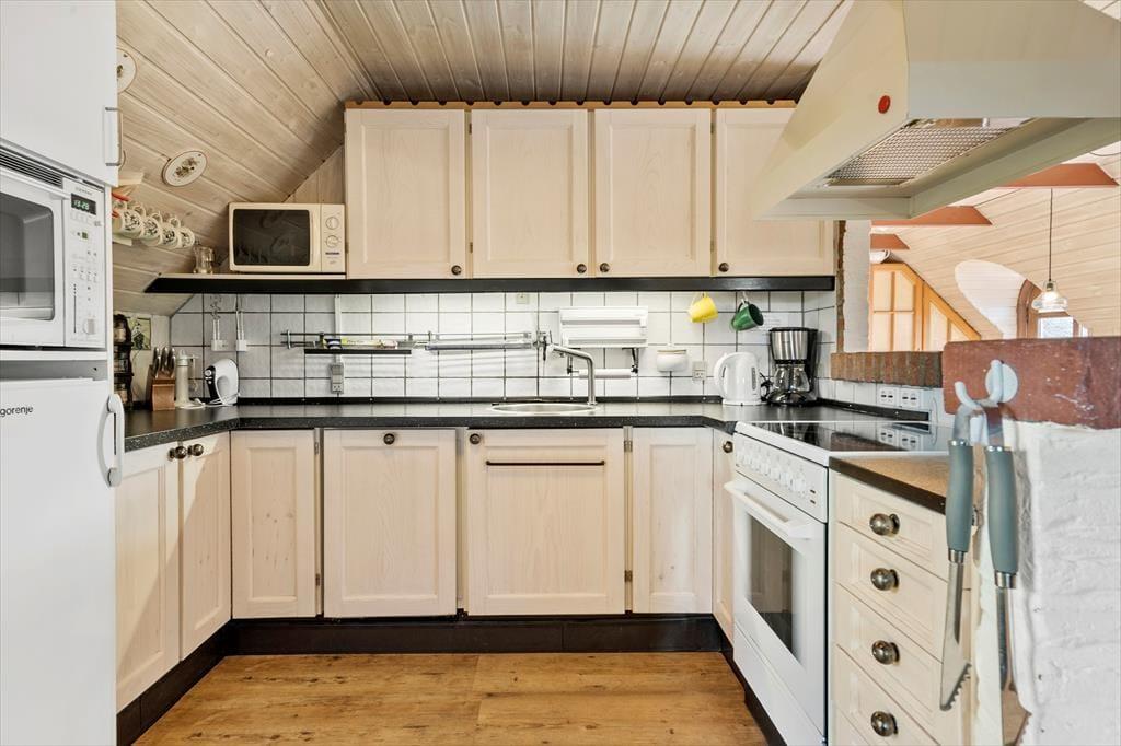 Dieses Ferienhaus samt Nebengebäude lädt zu einer Pause vom Alltag ein. Beide Gebäude sind mit einem Reetdach und klassischen Sprossenfenstern versehen. Im Inneren erwartet Sie eine warme, einladende Atmosphäre. Der Wohnraum mit einem Kaminofen und die Küche sind offen miteinander verbunden, sodass Sie viel gemeinsame Zeit genießen - selbst dann, wenn Sie in der Küche die Mahlzeiten zubereiten und es sich der Rest der Familie auf dem Sofa vor dem Fernseher gemütlich macht. Drei Schlafräume und ein Badezimmer sind ebenfalls vorhanden. Das Nebengebäude umfasst weitere Schlafplätze, eine kleine Teeküche und ein Badezimmer. Dieses Badezimmer verfügt über eine Sauna und einen Whirlpool, sodass entspannten Wellnessstunden nichts im Wege steht.