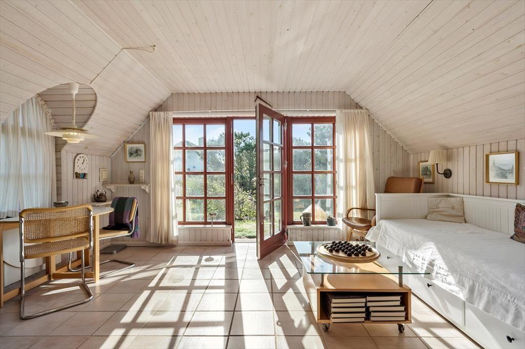 Nur 120 Meter trennen das Haus vom Ende der Sackgasse, wo Sie ein Pfad weiter durch die Dünen bis an den Strand führt. Der Strand lädt zum Baden, zum Spielen im Sand und zu langen Spaziergängen entlang der rauschenden Nordsee ein. Einen wunderschönen Panoramaausblick über Holmsland Klit bietet Ihnen die Aussichtsplattform des nahegelegenen Leuchtturms Nr. Lyngvig Fyr. Zu Fuß erreichen Sie auch den beschaulichen, hübsch gelegenen Fjordhafen Lyngvig Havn. Hvide Sande und Søndervig sind zügig per Pkw oder Fahrrad erreichbar. Empfehlen möchten wir Ihnen darüber hinaus einen Ausflug in die reizende alte Handelsstadt Ringkøbing.