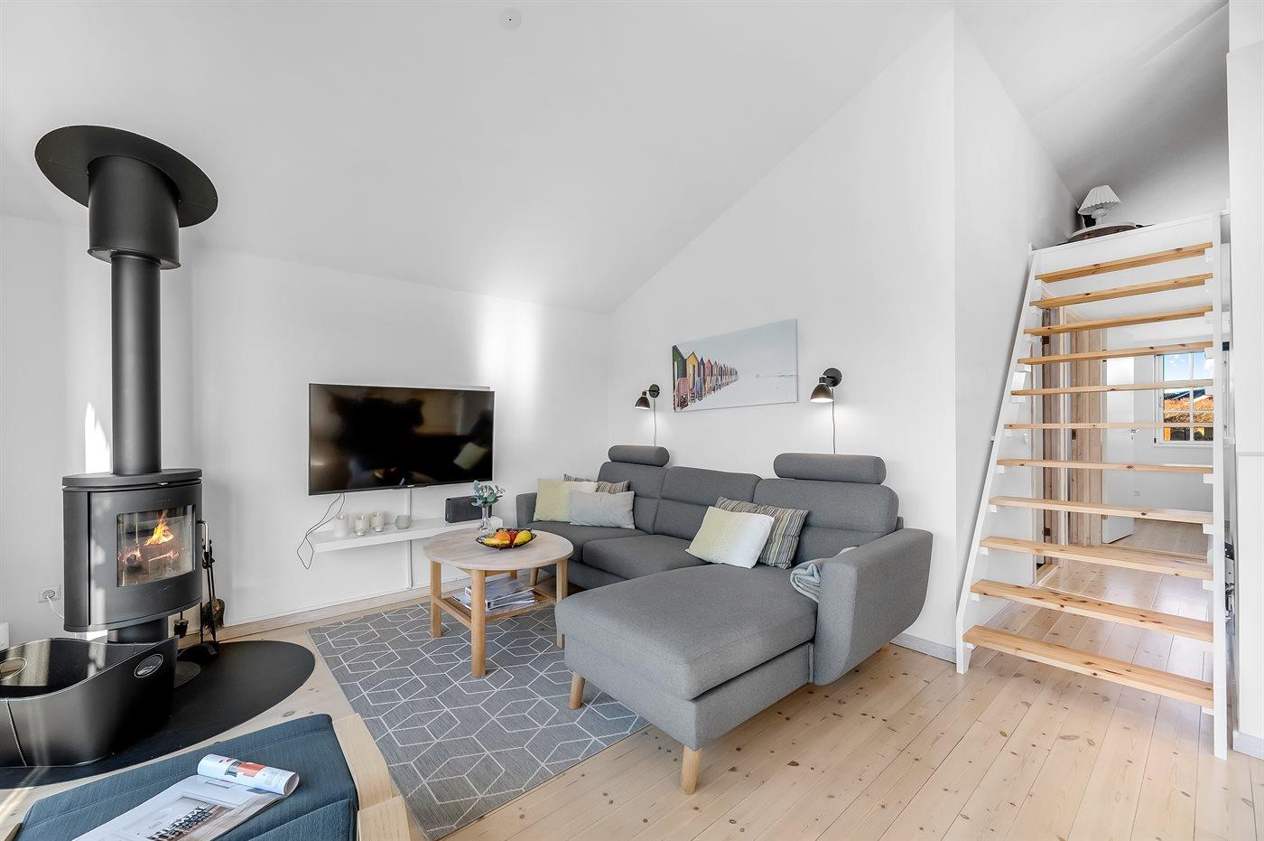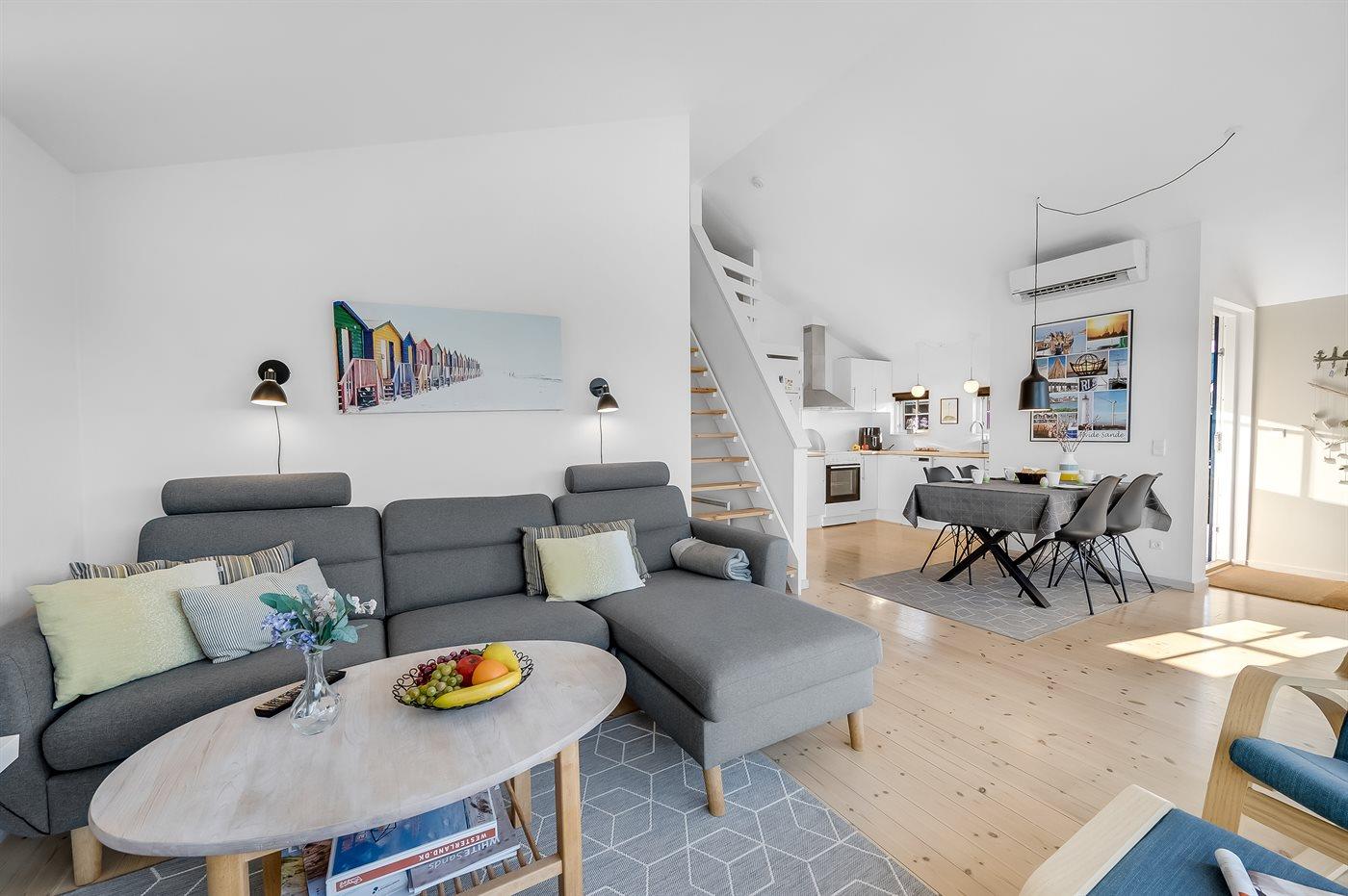 Die Ferienunterkunft liegt auf einem 715 m² großen Naturgrundstück. Die Entfernung zum Meer beträgt 1600 m. Die Entfernung zum Fjord beträgt 300 m. Die nächste Einkaufsmöglichkeit liegt 4300 m entfernt. In einem Abstand von 8000 m gibt es einen Golfplatz. Es steht ein offenes Terrassenareal zur Verfügung. Parkplatz auf dem Grundstück.