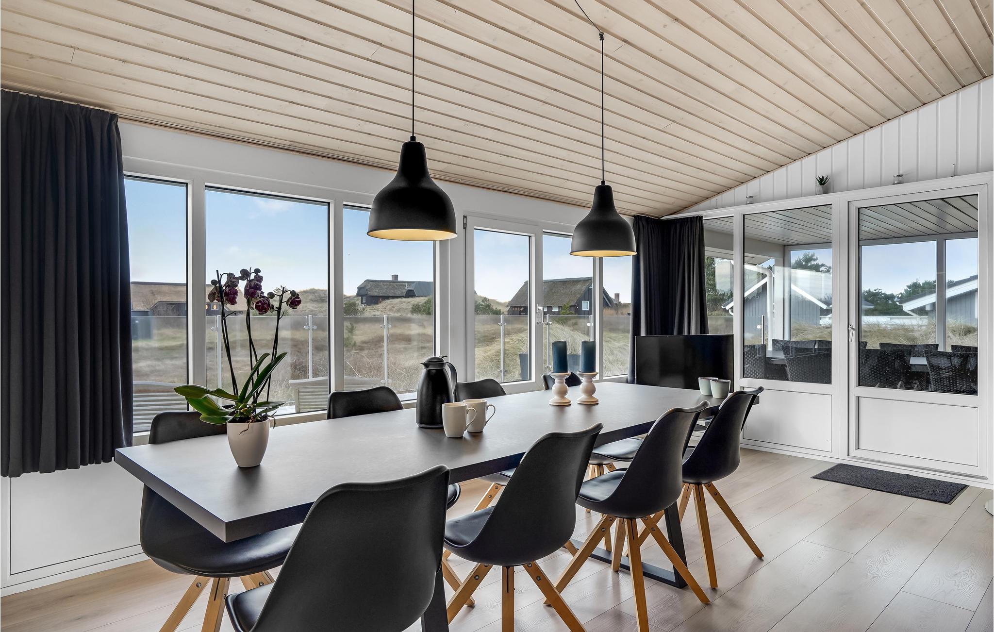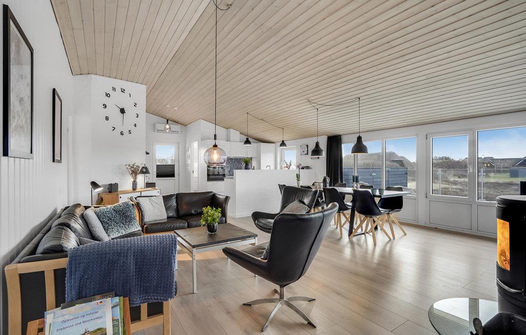 In der schönen Feriengegend nahe der Nordsee und dem Lyngvig Leuchtturm befindet sich dieses schöne Ferienhaus. Das Haus ist gut eingerichtet für 6 Personen mit 3 Schlafzimmern, einem großen Badezimmer mit Sauna und Whirlpool sowie einem Gästebad. Das Wohnzimmer ist zur Küche hin offen und bildet das Zentrum des Hauses. Hier gibt es sowohl eine Wärmepumpe als auch einen Holzofen als zusätzliche Wärmequelle. Vom Wohnzimmer aus haben Sie Zugang zur fantastischen Terrasse, die teilweise überdacht und vollständig eingezäunt ist. Vom Wohnzimmer aus haben Sie einen schönen Blick auf die hübsche Heidelandschaft.