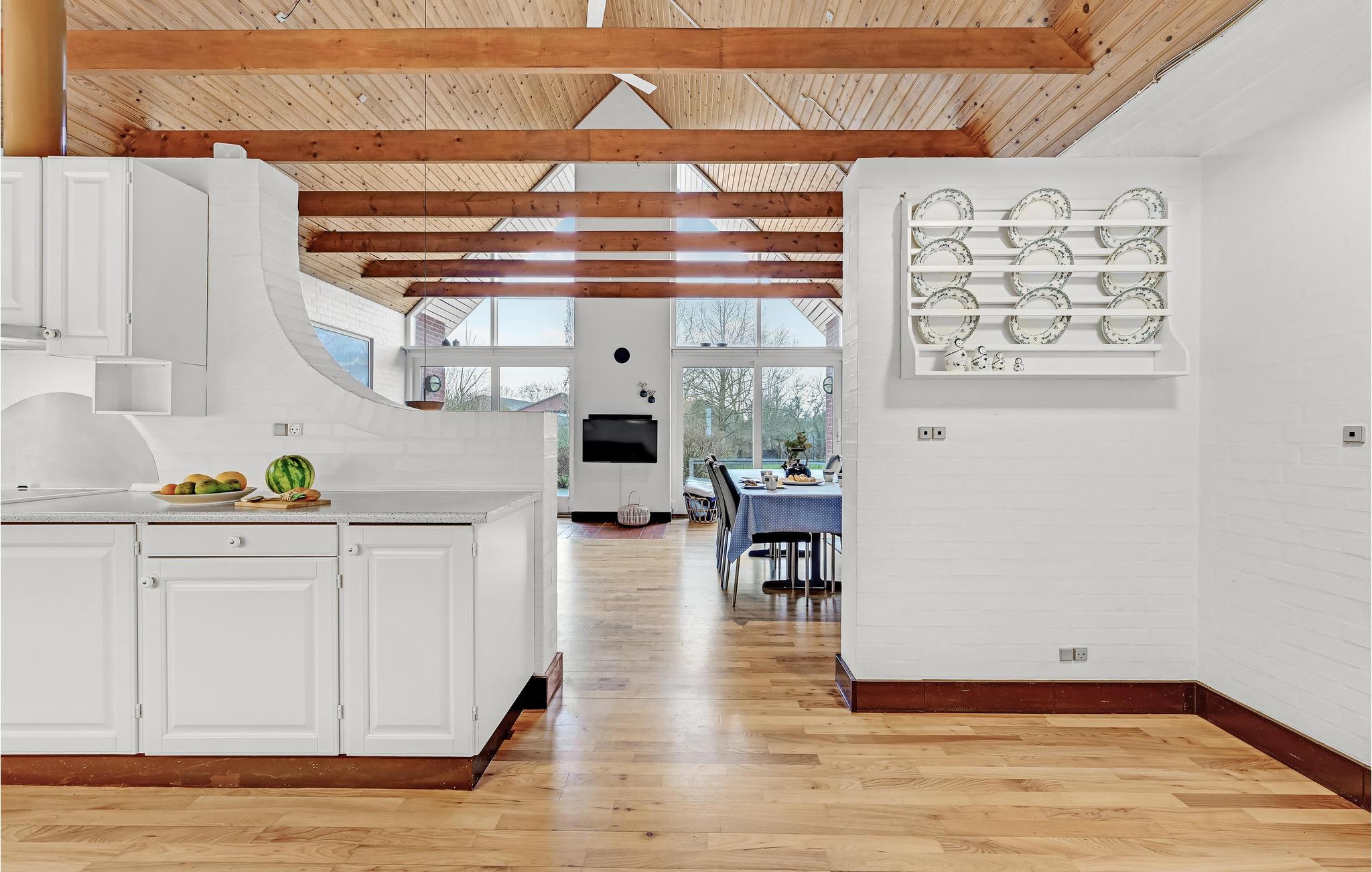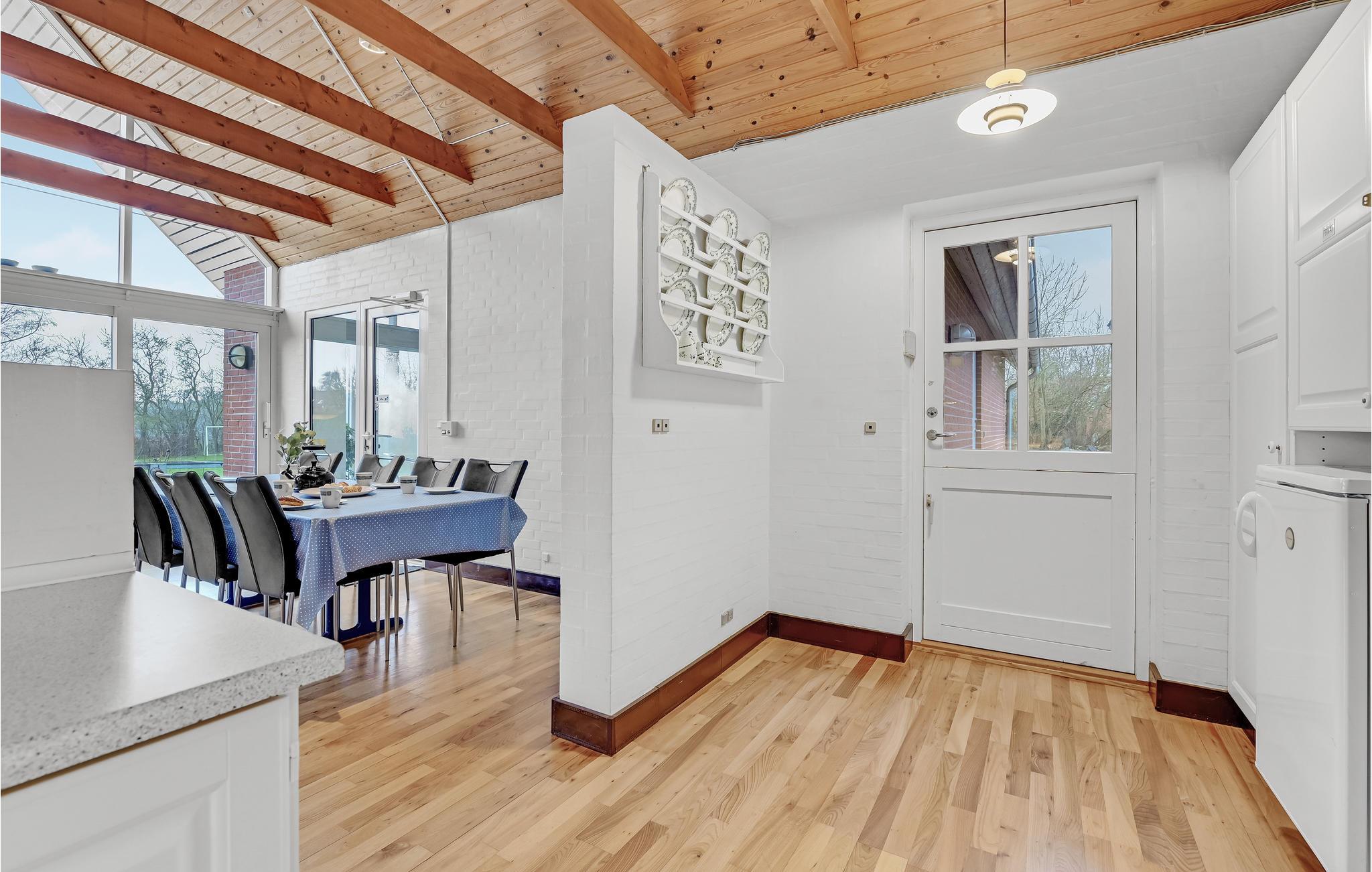 Zwischen Nyborg und Kerteminde liegt dieses geräumige und gemütliche Ferienhaus in einem kleinen Ferienhausgebiet. Das Haus liegt auf einem großen Naturgrundstück mit Rasen, nah am Strand, in schöner Natur mit guten Möglichkeiten für u.a. Wanderungen und Radtouren sowie Bade- und Angelmöglichkeiten. Der Poolbereich mit Energiesparanlage, Swimmingpool, Whirlpool für 2 Personen, Sauna und Bad wird ohne Zweifel die ganze Familie erfreuen. Es gibt geschlämmte Wände und freiliegende Balken, welches eine besonders gemütliche Atmospäre schafft. Dieses große Haus ist für mehrere Familien bestens geeignet. Es verfügt nämlich über zwei Wohnzimmer, wobei das im 1. Stock als Aktivitätsraum mit kombiniertem Billard-/Pooltisch und Dart eingerichtet ist. Außenkamin auf der Terrasse.