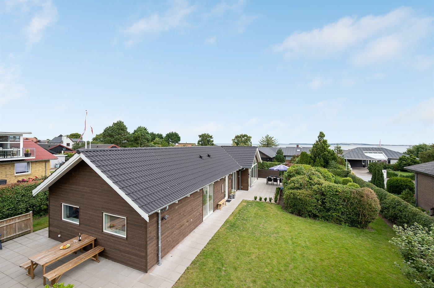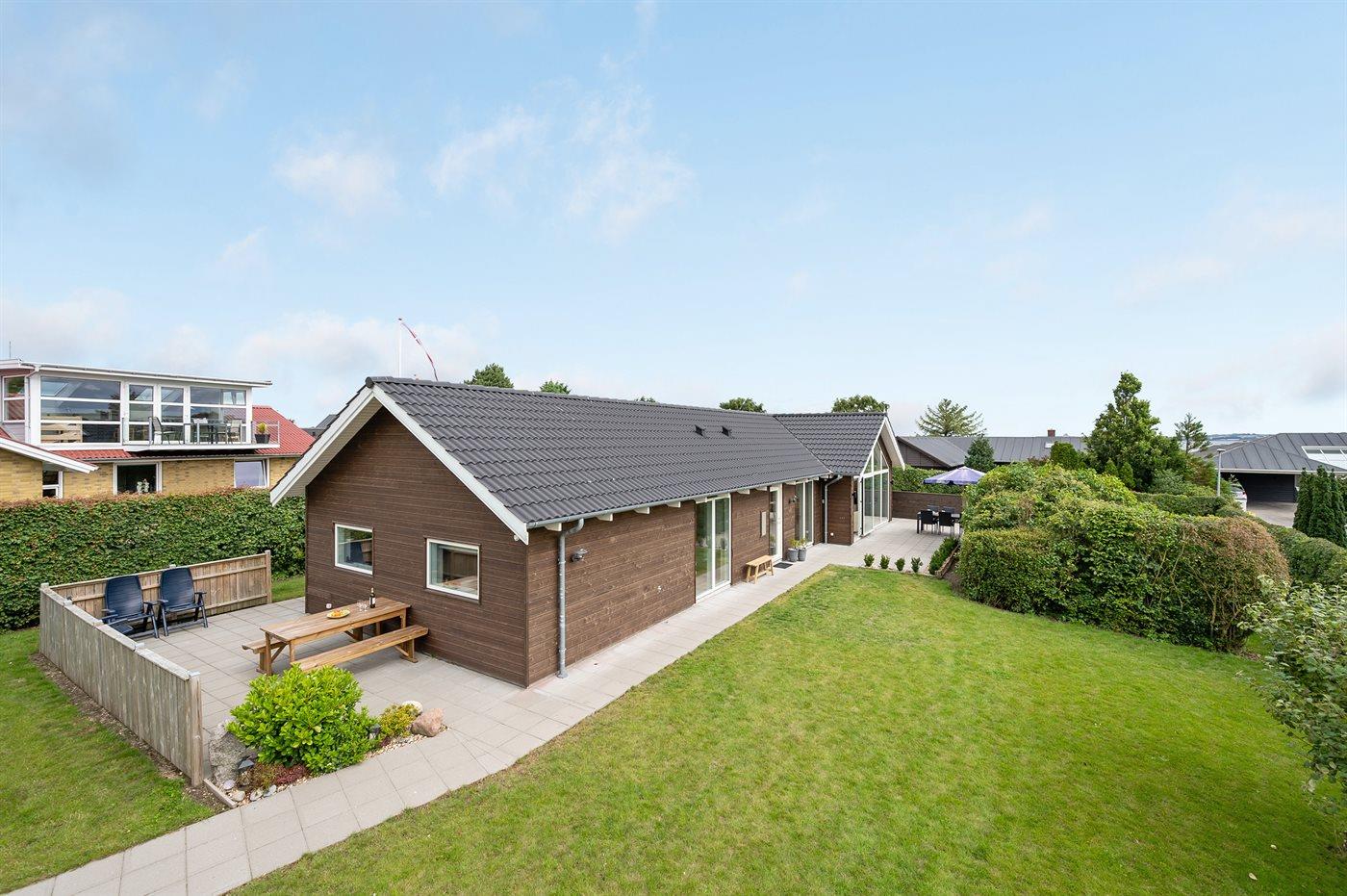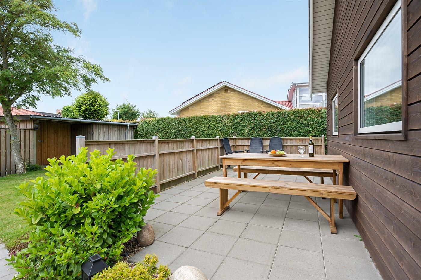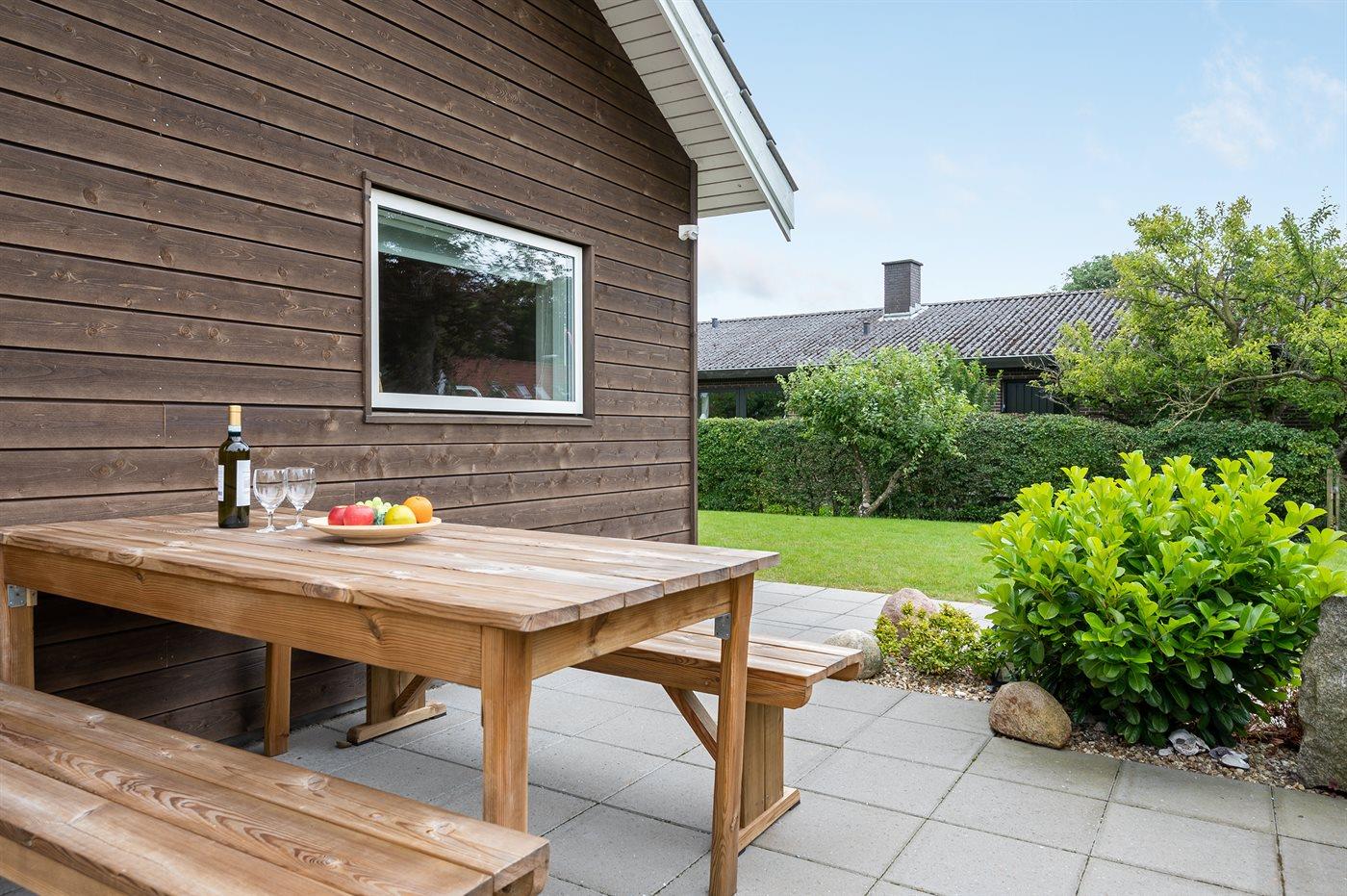 Die Ferienunterkunft liegt auf einem 836 m² großen Gartengrundstück. Die Entfernung zum Fjord beträgt 300 m. Es gibt einen Badesteg in der Nähe. Die nächste Einkaufsmöglichkeit liegt 1000 m entfernt. In einem Abstand von 3300 m gibt es einen Golfplatz. Es steht ein 55 m² Terrassenareal zur Verfügung. Geräteraum. Es steht ein Grill zur Verfügung. Parkplatz auf dem Grundstück.