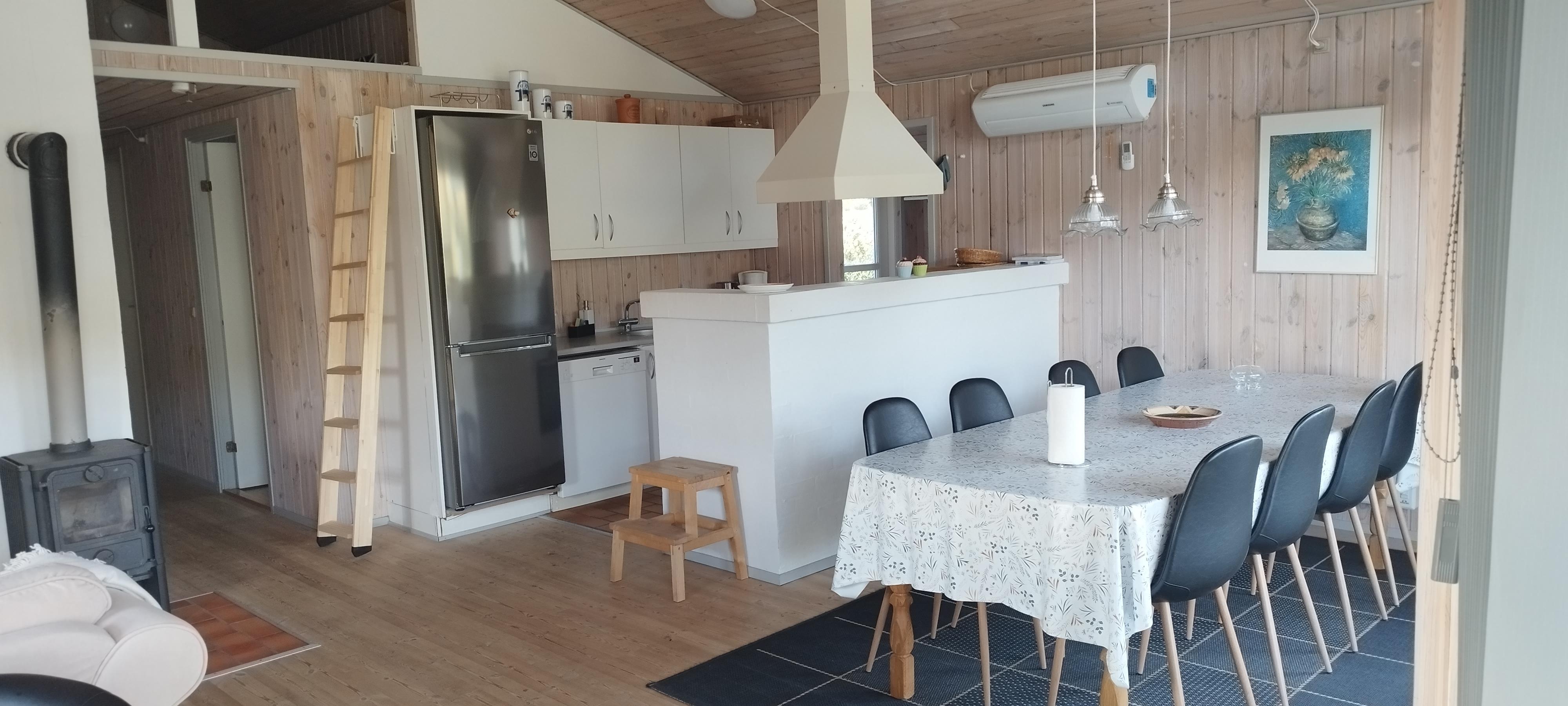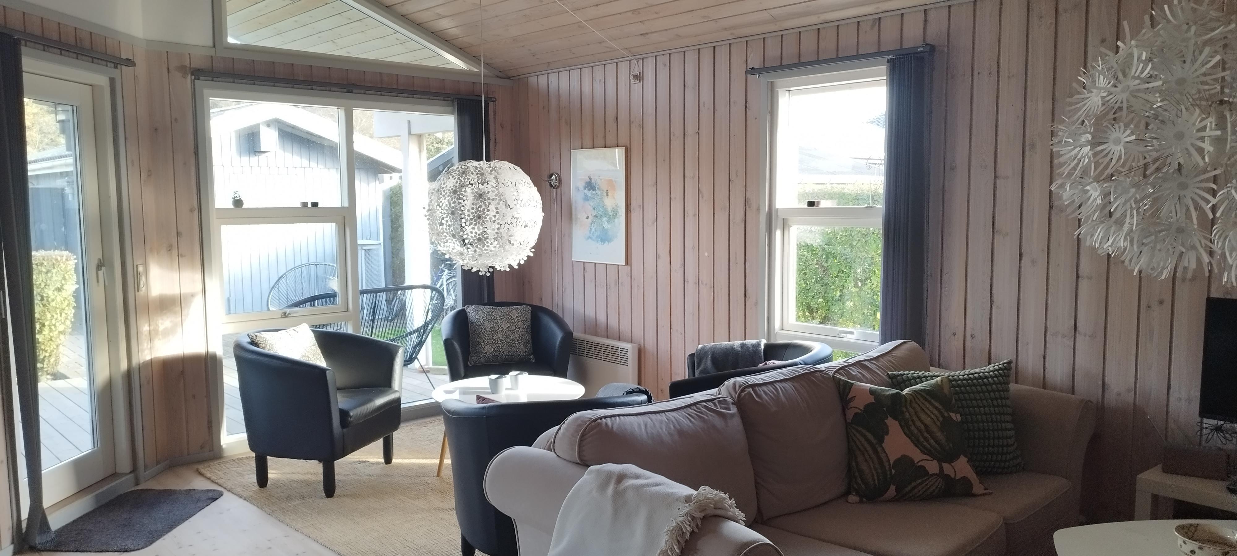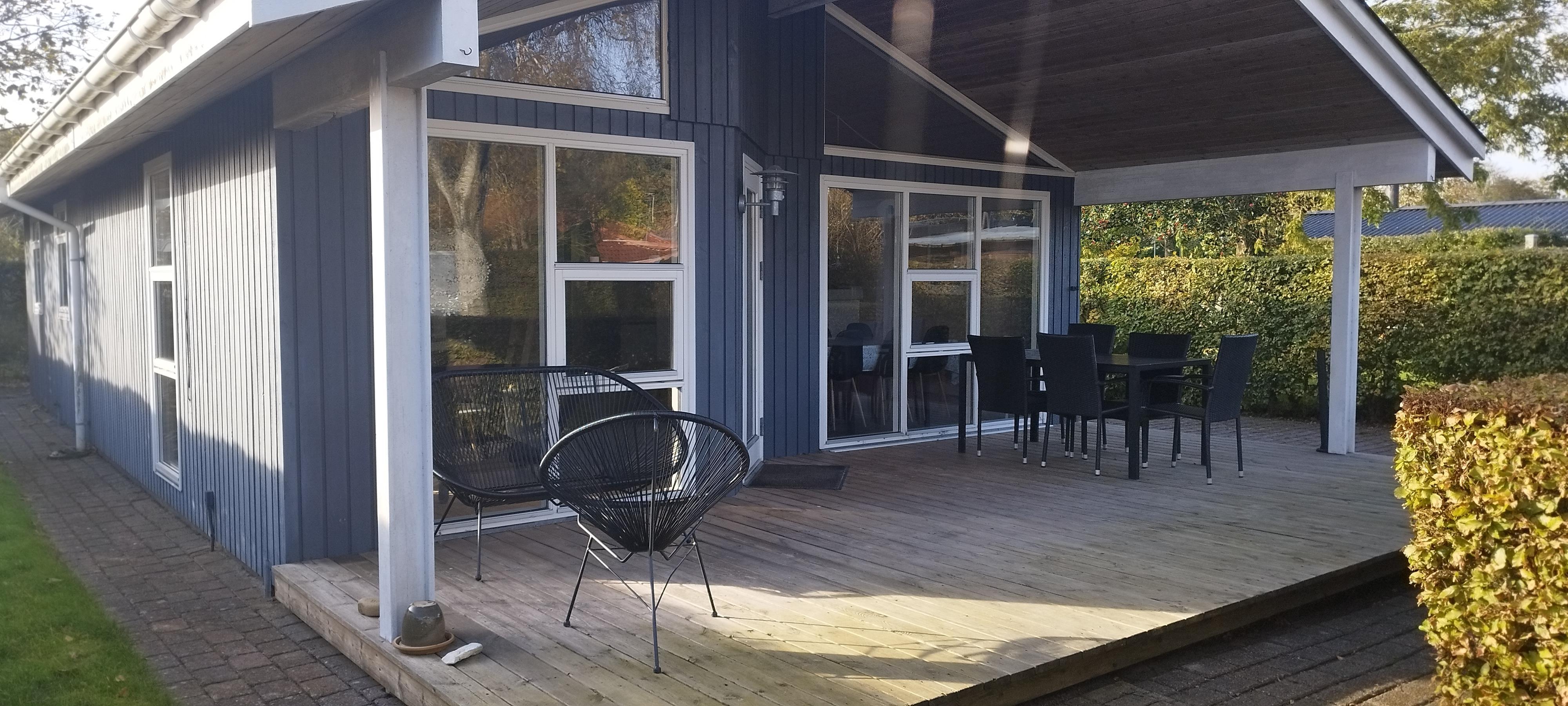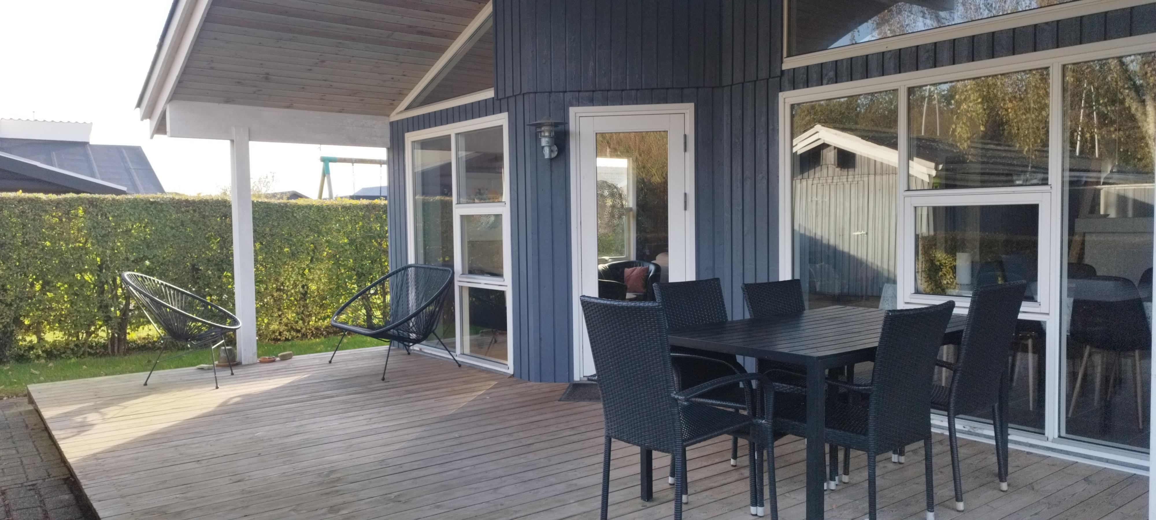 Schönes Ferienhaus auf einem geschlossenen Gartengrundstück in der Nähe vom Østerstrand. Es gibt 3 Zimmer, 1 mit Doppelbett, 1 mit 2 Betten und 1 mit 4 Kojen. Kombinierte Küche und Wohnzimmer mit Zugang zur überdachten Terrasse. Es gibt sowohl eine Sauna als auch eine Whirlpool-Badewanne. Es gibt auch einen Carport für das Auto. WiFi.