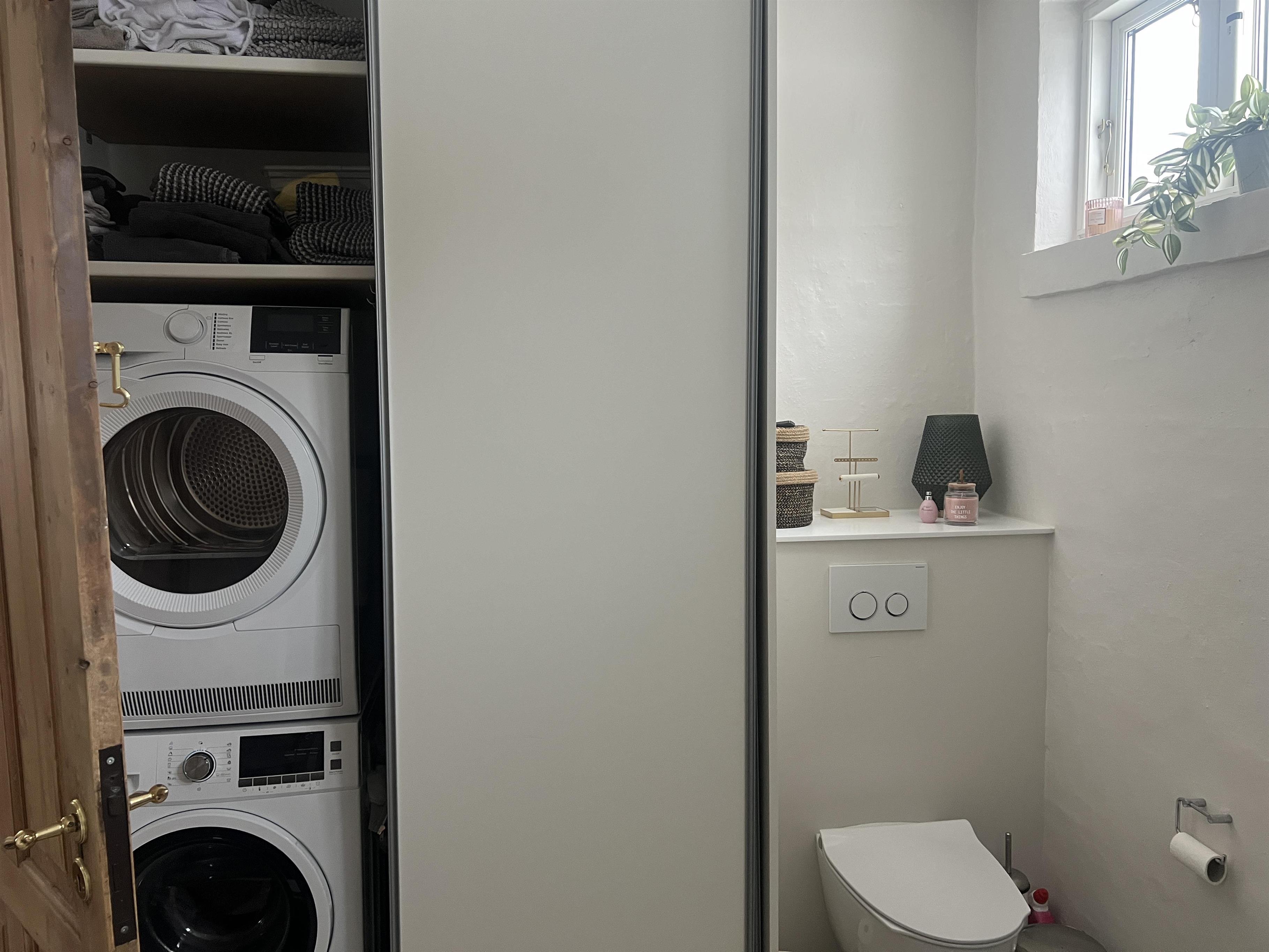 Im Inneren stehen moderne Unterhaltungsmöglichkeiten zur Verfügung. Zwei Fernseher – einer im Wohnzimmer und einer im Schlafzimmer – bieten Zugang zu Netflix, TV2 Play, Prime Video, DR TV, Spotify und weiteren Streamingdiensten. Das Internet verbindet sich automatisch, indem der Code auf dem Router gescannt wird. Das Haus wird mit Fernwärme beheizt; im Erdgeschoss sorgt Fußbodenheizung für ein angenehmes Raumklima zu jeder Jahreszeit.