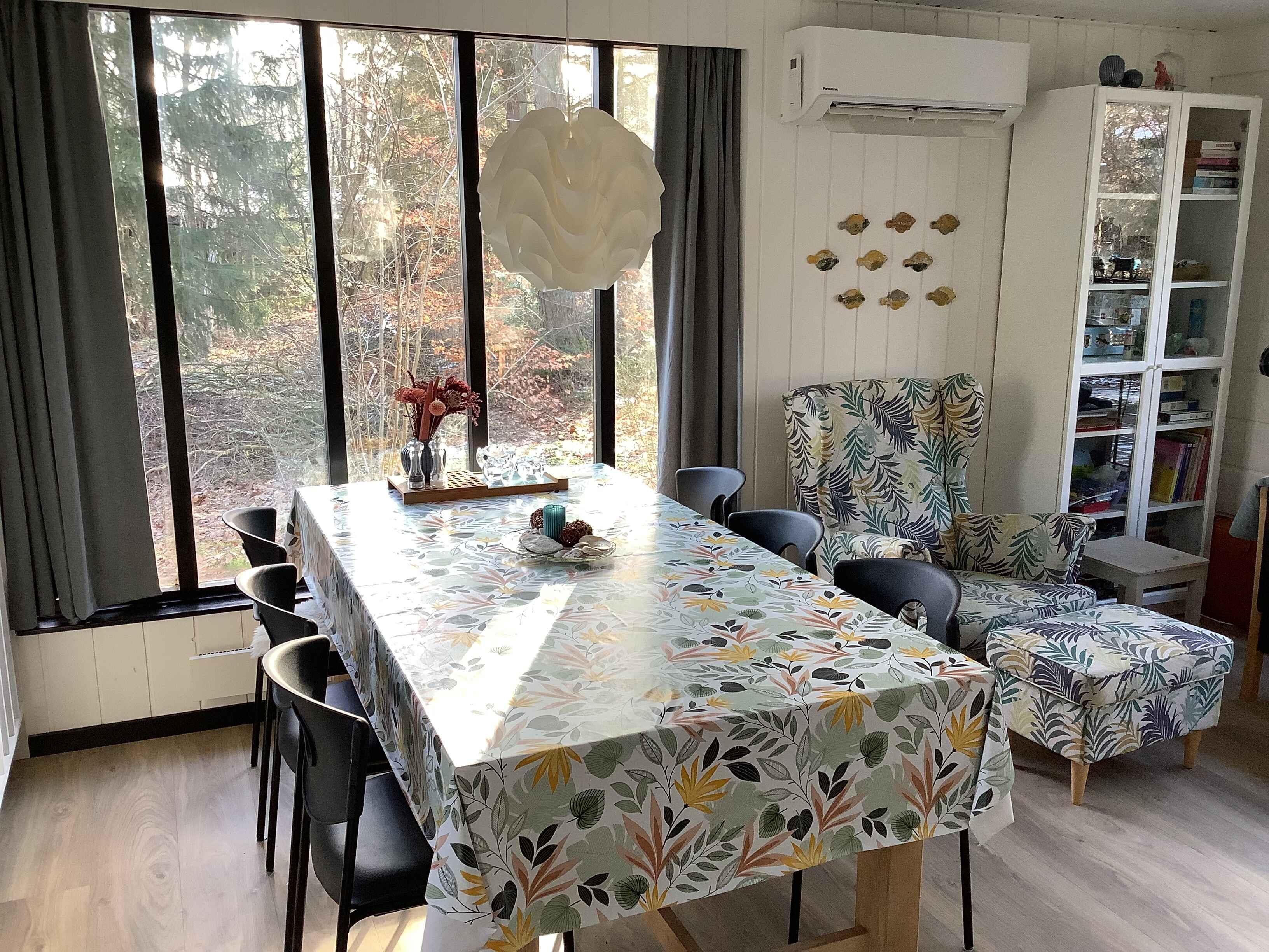 Gemütliches und helles Ferienhaus mit 71 m² im Wald in der kleinen Ferienhaussiedlung Ejerslev Lyng, wo Ruhe und Frieden herrschen und Zeit zum Entspannen ist. Es liegt auf einem großen Naturgrundstück, umgeben von Bäumen, die guten Windschutz bieten. Das Grundstück ist teilweise eingezäunt. Auf der Terrasse, die uneinsehbar liegt, kann man viele Stunden mit Spielen, Toben, Sonnenbaden oder einer Erfrischung verbringen. Sollte es einmal regnen, kann man sich unter die überdachte Terrasse zurückziehen. Auf der Terrasse gibt es Gartenmöbel, Liegestühle, einen Sonnenschirm, eine Feuerstelle, einen großen Gasgrill und einen Sandkasten. Das Haus, das 2025 neu renoviert wurde, verfügt über eine kombinierte Küche/Wohnzimmer (mit Blick auf den Fjord), ein Badezimmer mit Dusche und 2 Schlafzimmer. Das eine verfügt über ein Doppelbett (180 x 200), das andere über ein Doppelbett (140 x 200), ein Etagenbett (80 x 200) und ein Kinderbett. Der Limfjord mit seinem kinderfreundlichen Strand und dem schönen Badewasser liegt nur 150 Meter vom Haus entfernt. In der Sommersaison gibt es einen Badesteg, und wir empfehlen das Tragen von Badeschuhen, da es dort viele Muschelschalen gibt. Nach einem kurzen Spaziergang entlang des Wassers oder auf dem Naturpfad gelangen Sie zum Hafen von Ejerslev. Dort gibt es ein Café, einen Spielplatz und die Möglichkeit, einen Spaziergang um die Blaue Lagune zu machen. Im Hafen gibt es Ladestationen für Elektroautos. Einkaufsmöglichkeiten gibt es in Sejerslev, 3 km vom Ferienhaus entfernt. Dort gibt es „Min købmand“ mit allem, was man für den täglichen Bedarf braucht, eine Bäckerei und eine Tankstelle mit Benzin und Diesel. Nykøbing ist etwa 15 km entfernt. Dort finden Sie alles, was Sie brauchen. Eine schöne Fußgängerzone mit vielen Geschäften und spannenden Restaurants. Am Ende der Fußgängerzone befindet sich das Tourismusbüro, wo Sie Informationen über Mors erhalten können. Dort können Sie auch Fahrräder mieten, wenn Sie die Sehenswürdigkeiten der Insel erkunden möchten. Die Insel bietet viele Erlebnisse für Groß und Klein. Willkommen auf Mors. Achtung: Wird nicht für gewerbliche Nutzung vermietet.