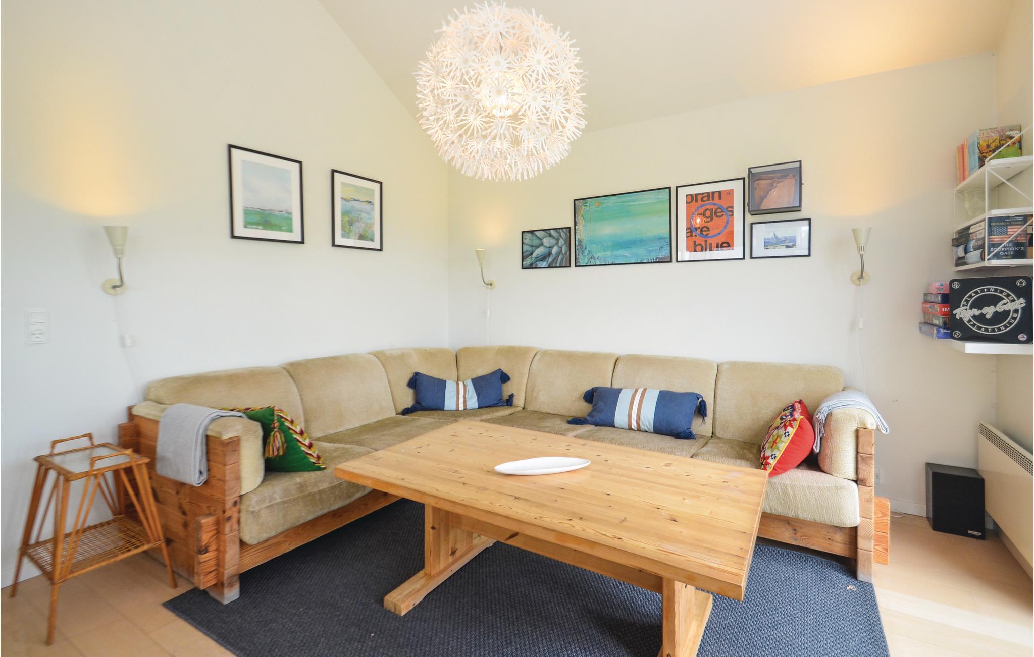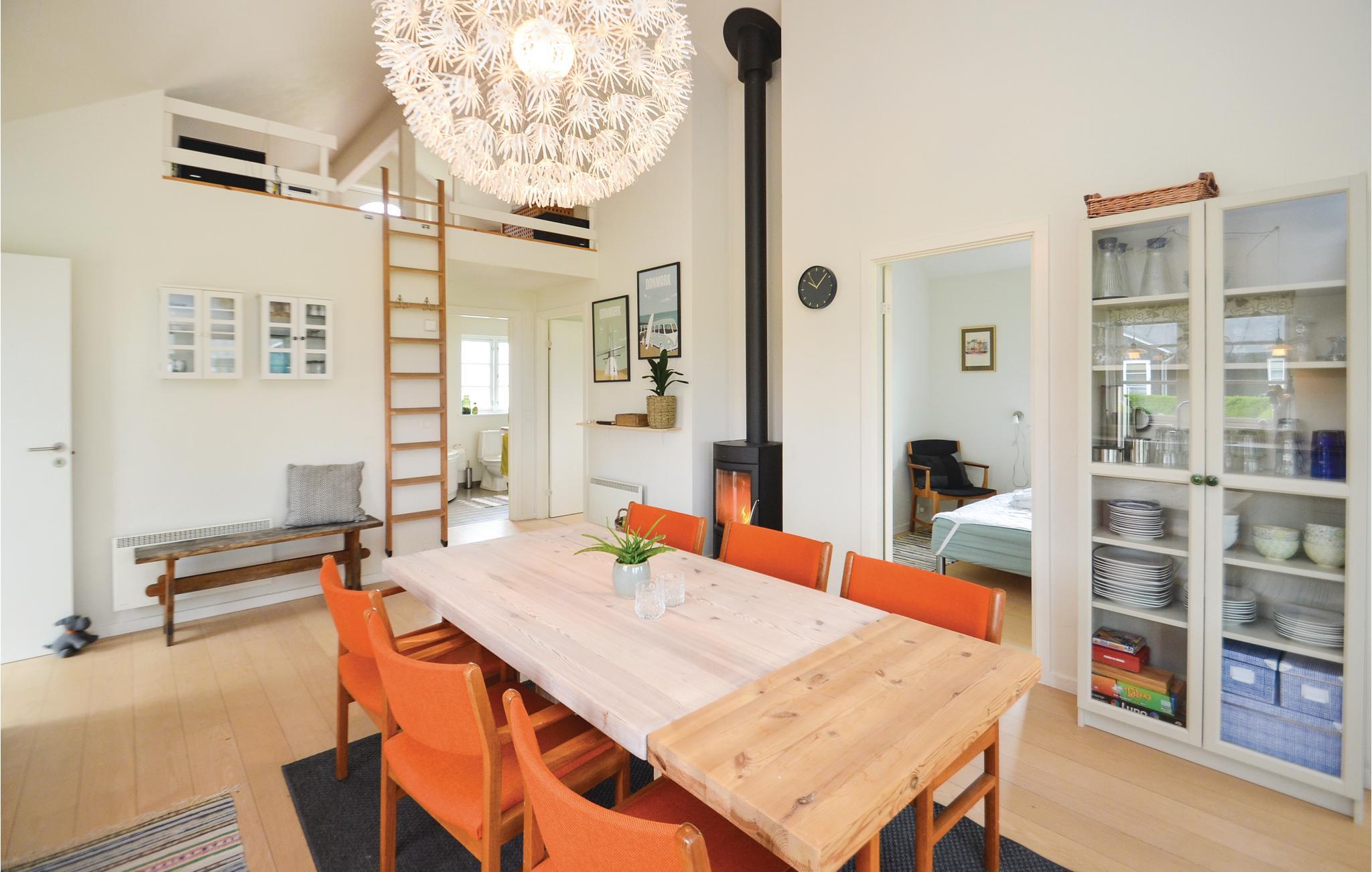 Es gibt drei Schlafzimmer und ein komfortables Badezimmer mit Whirlpool und Sauna. Die geräumige Wohnstube verfügt über eine Sitzecke, an kälteren Tagen können Sie hier außerdem den Kaminofen anmachen.