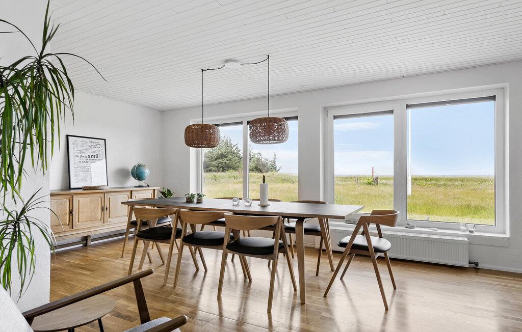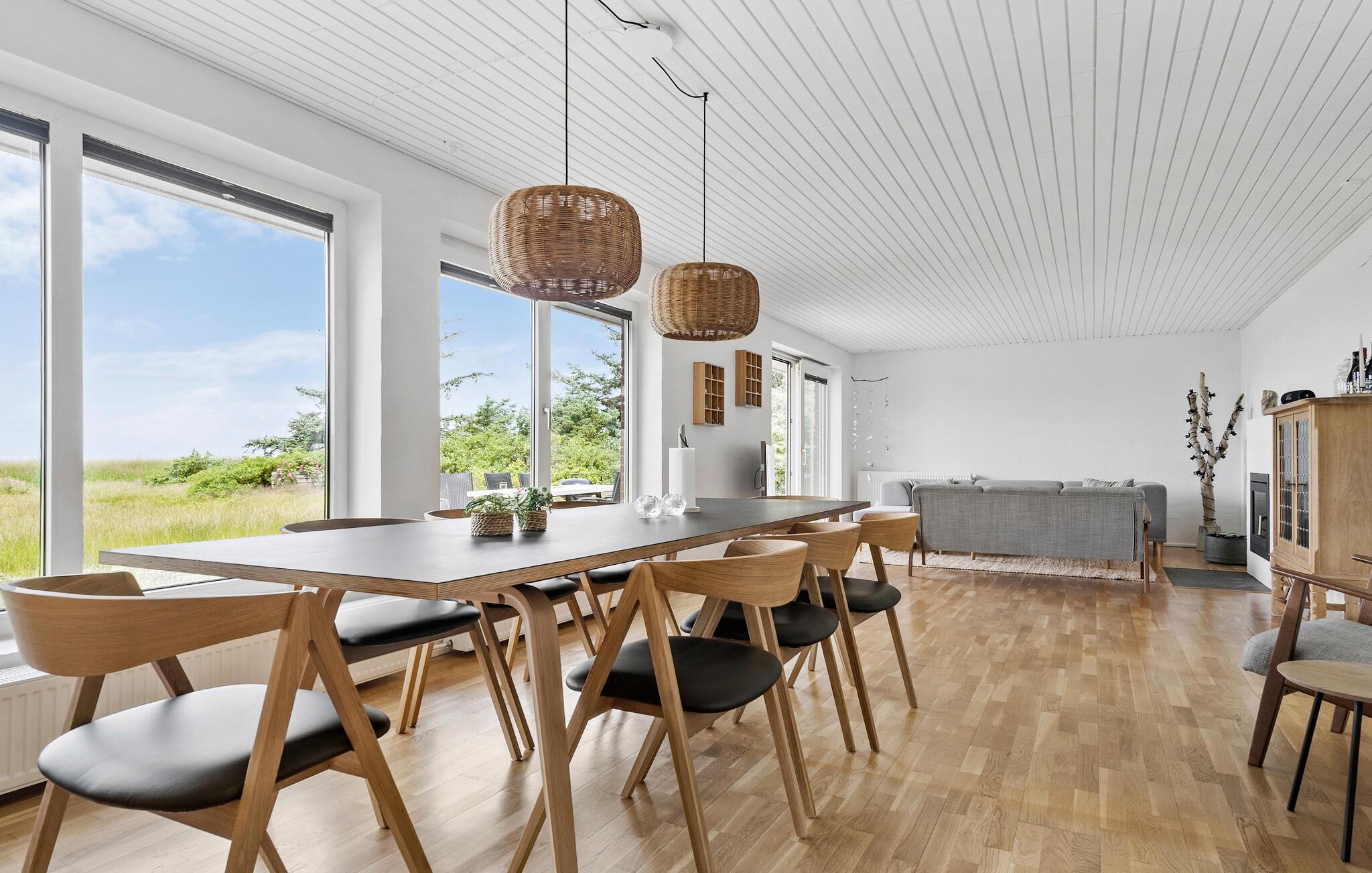 Ihr Ferienhaus, mit Platz für eine große Familie, vereint Komfort, Naturerlebnisse und eine gemütliche Atmosphäre. Das ansprechend gestaltete Interieur schafft eine warme und einladende Umgebung, die zum Entspannen einlädt. Die Terrasse ist der ideale Ort, um die Ruhe der Natur zu genießen, sei es bei einem Grillabend mit Familie und Freunden oder bei entspannten Stunden im Freien mit Blick auf den Fjord Nissum Bredning. Die gut ausgestattete Küche lässt keine Wünsche offen und ermöglicht es Ihnen, köstliche Mahlzeiten zuzubereiten, die Sie anschließend im hellen und freundlichen Essbereich in aller Ruhe genießen können. Auch von hier haben Sie einen wunderbaren Fjordblick.
