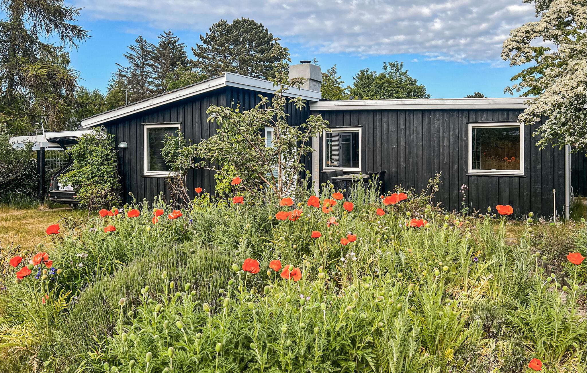 Gemütliches Ferienhaus nahe Ordrup Strand mit Kamin, Garten, Spielplatz und Strandzugang für erholsame Urlaubstage.