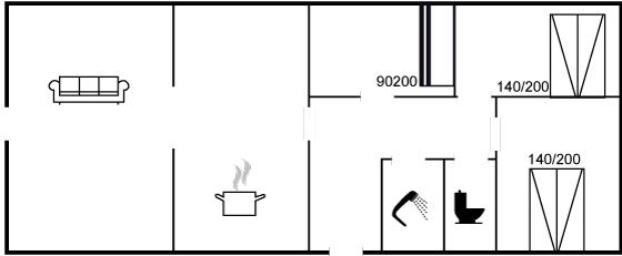 Die Schlafplätze verteilen sich auf 3 Schlafräume. 4 Schlafplätze in Doppelbetten. 2 Schlafplätze in einem Etagenbett.
