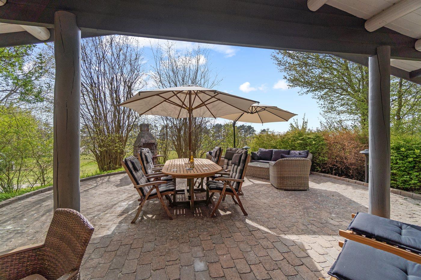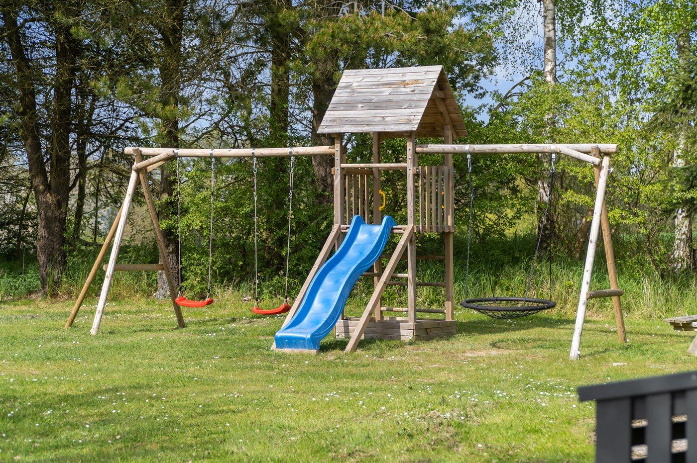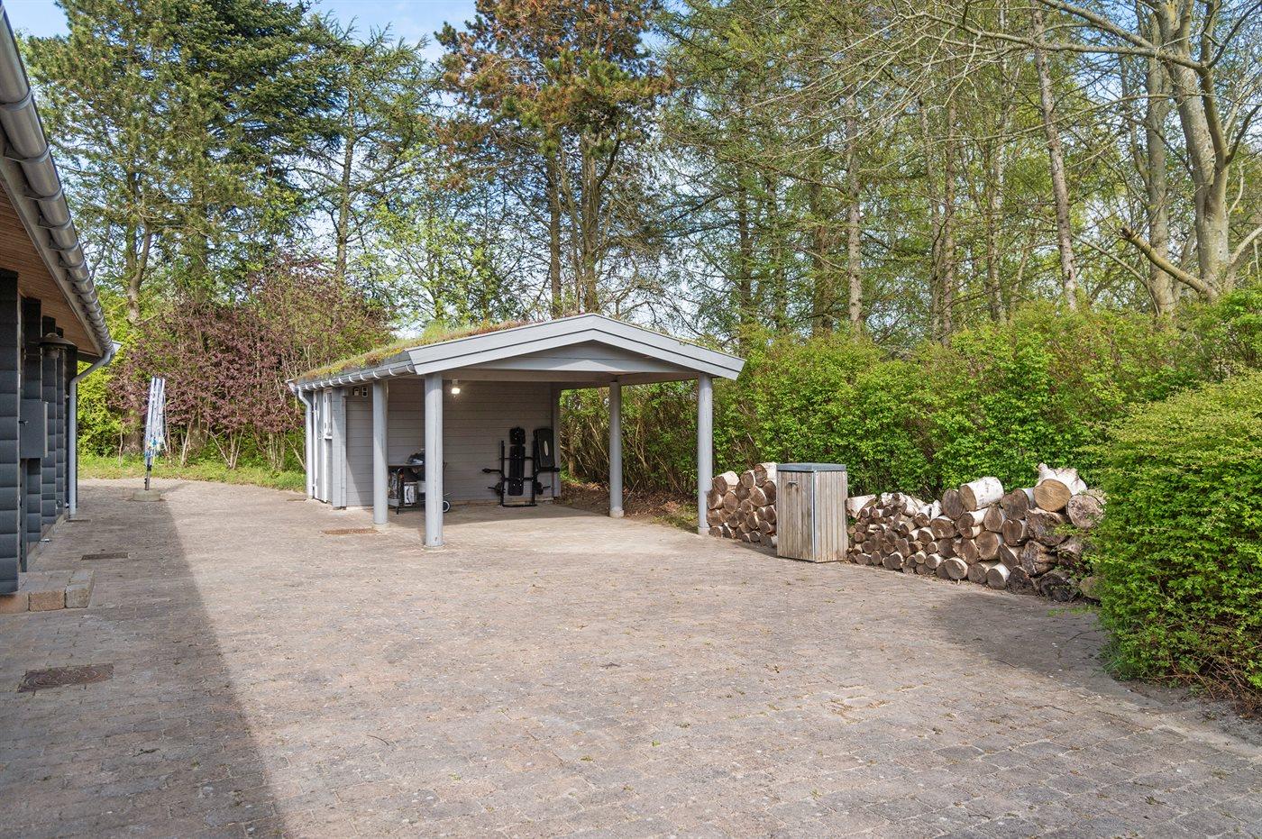 Die Ferienunterkunft liegt auf einem 22000 m² großen Naturgrundstück. Die Entfernung zum Meer beträgt 1550 m. Es gibt einen Badesteg in der Nähe. Die nächste Einkaufsmöglichkeit liegt 2300 m entfernt. In einem Abstand von 2300 m gibt es einen Golfplatz. Es steht ein offenes Terrassenareal zur Verfügung. Außerdem gibt es überdachte Terrasse. Schaukel. Sandkasten. Spielturm. Rutsche.An Sommerabenden sorgt der Außenkamin für eine gemütliche Atmosphäre. Es steht ein Grill zur Verfügung. Es steht ein Carport zur Verfügung. Parkplatz auf dem Grundstück.
