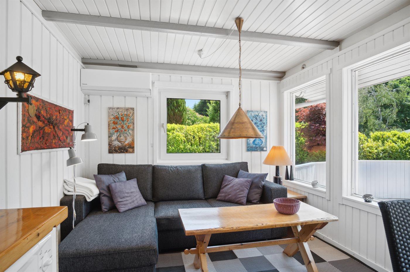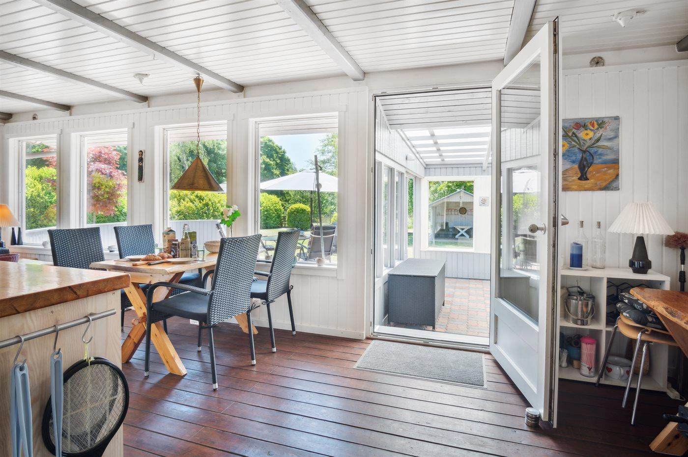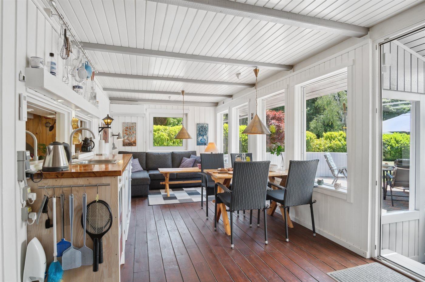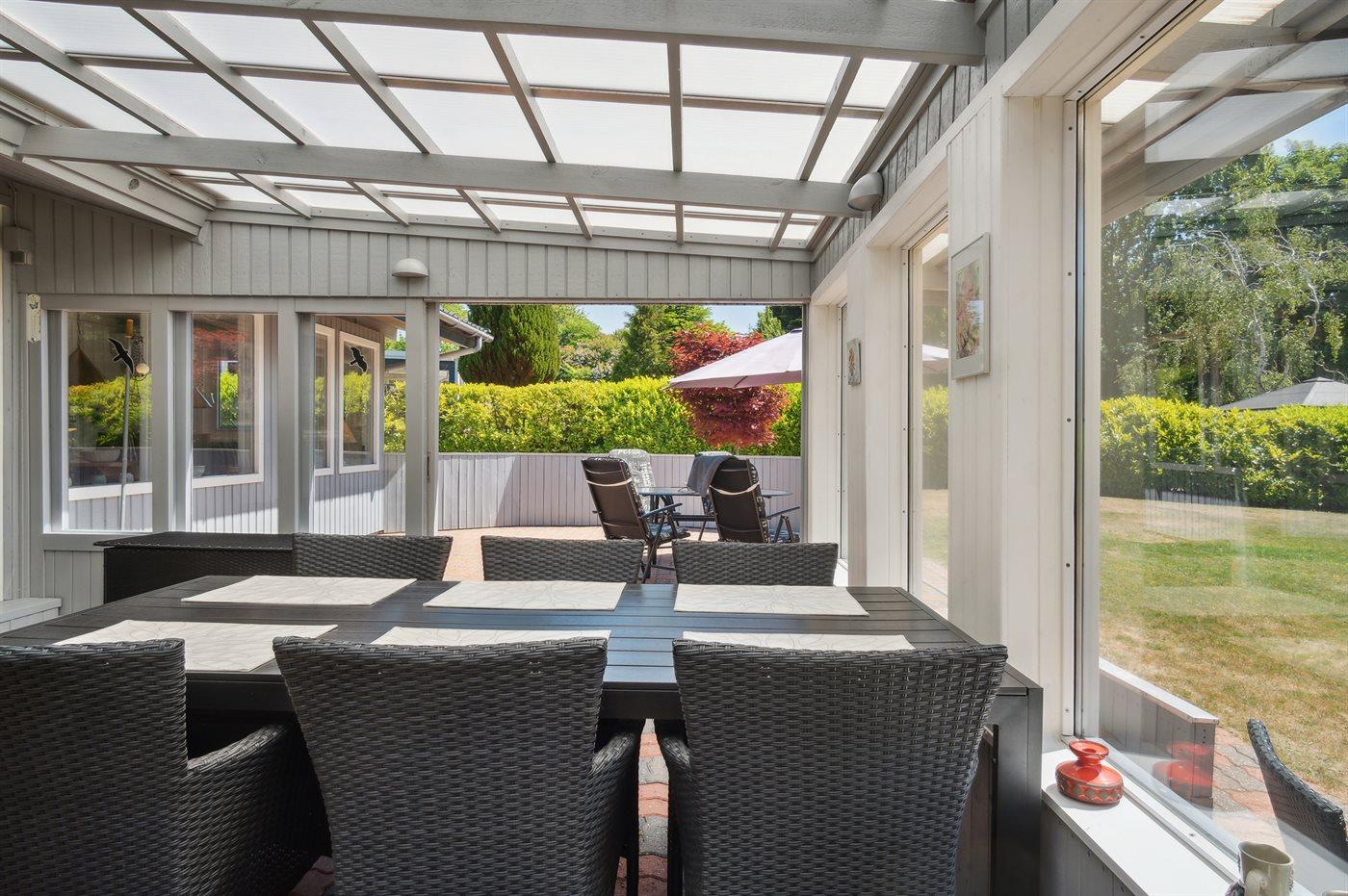 Charmantes Ferienhaus in ruhiger Lage bei Ordrup mit Garten, Wintergarten und Nähe zu Strand und Wald.