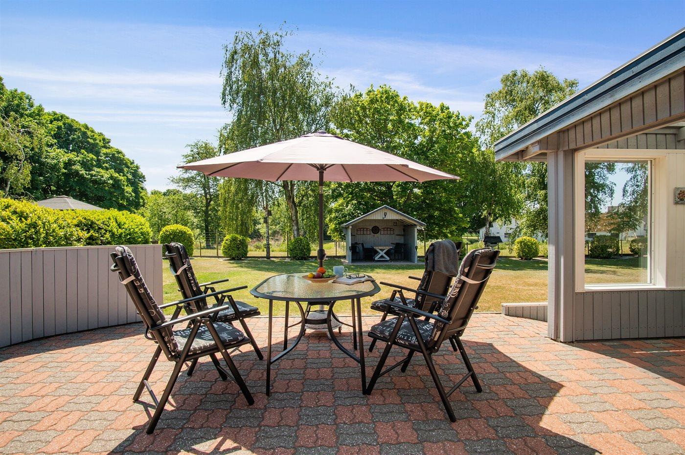 Die Ferienunterkunft liegt auf einem 1230 m² großen Gartengrundstück. Das Grundstück ist eingezäunt. Die Entfernung zum Meer beträgt 1800 m. Die nächste Einkaufsmöglichkeit liegt 2000 m entfernt. In einem Abstand von 1500 m gibt es einen Golfplatz. Es steht ein 45 m² Terrassenareal zur Verfügung. Außerdem gibt es überdachte Terrasse. Zutritt zu einem Wintergarten. Geräteraum. Sandkasten. Es steht ein Grill zur Verfügung. Es steht ein Carport zur Verfügung. Parkplatz auf dem Grundstück.