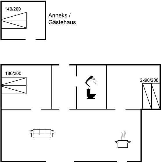 Die Schlafplätze verteilen sich auf 3 Schlafräume. 4 Schlafplätze in Doppelbetten. 3 Schlafplätze in Einzelbetten. 2 von diesen Schlafplätzen befinden sich im Gästehaus.
