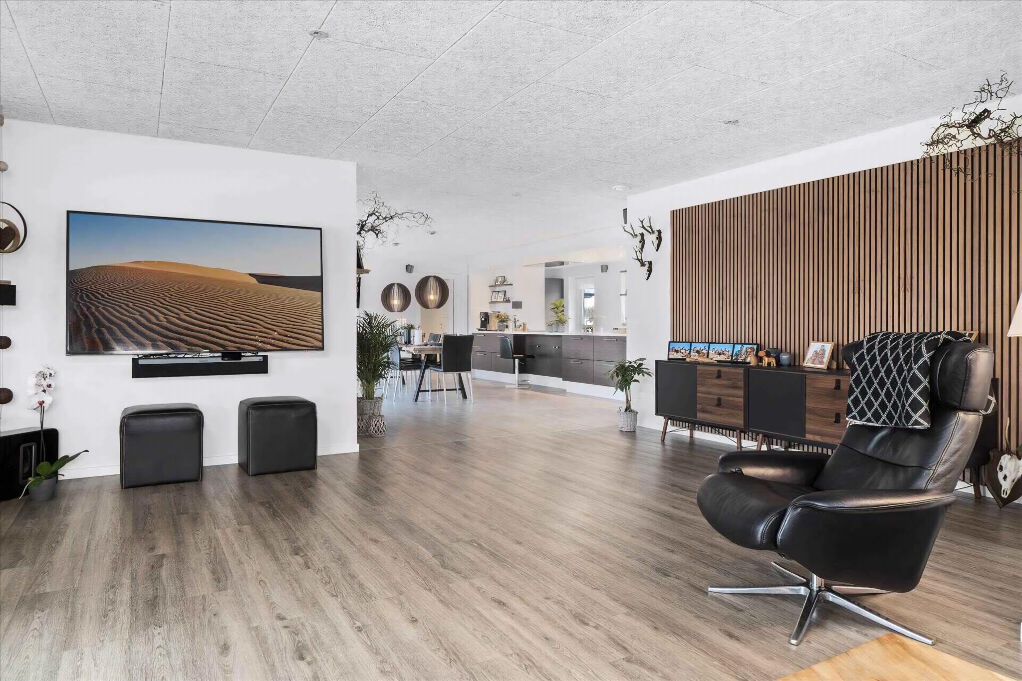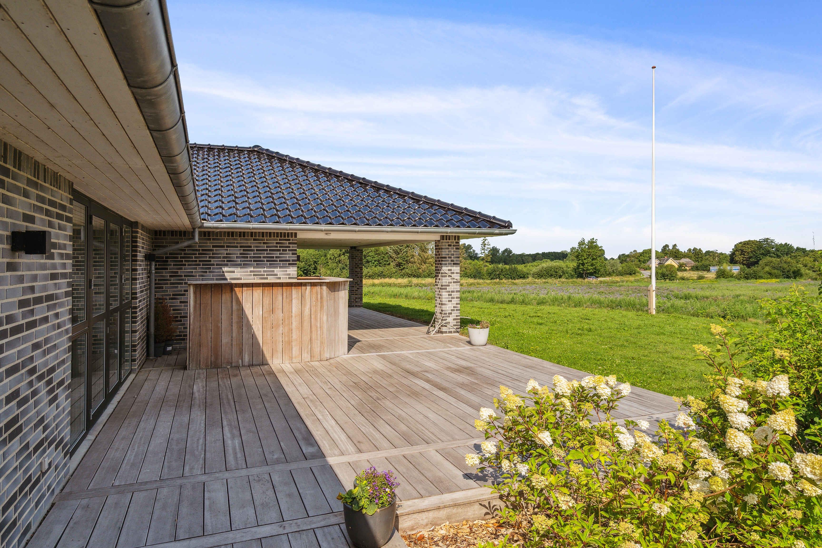 Großzügiges Ferienhaus mit 354 m² Wohnfläche für bis zu zehn Personen. Das Haus verfügt über vier Schlafzimmer, mehrere Wohnbereiche und einen hellen, offenen Wohn- und Essbereich mit direktem Zugang zur Terrasse und zur Natur – ideal für Familien oder mehrere Generationen. Ein Highlight ist das Hallenbad, das das ganze Jahr über für Entspannung und Spaß sorgt. Vom Essbereich gelangt man auf eine große Terrasse aus Hartholz mit eingebautem Whirlpool und Blick auf die Seen. Draußen bietet das Grundstück viel Platz für Spiele, Grillabende oder ruhige Stunden mit Blick auf Wasser und Felder. Ein privater Angelteich kann dazugebucht werden. Die Umgebung bietet zahlreiche Freizeitmöglichkeiten. Nur wenige Kilometer entfernt liegt der familienfreundliche Strand von Tørresø mit flachem Wasser. Wander- und Radwege führen durch die offene Landschaft Nordfünens. Nordfünen ist für seine Küstenlage und seinen lokalen Charme bekannt. In weniger als 20 Minuten erreicht man Odense mit Einkaufsmöglichkeiten, Kulturangeboten, Zoo, Museen und gemütlichen Cafés. Das Haus eignet sich sowohl für längere Urlaube als auch für entspannte Wochenenden – mit einer gelungenen Kombination aus Aktivität und Erholung. Eine praktische und großzügige Basis für alle, die Natur und Stadt erleben möchten – ohne auf Komfort zu verzichten. Achtung: Wird nicht für gewerbliche Nutzung vermietet.
