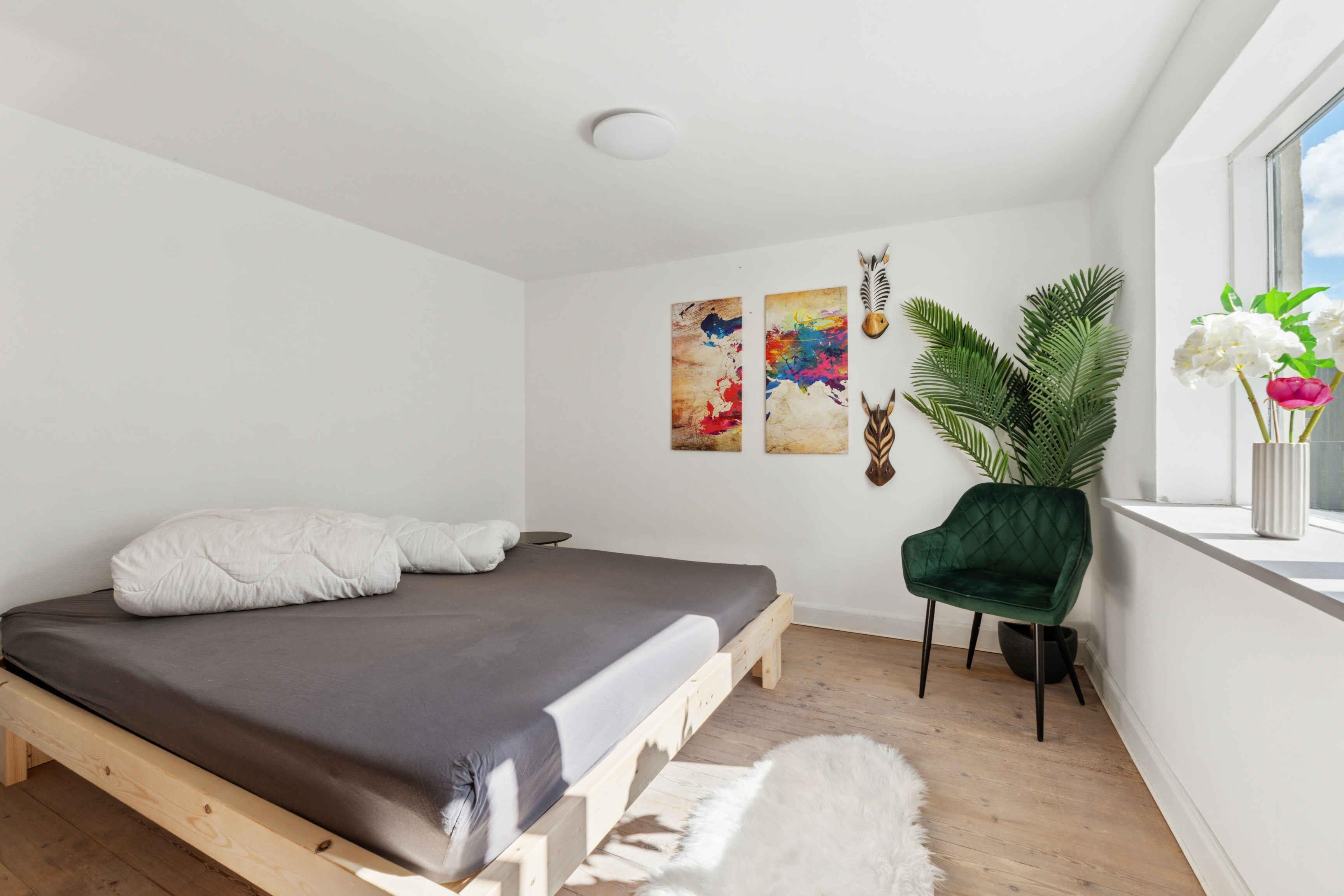 Dieses 2024 renovierte Ferienhaus bietet 140 m², verteilt auf drei Schlafzimmer mit insgesamt acht Schlafplätzen. Es ist ideal für Familien oder Freunde, die einen erholsamen Urlaub in ruhiger Umgebung verbringen möchten. Das Wohnzimmer ist auf Gemeinschaft und Gemütlichkeit ausgerichtet. Hier gibt es einen Smart-TV, eine große Leinwand für Filme und Spiele sowie einen Kaminofen, der an kühlen Abenden für Wärme sorgt. Internet ist im ganzen Haus verfügbar. Ein Homeoffice ist ebenfalls vorhanden. Das Haus ist von einem eingezäunten Garten umgeben, ideal für Kinder oder Hunde. Draußen lassen sich zahlreiche Tiere beobachten, und die Ruhe der Umgebung lädt zum Entspannen ein. Vom Garten und vom Schlafzimmerbalkon genießt man einen schönen Blick über die Felder. Die Küche ist gut ausgestattet und öffnet sich zum Ess- und Wohnbereich, sodass gemeinsames Kochen und Zusammensein leichtfallen. Das gesamte Haus ist funktional eingerichtet und bietet ideale Räume für geselliges Beisammensein. Die Umgebung bietet viele Erlebnisse. Nur 8 km entfernt liegt die Küste mit den kinderfreundlichen Stränden Nordfünens. Dort können Sie baden, Sandburgen bauen oder lange Spaziergänge am Wasser unternehmen. Die Landschaft lädt zu Rad- und Wandertouren durch Felder, Wälder und kleine Dörfer ein. Die Region ist bekannt für ihre reiche Vogelwelt, und Angler finden gute Möglichkeiten sowohl an der Küste als auch an Put-&-Take-Seen. Wer Stadtleben und Kultur sucht, erreicht Odense in kurzer Zeit. Hier gibt es Museen, Einkaufsmöglichkeiten und Cafés. Kleine Ferienorte in der Umgebung locken mit Eisdielen, Häfen und einer entspannten Atmosphäre. Mit seiner Kombination aus moderner Ausstattung, ruhiger Lage und der Nähe zu Strand, Natur und Stadt ist dieses Ferienhaus die ideale Wahl für einen abwechslungsreichen Urlaub. Hier finden Sie Platz für Aktivitäten und Erholung.