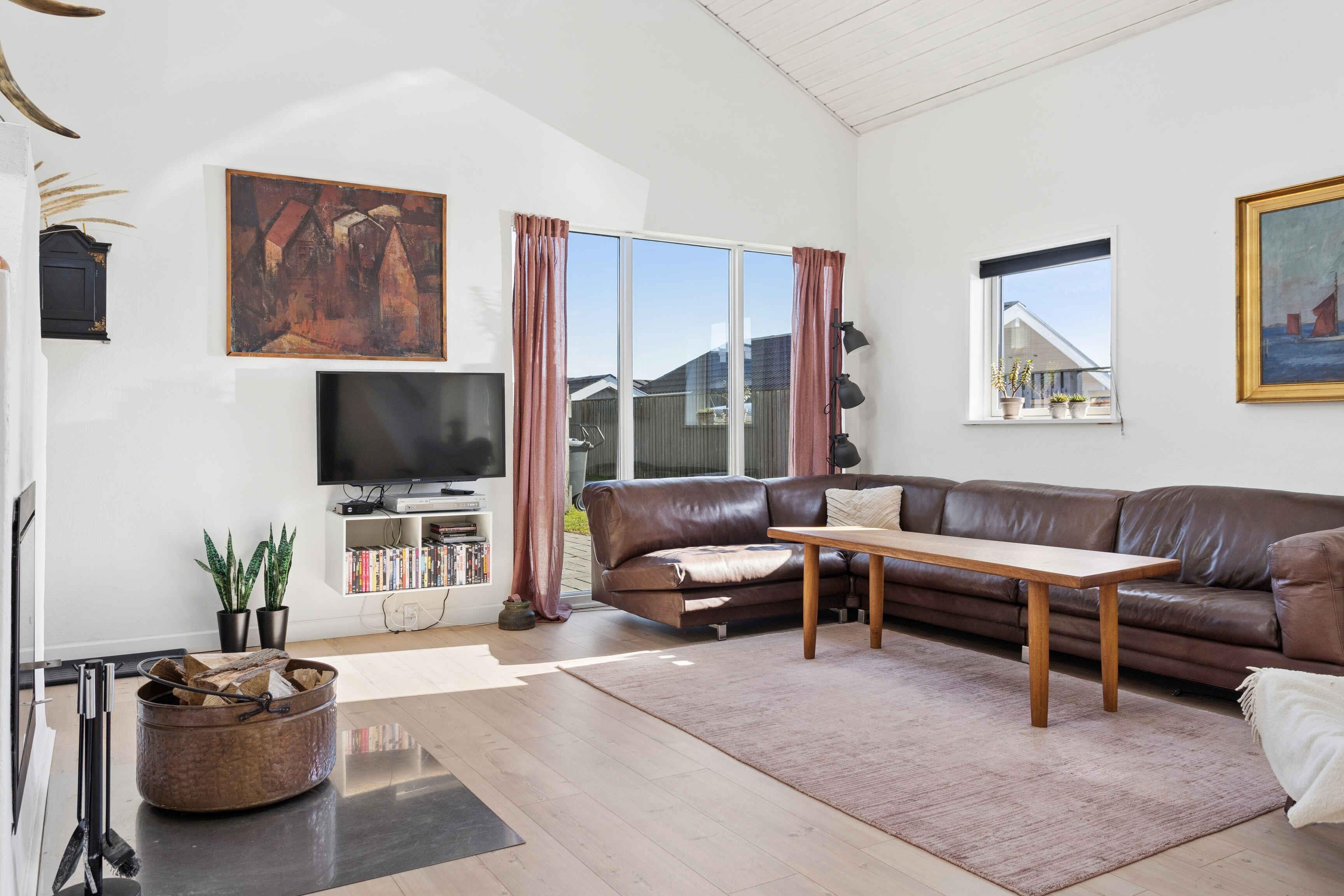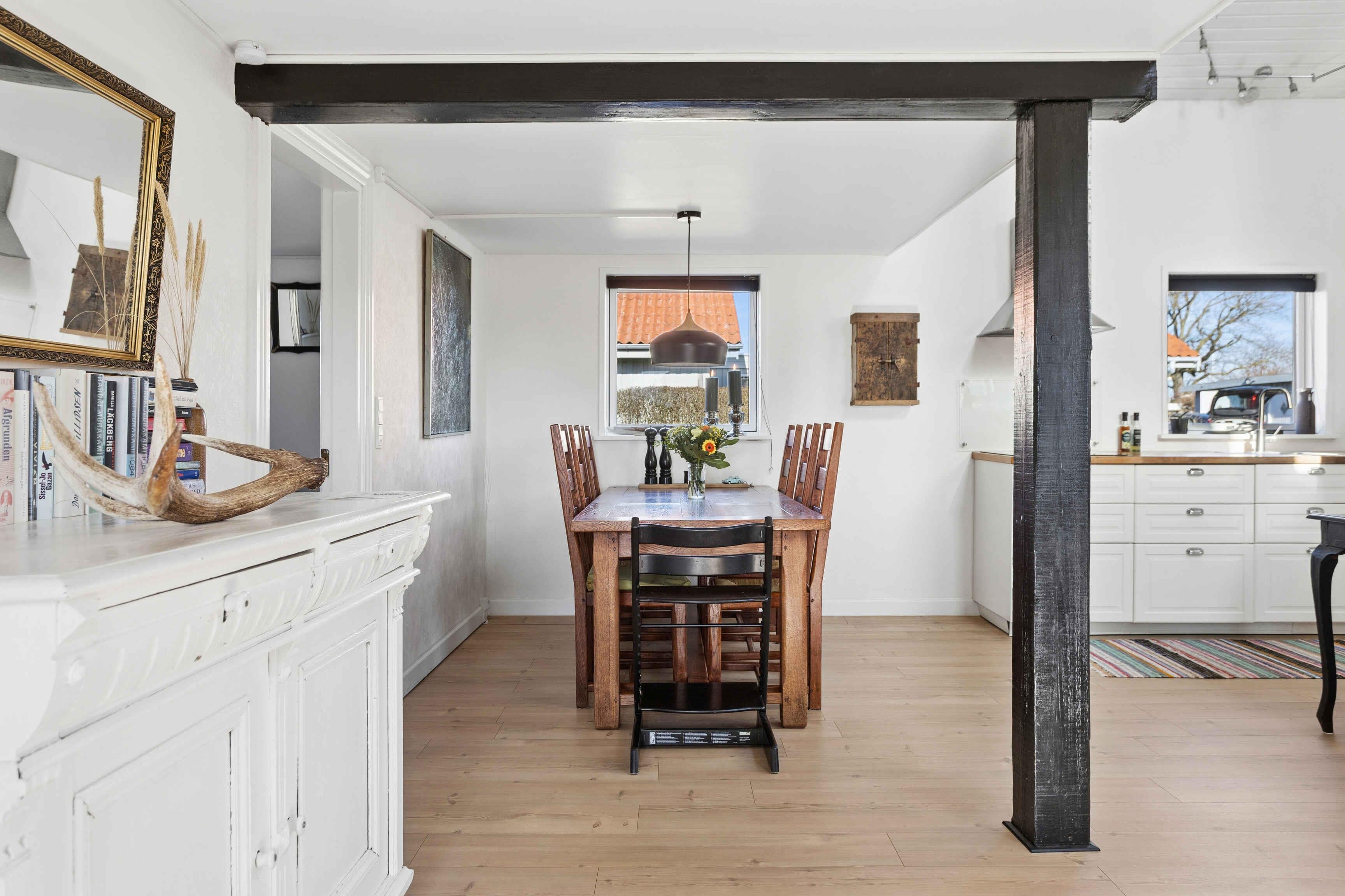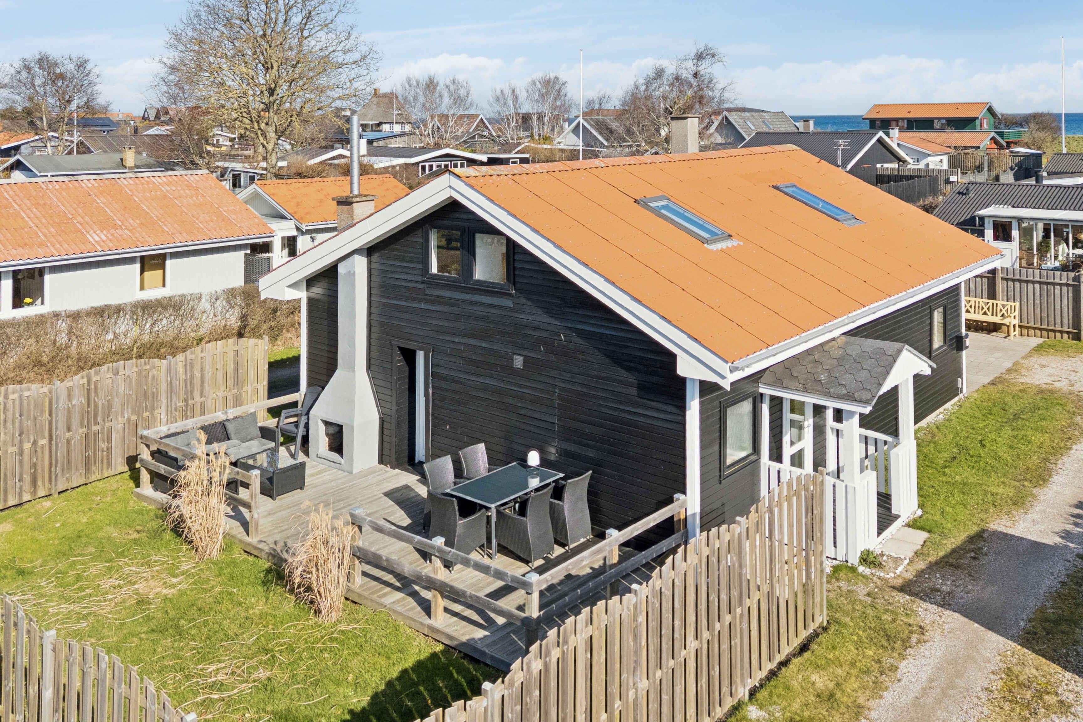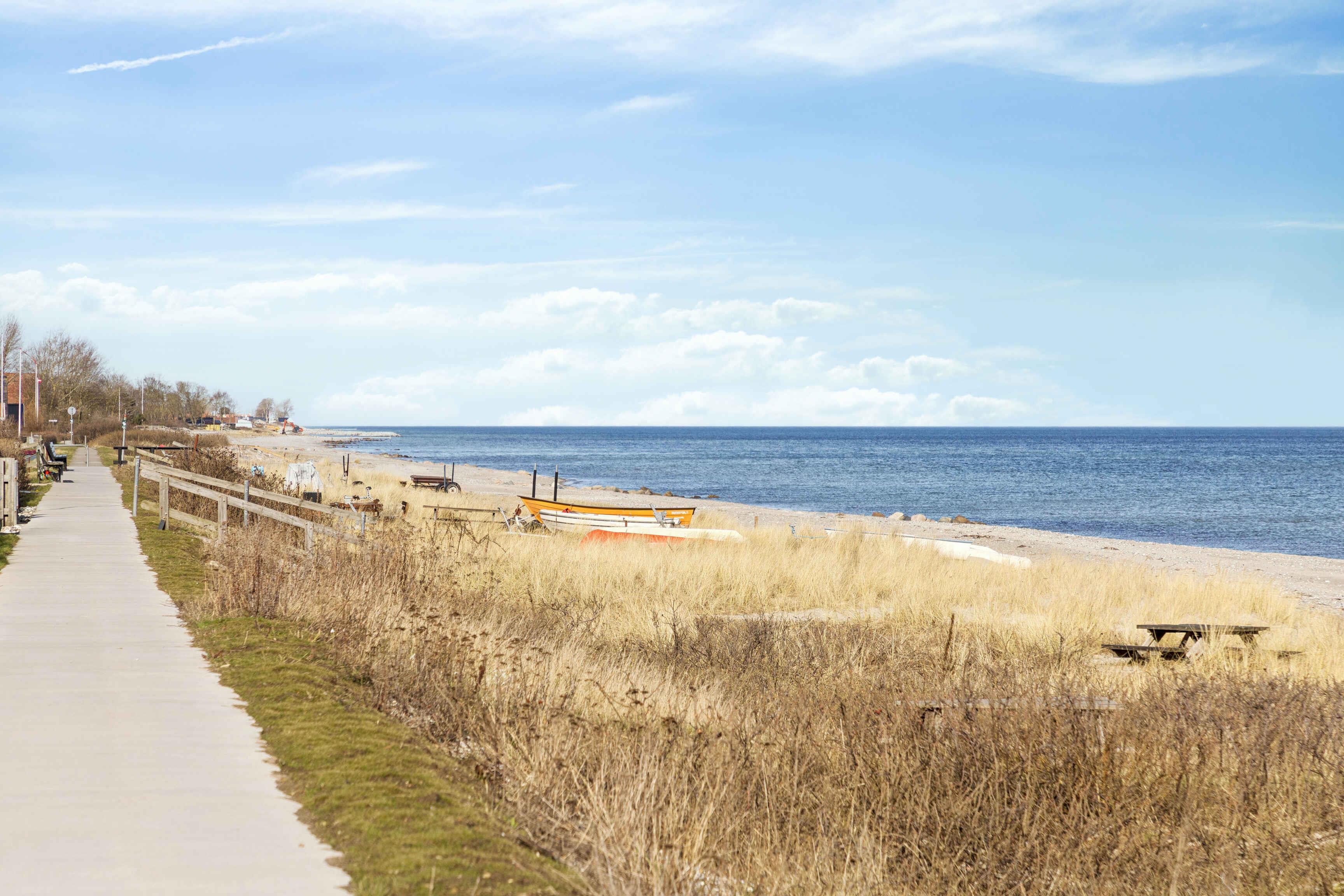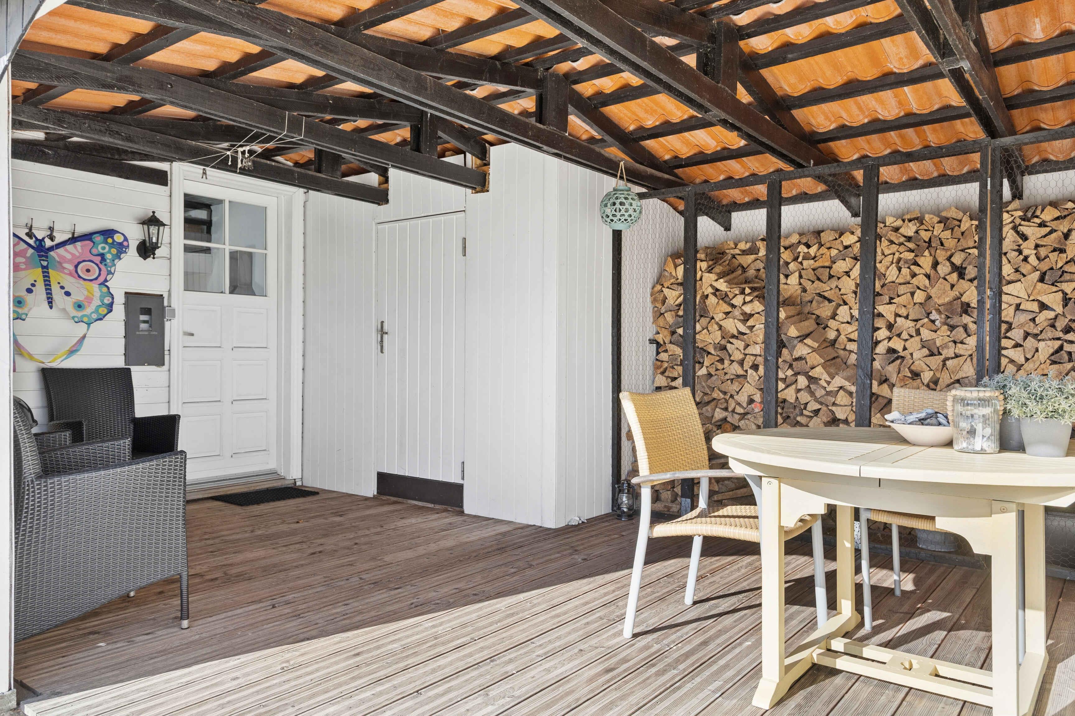 Dieses Ferienhaus mit 102 m² liegt nah am Wasser und bietet 3 Schlafzimmer und 8 Schlafplätze. Das Haus verfügt über eine große Wohnküche mit offenem Dach bis zum First, Dachfenstern und sichtbaren Balken. Der Holzofen bildet den gemütlichen Mittelpunkt, an dem Familie und Freunde zusammenkommen. Von der Küche aus gibt es direkten Zugang zu einer überdachten Holzterrasse, auf der Mahlzeiten geschützt im Freien genossen werden können. Auf der nach Süden ausgerichteten Terrasse befinden sich ein Außenkamin, Gartenmöbel und Sonnenliegen – ein idealer Ort zum Entspannen vom Morgen bis zum Abend. Das Badezimmer verfügt über Dusche, Whirlpoolbadewanne und Doppelwaschbecken und bietet damit ausreichend Platz für mehrere Gäste. Das Haus ist für den Urlaub eingerichtet und bietet gute Aufenthaltsräume, in denen man nach einem Tag am Strand oder in der Natur zusammenkommen kann. Der Strand liegt nur 130 Meter von der Küchentür entfernt. Vom ersten Stock aus hat man Blick auf das Wasser, und die Umgebung lädt zu täglichen Spaziergängen entlang der Küste ein. Im Garten gibt es eine Feuerstelle und einen Grill, wo man den Abend unter freiem Himmel ausklingen lassen kann. Hasmark Strand ist ein beliebtes Feriengebiet mit breiten Sandstränden und flachem Wasser, das sich ideal für Kinder und Erwachsene eignet. Hier gibt es gute Möglichkeiten zum Baden, für Spaziergänge und zum Entspannen in der Nähe der Natur. Vom Haus aus kann man bis nach Enebærodde wandern, ein schönes Naturgebiet mit langen Wegen und Ausblick über das Kattegat. Die Gegend ist bekannt für ihre Ruhe, Natur und gute Möglichkeiten für Rad- und Wandertouren. Nur etwa 1 km vom Haus entfernt liegt Hasmark Strand Camping mit Restaurant, Spielplatz, Lebensmittelgeschäft, Outdoor-Wasserpark und Hallenbad. Hier gibt es Aktivitäten für Kinder und Erwachsene sowie gute Möglichkeiten für einen aktiven Urlaubstag in der Nähe des Ferienhauses.