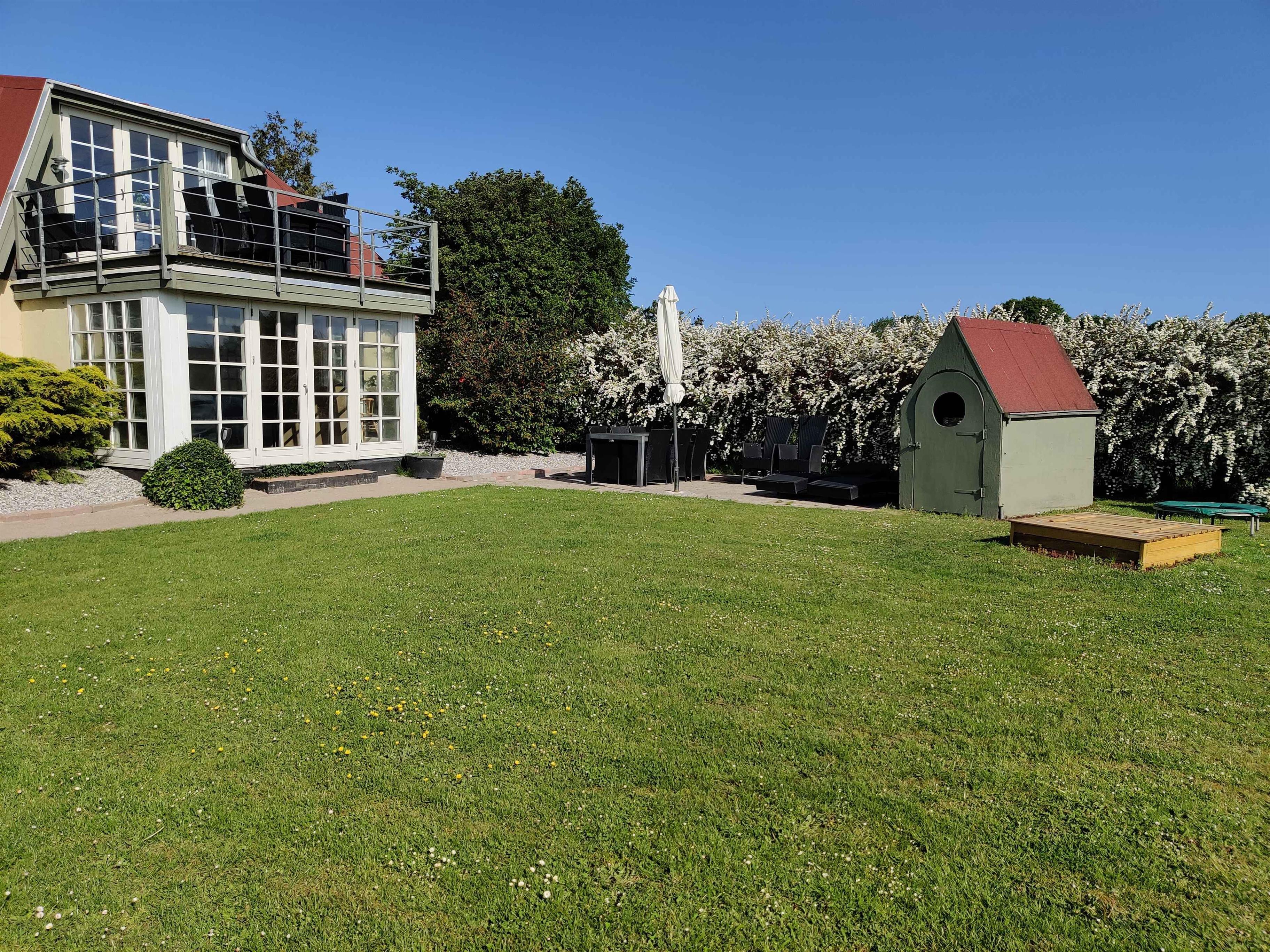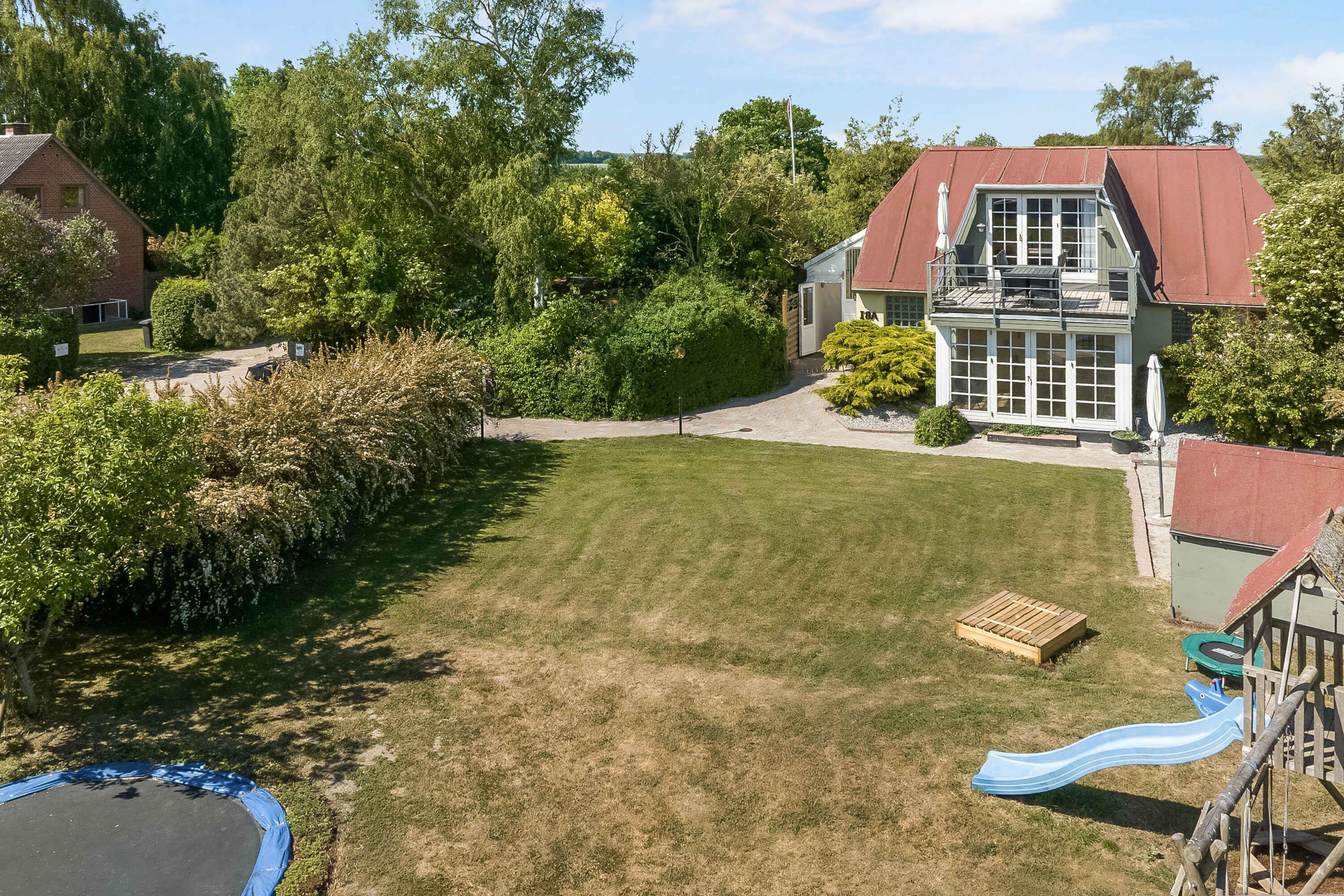 Kinderfreundliches Ferienhaus in Otterup mit großem beheiztem Pool, Sauna, Whirlpool und vielseitigen Spielmöglichkeiten im Garten.