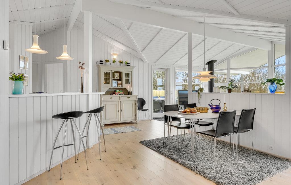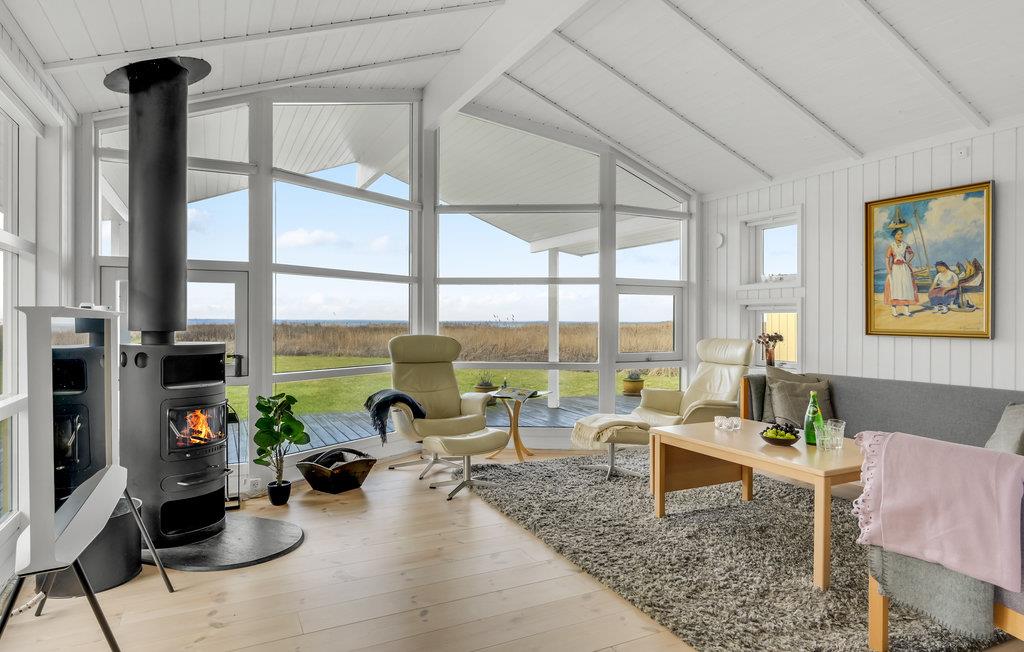 Das Haus empfängt Sie in wunderschöner Lage. In den hellen Räumen können Sie die Seele baumeln lassen und in stilvollem Rahmen die gemeinsame Zeit genießen. Durch die große Fensterfront gelangt viel Tageslicht ins Innere des Hauses, genießen Sie den schönen Blick auf den Fjord und die umliegende Landschaft, wenn Sie gemeinsam auf dem Sofa entspannen. Feuern Sie abends im Kaminofen an, der wohlige Wärme verströmt und für eine gemütliche Atmosphäre sorgt.