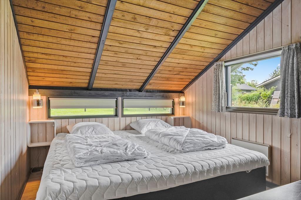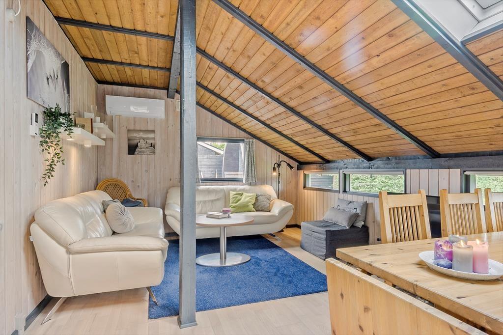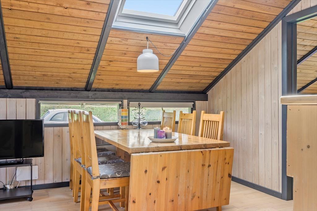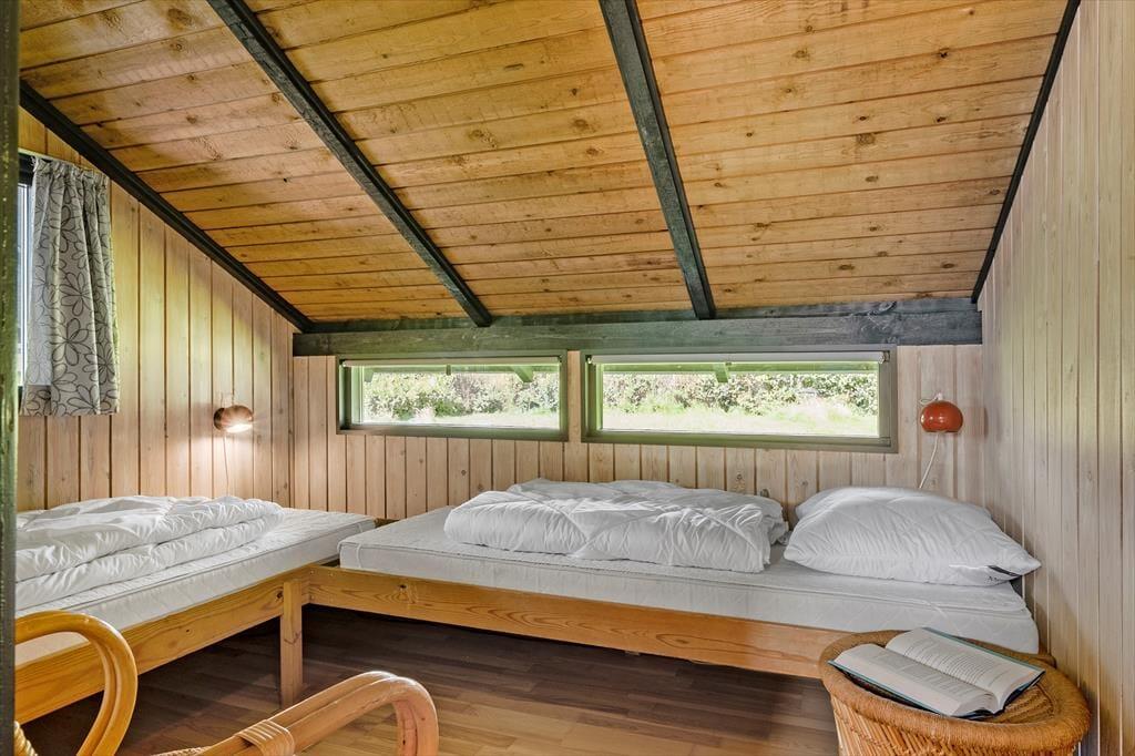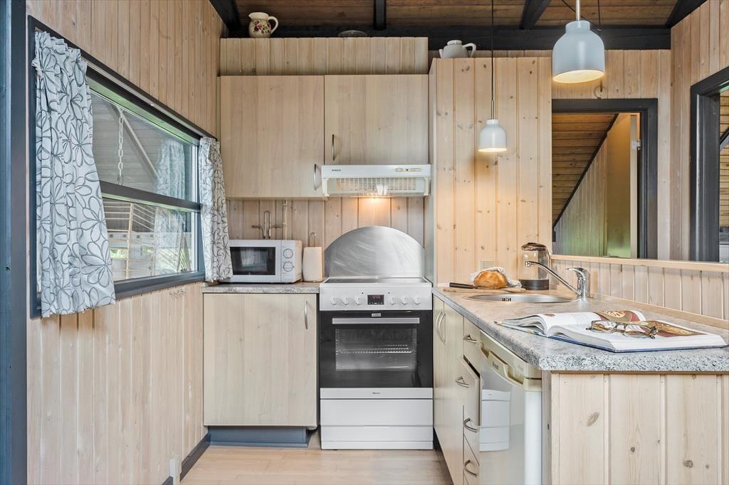 Dieses charmante Ferienhaus im klassischen skandinavischen Stil heißt dich herzlich willkommen. Bis zu sechs Personen können hier einen erholsamen Urlaub in gemütlicher Atmosphäre genießen. Die Küche liegt im Zentrum des Hauses und ist mit allem ausgestattet, was du für einen gelungenen Aufenthalt brauchst. Sie ist offen zur Wohnstube hin, wo ein Esstisch und eine einladende Sofaecke auf dich warten. Von hier aus gelangst du in einen schönen Wintergarten, in dem du gesellige Stunden mit Brettspielen oder guten Gesprächen verbringen kannst. Die Schlafplätze verteilen sich auf drei Schlafzimmer: ein Zimmer mit Doppelbett sowie zwei Zimmer mit jeweils zwei Einzelbetten. Außerdem gibt es ein Badezimmer.