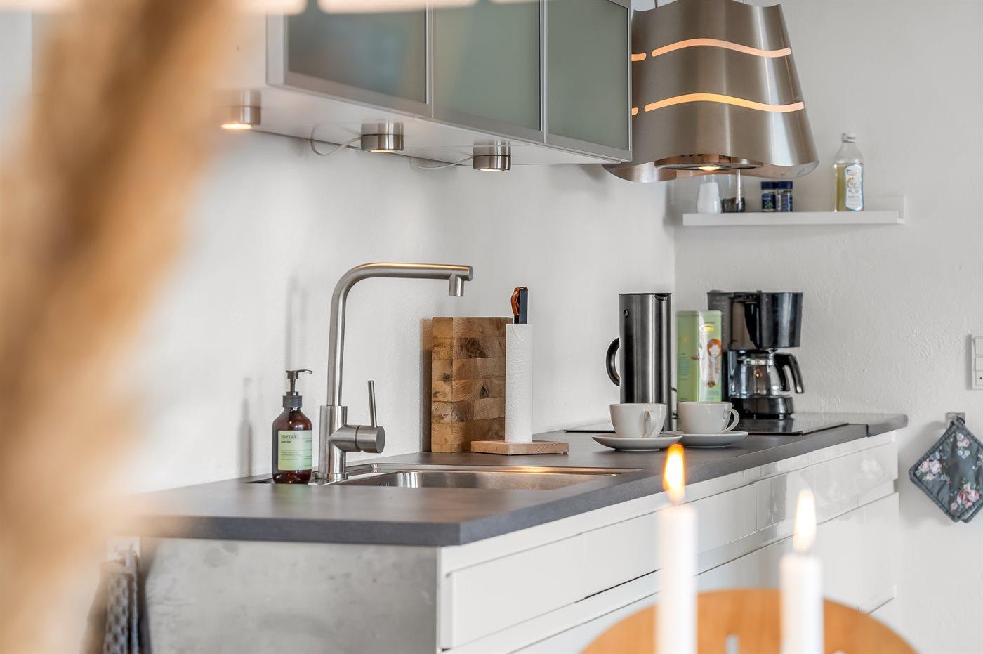 Die Küche ist mit Kühlschrank ausgestattet. Außerdem gibt es 4 Induktions-Kochzonen, Umluftofen sowie Geschirrspüler.