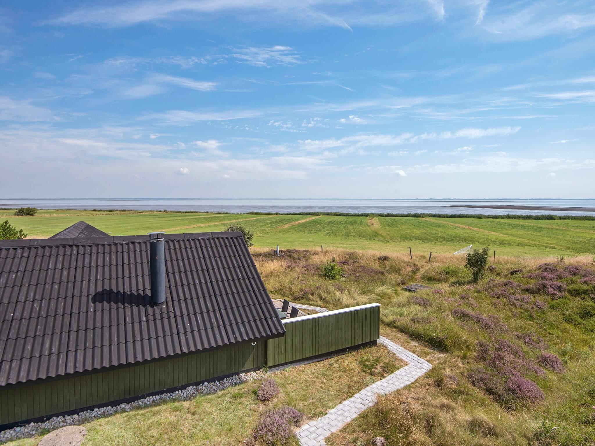 Ferienhaus mit Panoramaausblick zum Wattenmeer, inmitten landschaftlich reizvoller Umgebung bei Kromose gelegen. Im Ferienhaus gibt es eine offen in den Wohnbereich integrierte Küche mit Geschirrspüler, nebenan im Wohnzimmer steht ein Holzofen für kühlere Tage bereit. Von dort hat man auch Zugang zur teilweise überdachten Terrasse, von wo aus Sie die Zugvögel beobachten können. Im Haus zudem ein Badezimmer mit Dusche und drei Schlafzimmer. Auf dem großen Naturgrundstück stehen zwei Fußballtore bereit. Zudem ist das Haus kinderfreundlich mit Kinderbett und Hochstuhl ausgestattet.