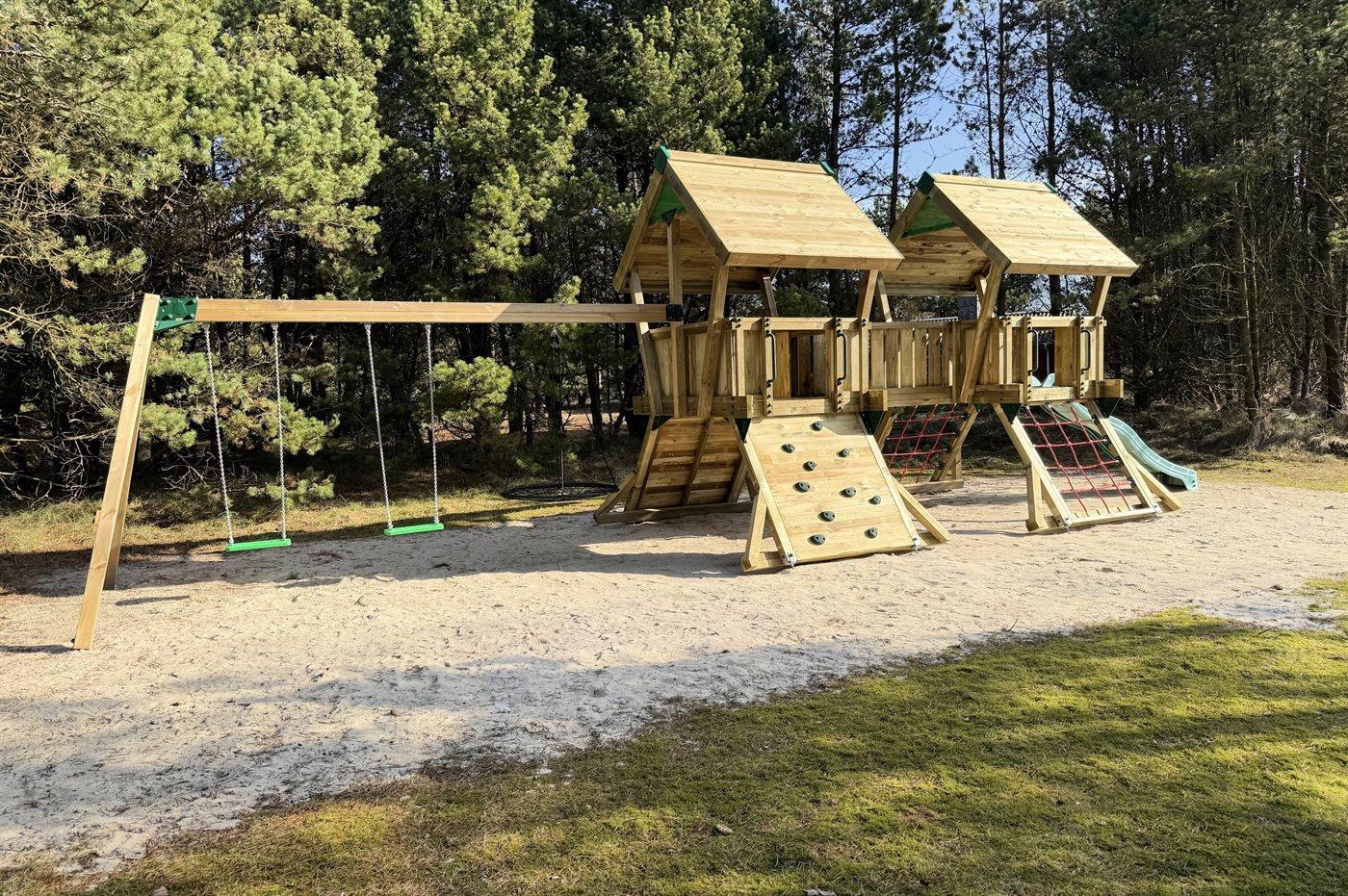 Für die kleinen Feriengäste gibt es Schaukel und Sandkasten. Beachvolley-Platz und Shelter sowie Außendusche auf dem Grundstück. Es ist eine Ladestation für Elektroautos installiert.