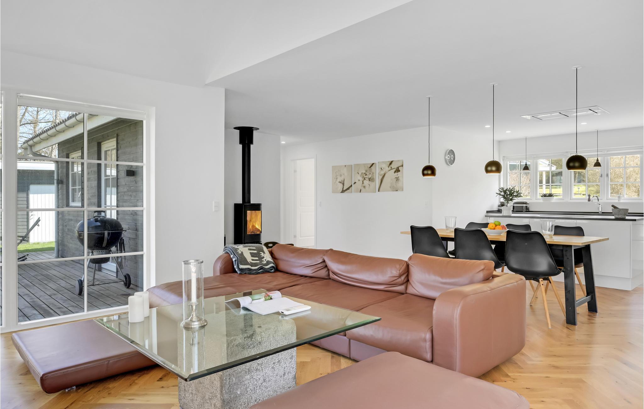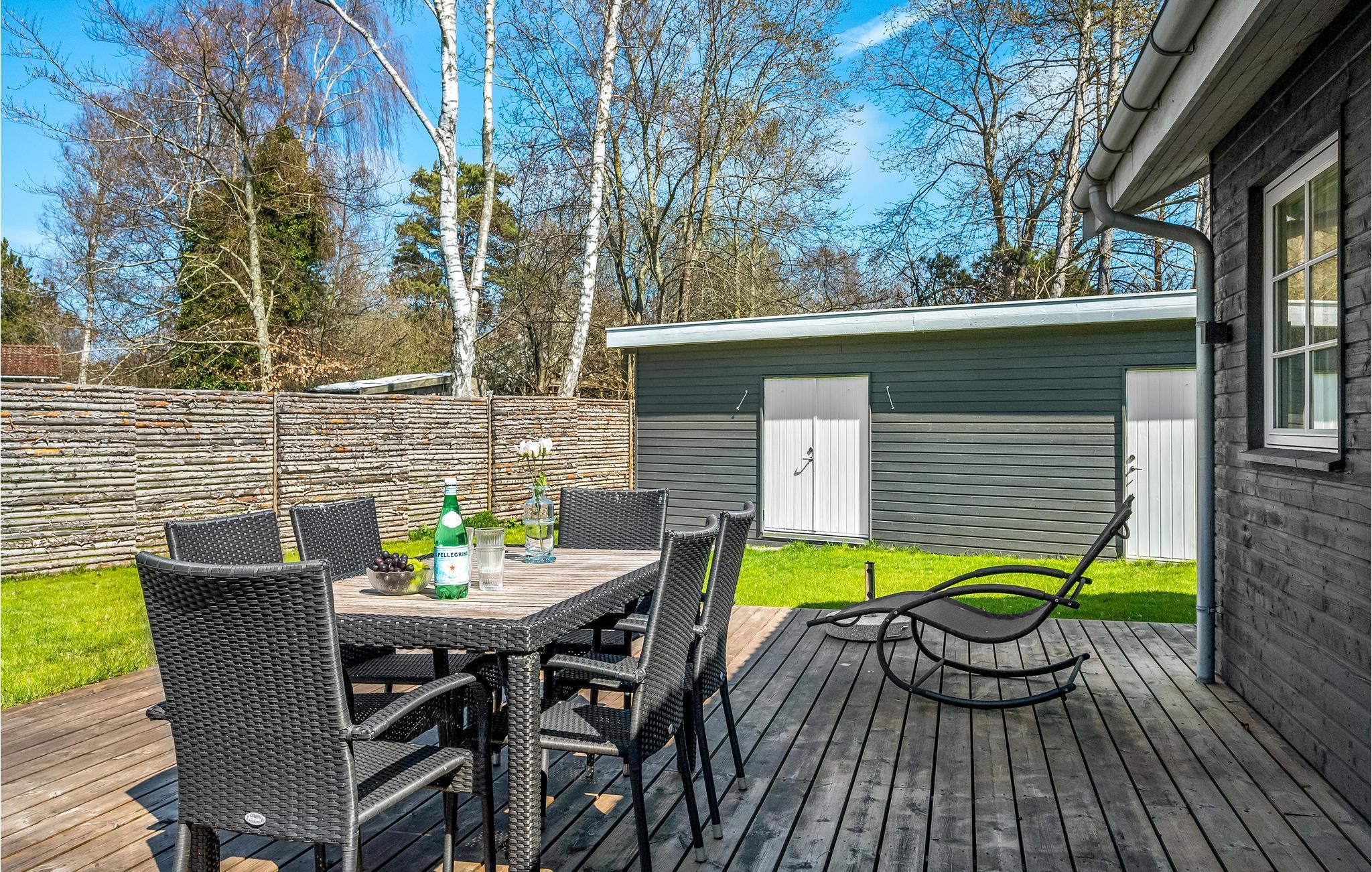 Schlichtes dänisches Ferienhaus nahe Rågeleje Strand mit großem Garten, Terrasse und moderner Ausstattung für erholsame Tage.
