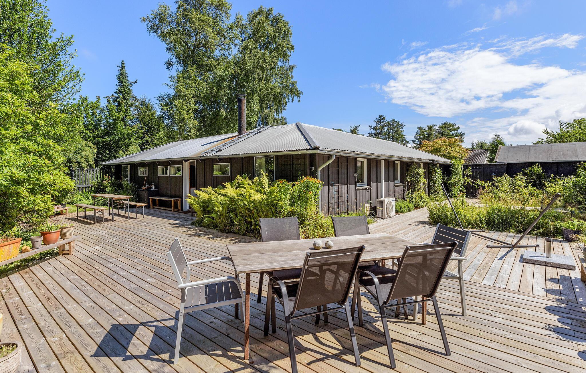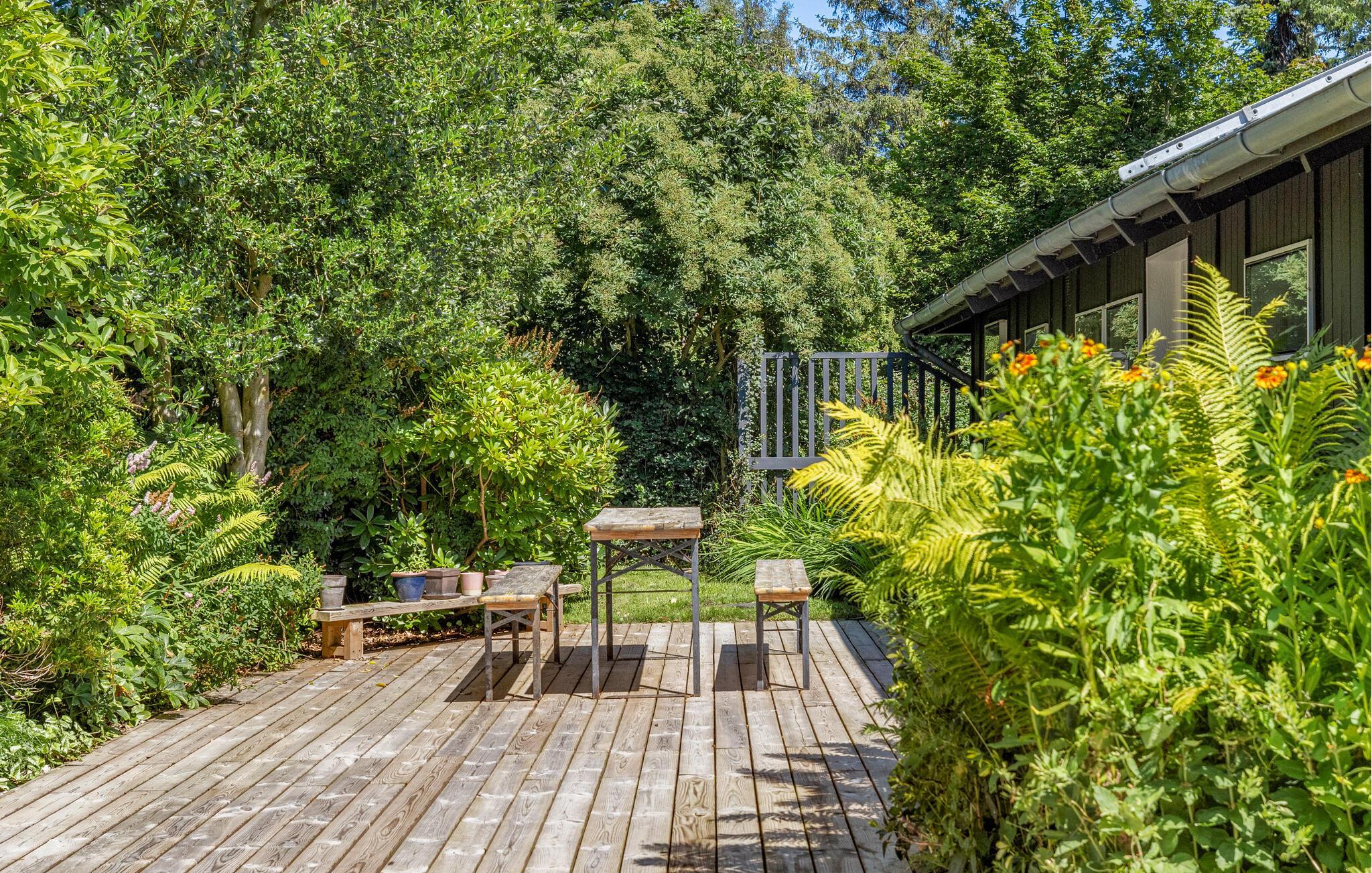 Gemütliches Ferienhaus nahe Meer in Rågeleje mit Kamin, großer Terrasse und Spielplatz für Kinder.
