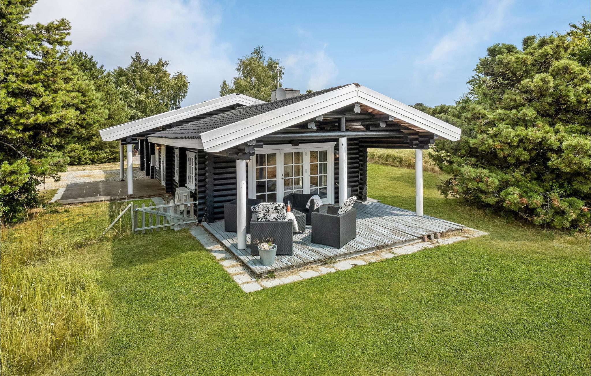 Gemütliches Blockhaus mit Whirlpool, Kamin und Meerblick auf der idyllischen Halbinsel Reersø in Dänemark.