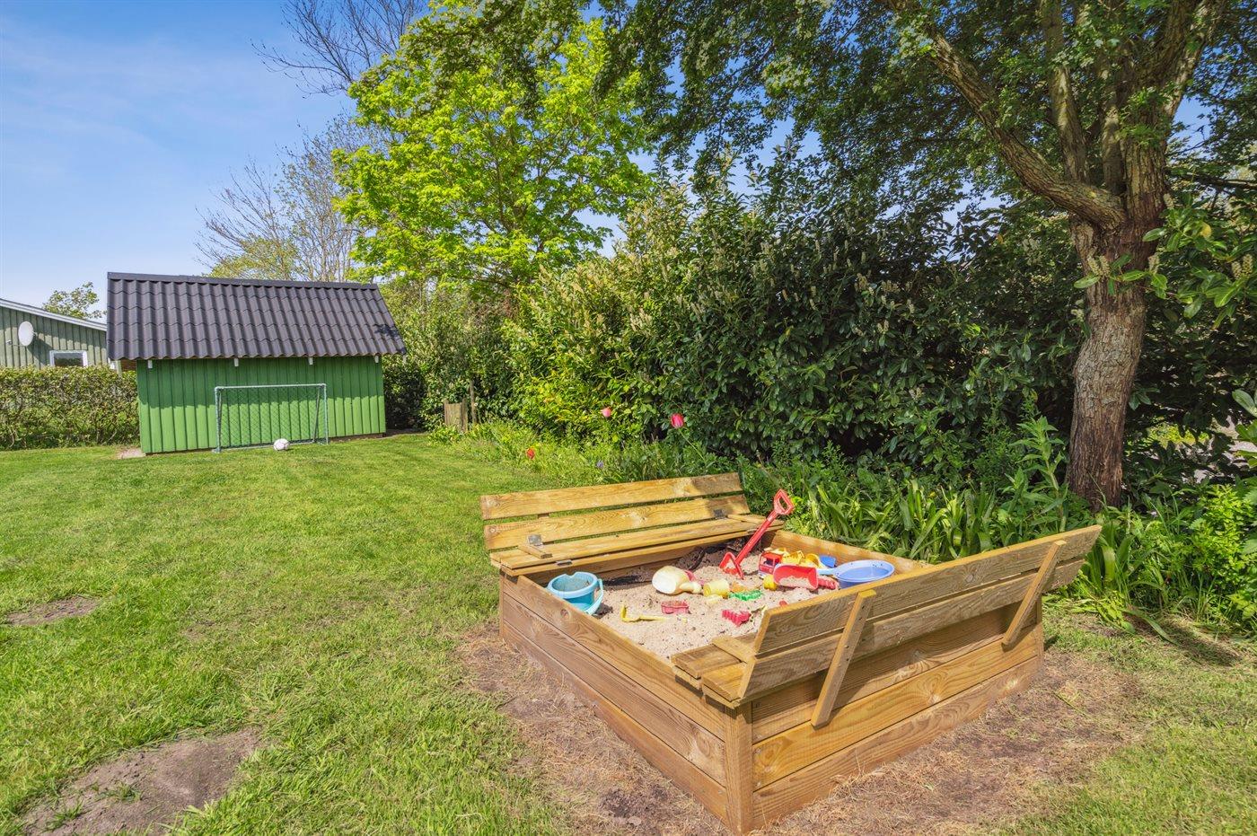 Die Ferienunterkunft liegt auf einem 800 m² großen Naturgrundstück. Die Entfernung zum Meer beträgt 500 m. Die nächste Einkaufsmöglichkeit liegt 3000 m entfernt. In einem Abstand von 14000 m gibt es einen Golfplatz. Es stehen sowohl offene als auch 15 m2 überdachte Terrassen zur Verfügung. Geräteraum. Sandkasten. Fußballtor. Es steht ein Grill zur Verfügung. Es ist ein Ladestecker für Elektroautos installiert. Ladestecker Typ 2. Mit einer Ladeleistung von 11 kW. Parkplatz auf dem Grundstück.