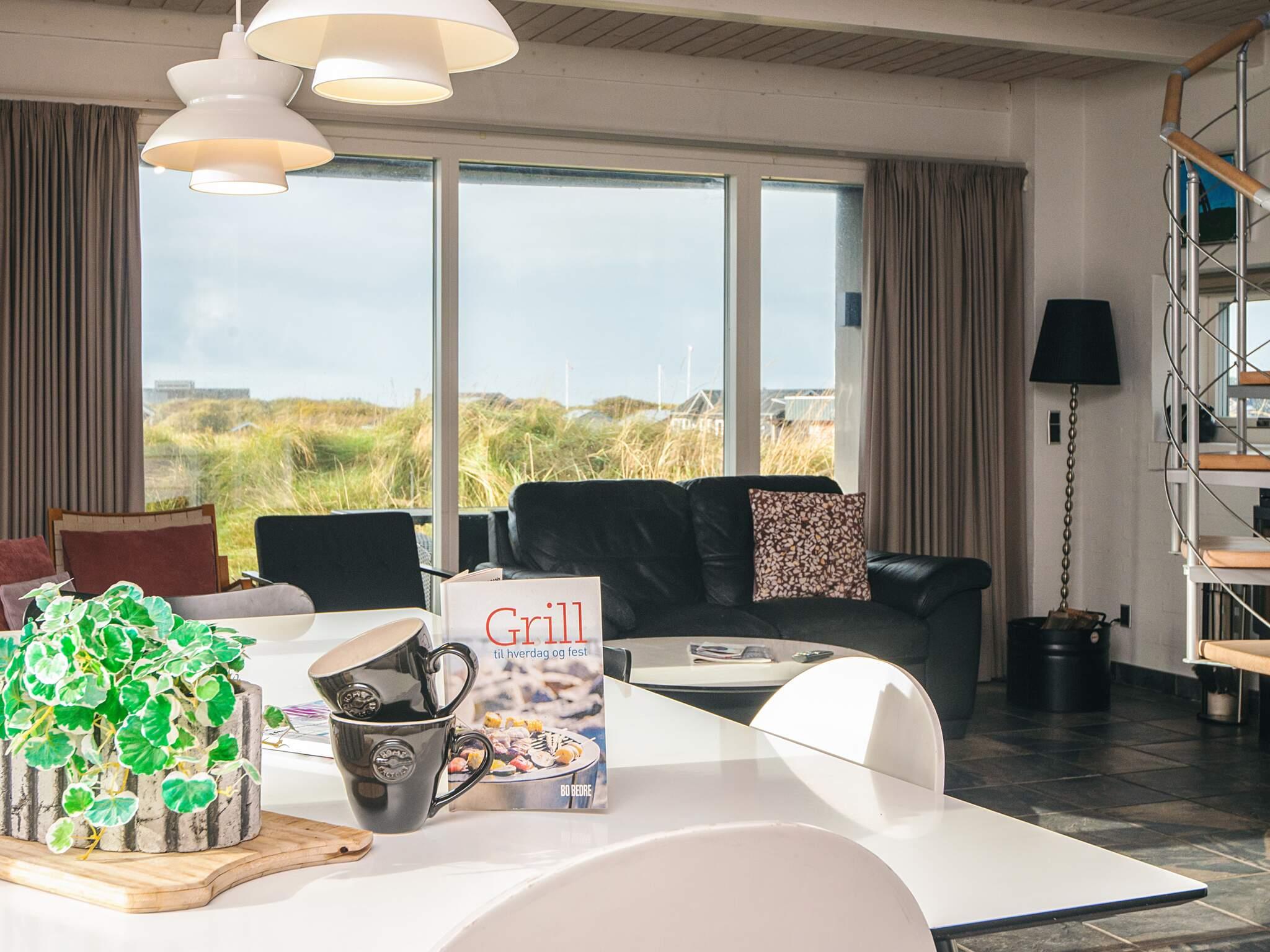Panoramaaussicht und architekgezeichneter Ferienhaus mit Glas und Licht in Rindby auf Fanö. Ein interessantes Ferienhaus mit allem an Ausstattung und vielen Details. Schöne Schlafabteilung mit 3 Schlafzimmern und 2 Badezimmern. 2 Schlafzimmer haben Meerblick und in das 3. schaut die Morgensonne herein. Im 1. Stock befindet sich das Hauptschlafzimmer mit eigenem Bad. Guter Eingangsbereich mit Platz für Jacken und Stiefel und eine grosse, funktion elle Küche in Verbindung mit dem Wohnzimmer, wo grosse Schiebetüren am Tage die Sonne hereinlassen und am Abend der Kaminofen Gemütlichkeit verbreitet. Im 1. Stock ist eine extra Stube mit Balkon und Ausblick auf die Umgebung von Rindby bis hinunter zum Strand - eine tolle Panoramaaussicht über die Nordsee bietet die Möglichkeit, Sonnenuntergänge zu bewundern, die selten gesehen werden. Mehrere Terrassen und gemütliche Ecken um das Ferienhaus laden zum Entspannen ein, und der Strandspaziergang beginnt gleich darunter. Eines der schönsten Ferienhäuser auf Fanø mit einer prachtvollen Lage - Ferienhäuser mit Panoramablick an der Nordsee! Endreinigung ist im Preis enthalten!