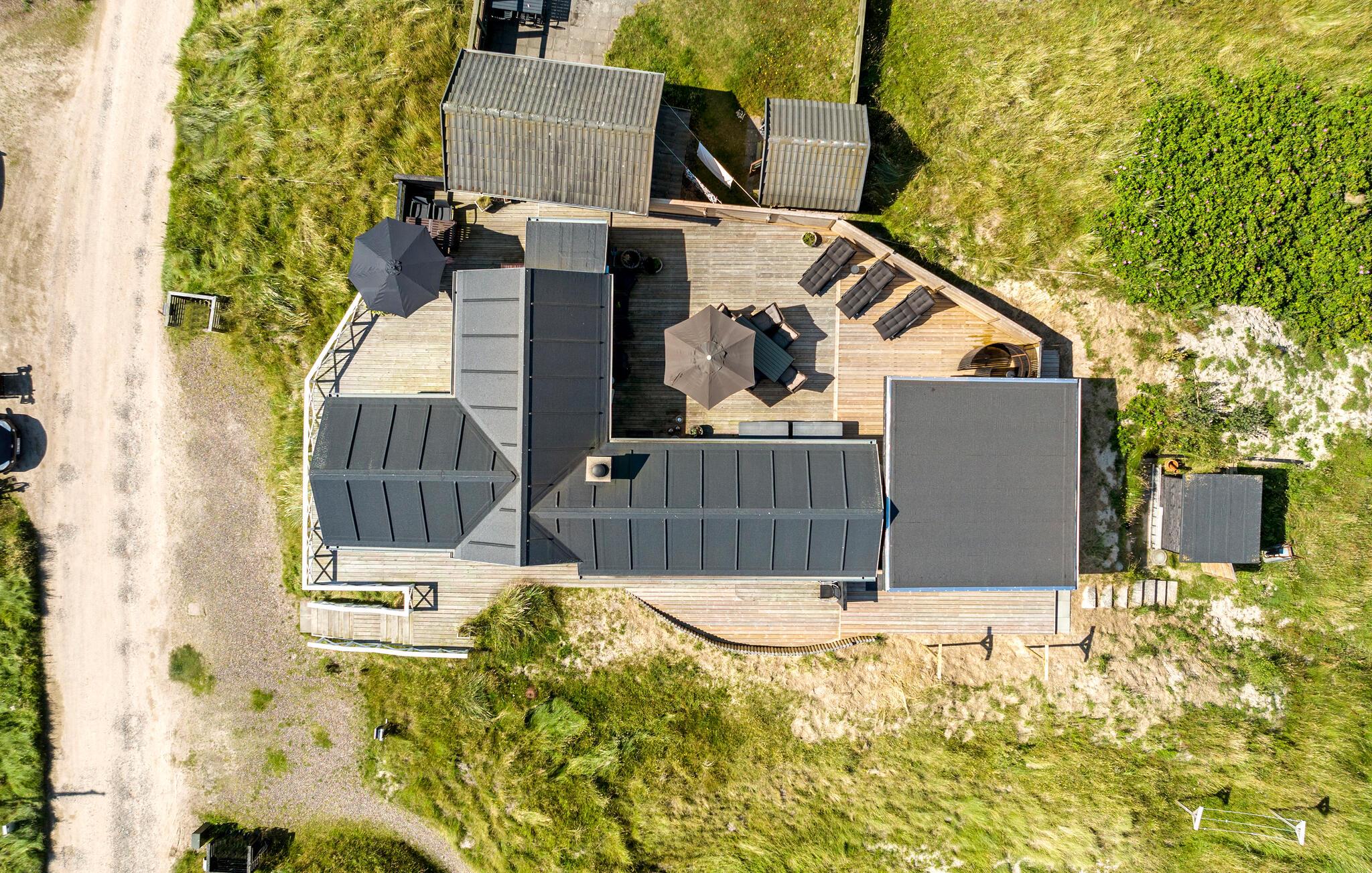 Schönes Holzhaus auf Fanø mit Sauna, Terrasse und Meer in unmittelbarer Nähe für entspannte Urlaubstage.