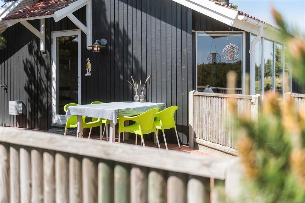 Bei warmem und sonnigem Wetter bietet sich das 2400 m2 große Naturgrundstück perfekt für Outdoor-Aktivitäten an. Um das Ferienhaus herum gibt es mehrere schöne Terrassen zur Auswahl, sodass du gute Chancen hast, sowohl Sonne als auch Schutz in der ungestörten Umgebung zu finden. Wenn du auf der Holzterrasse auf der nordöstlichen Seite des Hauses sitzt, kannst du weit über die Hagebuttenbüsche der Umgebung blicken und den Anblick der treibenden Wolkenformationen hoch am Himmel genießen. Es ist eine großartige Aussicht, wenn du dort sitzt, mit deinem Morgenkaffee und der Ruhe auf der kleinen, abgelegenen Seitenstraße.