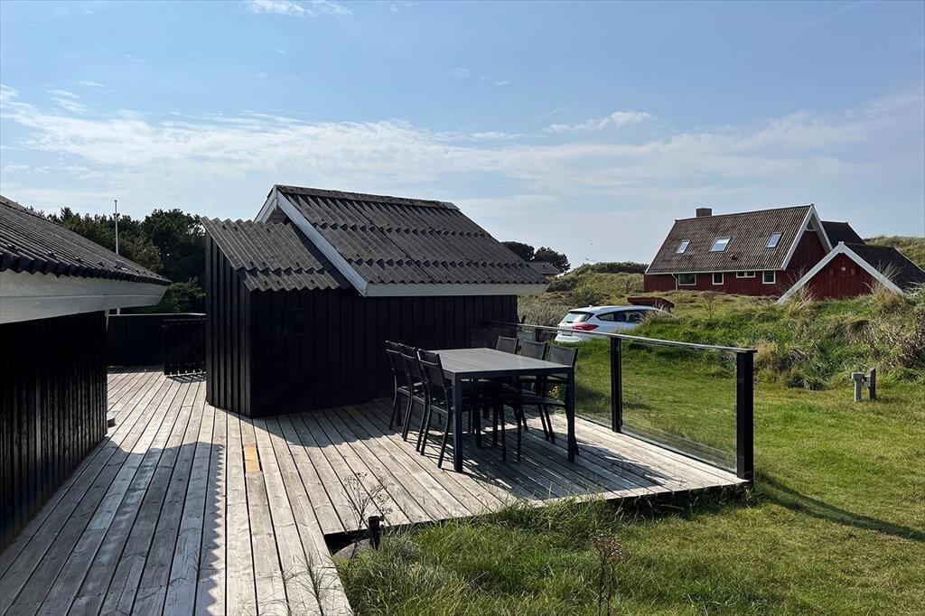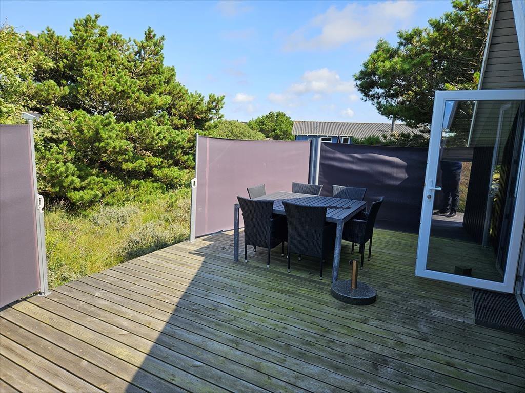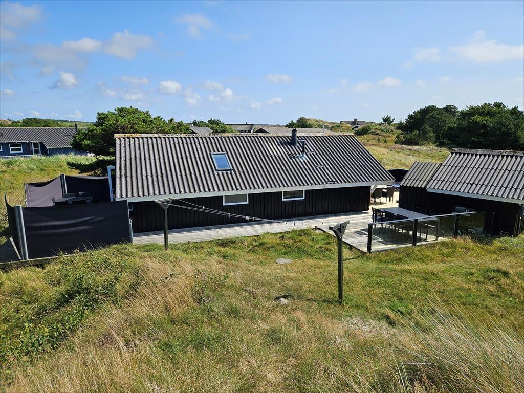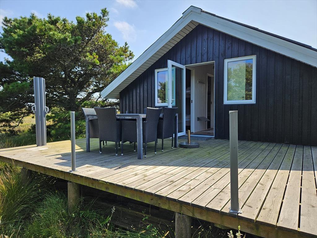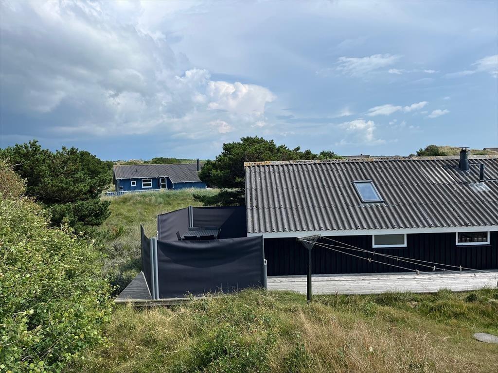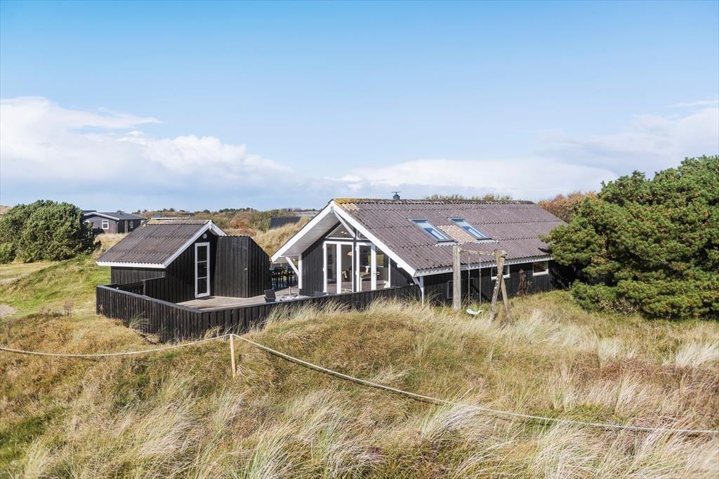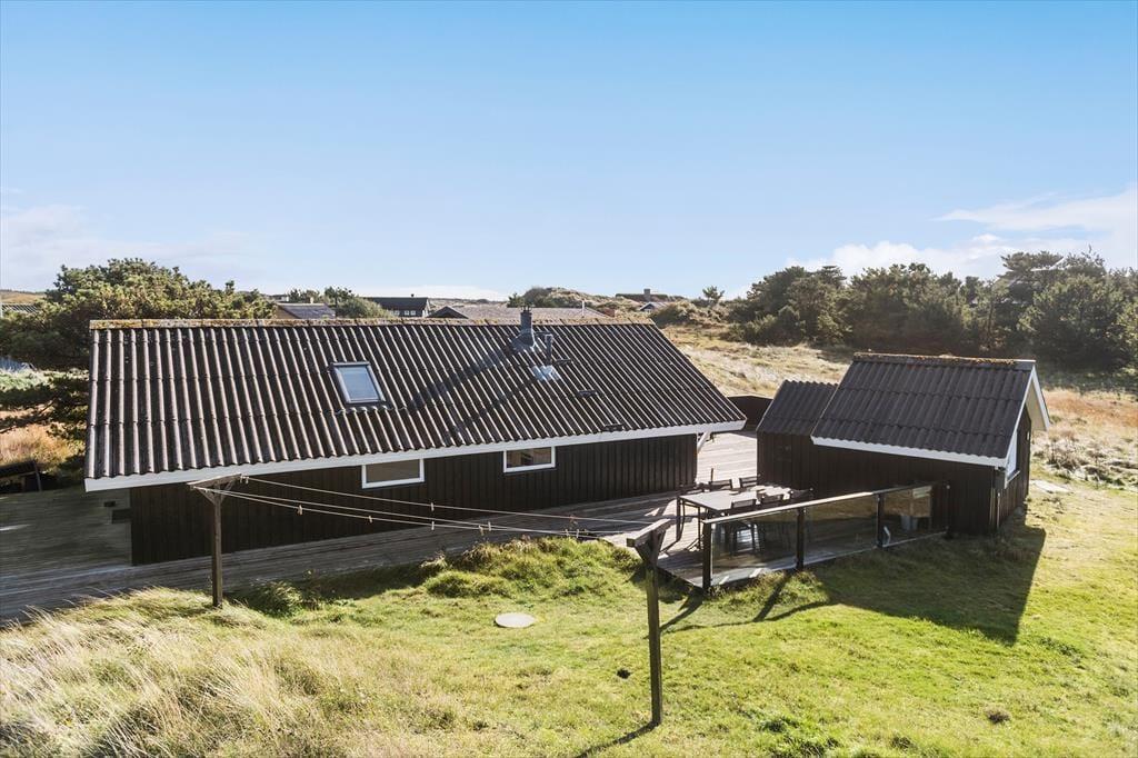Das Ferienhaus liegt am Ende einer Sackgasse zur Bekkasinvej und zudem auf einem großen Naturgrundstück, sodass du Ruhe und Frieden um dich hast, während du das Leben im Freien genießt. Es gibt mehrere Terrassenbereiche zur Auswahl, wenn du dich in der Sonne entspannen oder im Schatten in ein gutes Buch vertiefen möchtest, und wenn der Sommer seinen Höhepunkt erreicht, ist es natürlich auch ideal, alle Ferienmahlzeiten hier draußen im Freien zu genießen. Am Abend kannst du und deine Familie den Duft von Grillfleisch die Luft erfüllen lassen, während die Sonne sich bereit macht unterzugehen – und wenn das Mahl beendet ist und der Sonnenuntergang besonders schön aussieht, kannst du auf die nächste Düne hinaufsteigen oder zum Strand hinuntergehen, der nur wenige hundert Meter entfernt wartet.