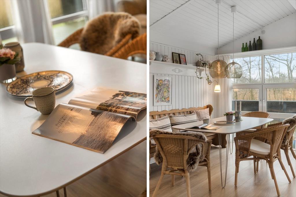 Das helle und gemütliche Ferienhaus bildet den idealen Rahmen für einen erholsamen Urlaub. Sobald du eintrittst, wirst du von einer warmen Atmosphäre empfangen, in der Wohnraum und Küche nahtlos ineinander übergehen und einen natürlichen Treffpunkt schaffen. Hier kannst du es dir auf dem Sofa mit einem guten Buch gemütlich machen, während das Licht durch die Fenster strömt, oder mit deinen Liebsten am Esstisch gesellige Mahlzeiten genießen. Jedes Detail wurde sorgfältig ausgewählt, um ein Gefühl von heimeliger Gemütlichkeit und Entspannung zu schaffen. Die gut ausgestattete Küche macht es zu einem Vergnügen, die Mahlzeiten des Tages zuzubereiten, während sich die entspannte Stimmung im ganzen Haus verbreitet.