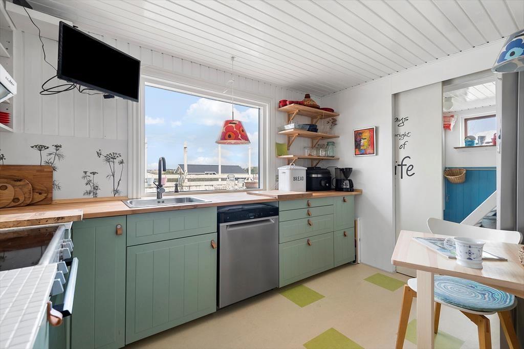Die Slunden 1 liegt ideal im Herzen von Rindby – nur 200 Meter vom Strand und vom nächsten Supermarkt entfernt. So kannst du spontan zum Wasser laufen und den Sand unter deinen Füßen spüren oder schnell frische Brötchen fürs Frühstück holen. Der Rindby Strand zählt zu den beliebtesten Orten auf Fanø – und das aus gutem Grund. Hier kannst du baden, Sandburgen bauen oder einfach einen langen, entspannten Spaziergang am Wasser entlang machen. Wenn du Lust hast, noch mehr zu entdecken, bietet sich ein Ausflug in die nahegelegene Fanø Klitplantage an – nur eine kurze Radtour entfernt – oder ein Besuch in dem charmanten Ort Nordby mit seinen kleinen Geschäften, Galerien und Cafés. Ganz gleich, wie du deinen Urlaub gestalten möchtest – dieses Ferienhaus ist der perfekte Ausgangspunkt, um das Beste von Fanø in deinem ganz eigenen Tempo zu erleben.
