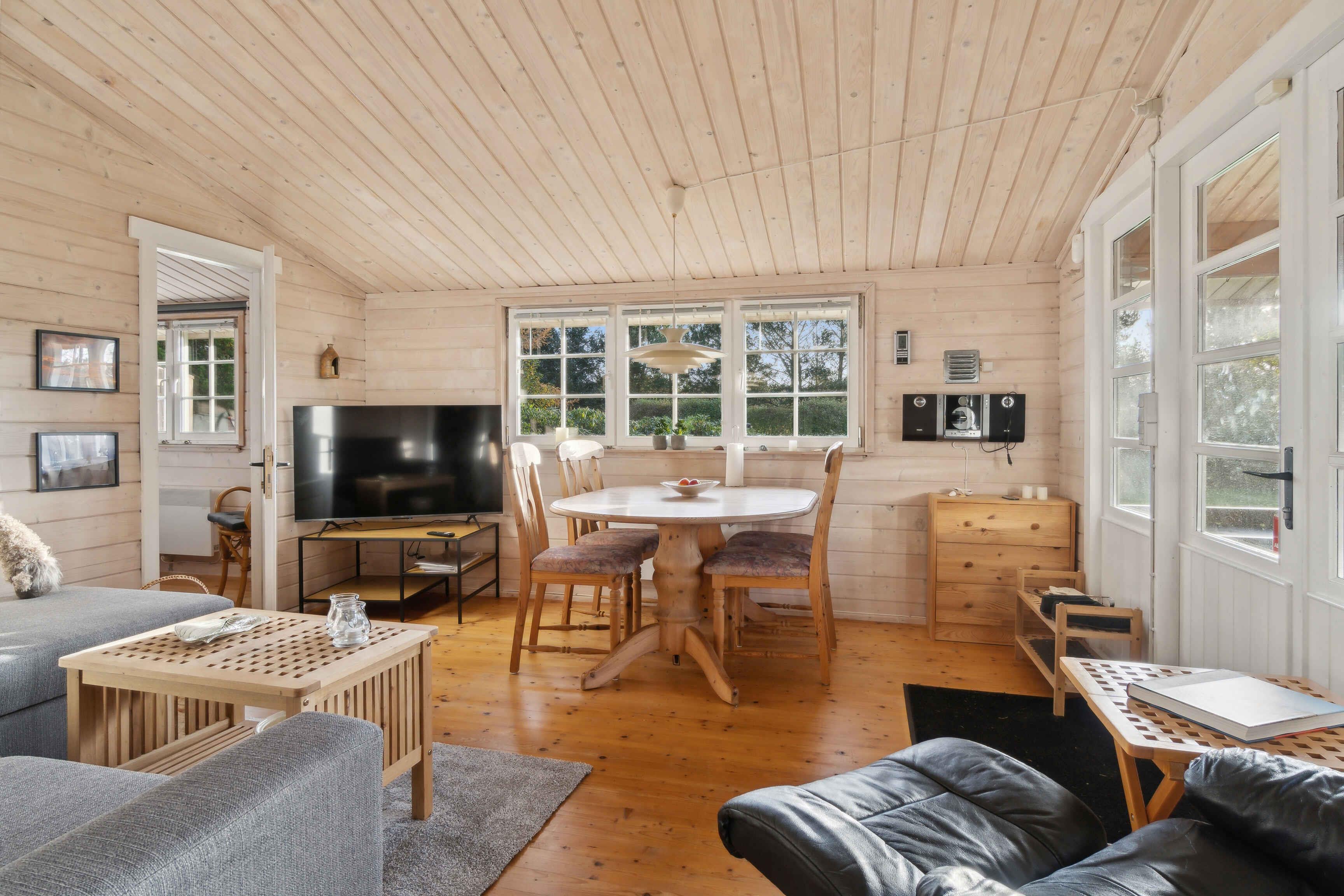 Dieses gemütliche Ferienhaus bietet eine entspannende Basis für die ganze Familie. Das Haus ist ideal für einen Urlaub mit Kindern und Erwachsenen und die ruhige Umgebung sorgt für Entspannung und Gemütlichkeit. Das Ferienhaus verfügt über ein Schlafzimmer und ein Nebengebäude mit Doppelbett, was Schlafplätze für bis zu fünf Personen bietet. Nur 750 Meter entfernt finden Sie einen schönen Badesteg, wo Sie ein erfrischendes Bad im klaren Wasser genießen können. Die Gegend ist bekannt für ihre kinderfreundlichen Strände und die schöne Natur. In der Nähe können Sie den Jesperhus Ferienpark besuchen, der mit seinen Blumenparks, Wasserpark und Aktivitäten bei Familien sehr beliebt ist. Die Nordsee ist nur 45 Minuten entfernt und lädt zu endlosen Spaziergängen entlang der breiten Sandstrände ein.