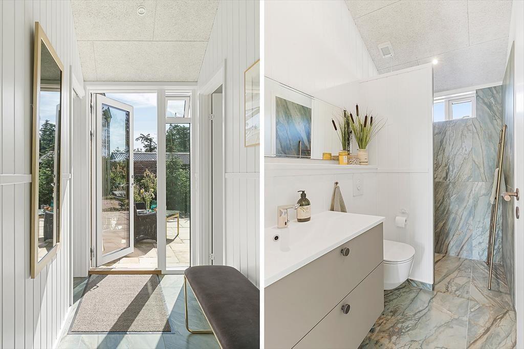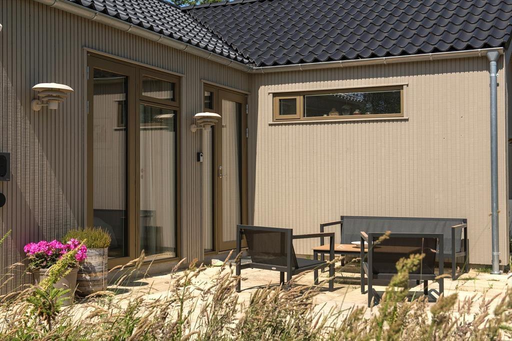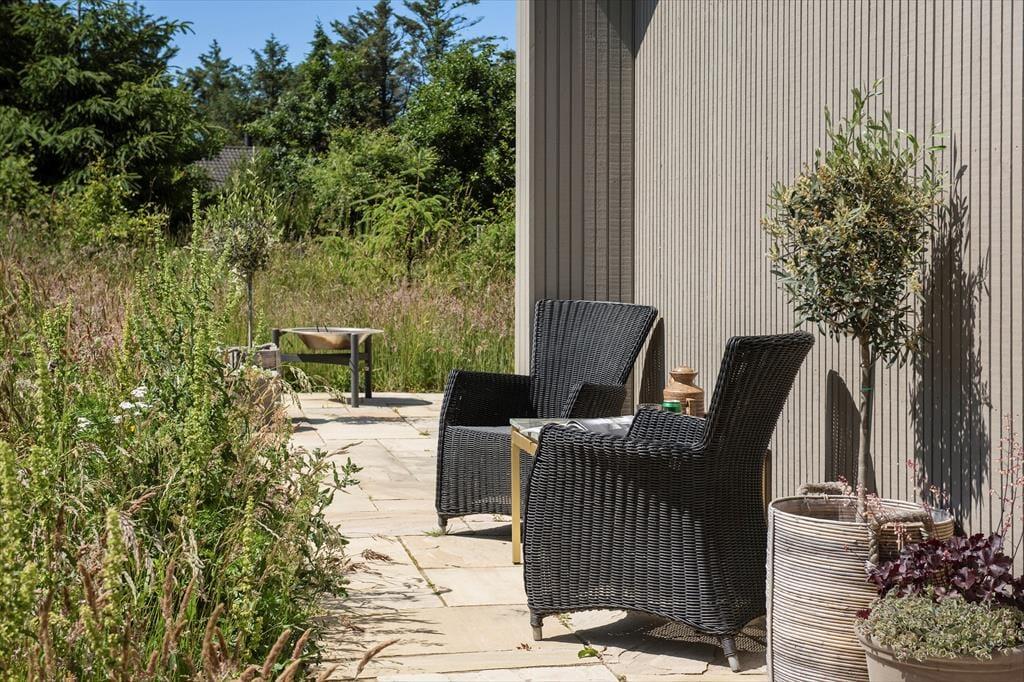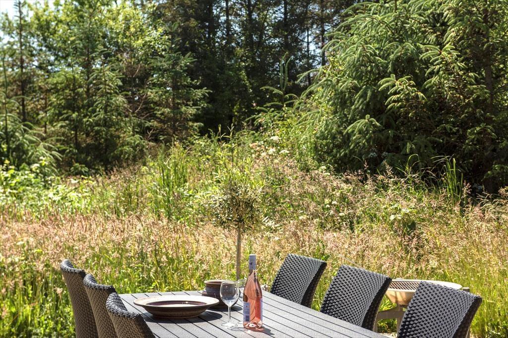 Die sonnige Terrasse lädt zur Entspannung ein. Genießen Sie Ihren Morgenkaffee hier oder grillen Sie ein leckeres Abendessen. Es gibt eine Terrasse rund um das Haus, sodass Sie immer einen Platz in der Sonne oder im Windschutz finden können. Das Haus liegt im Wald in der Nähe des Meeres. Das Grundstück ist mit natürlicher Vegetation bewachsen und von Tannen und Büschen umgeben, die Privatsphäre und Ruhe bieten.